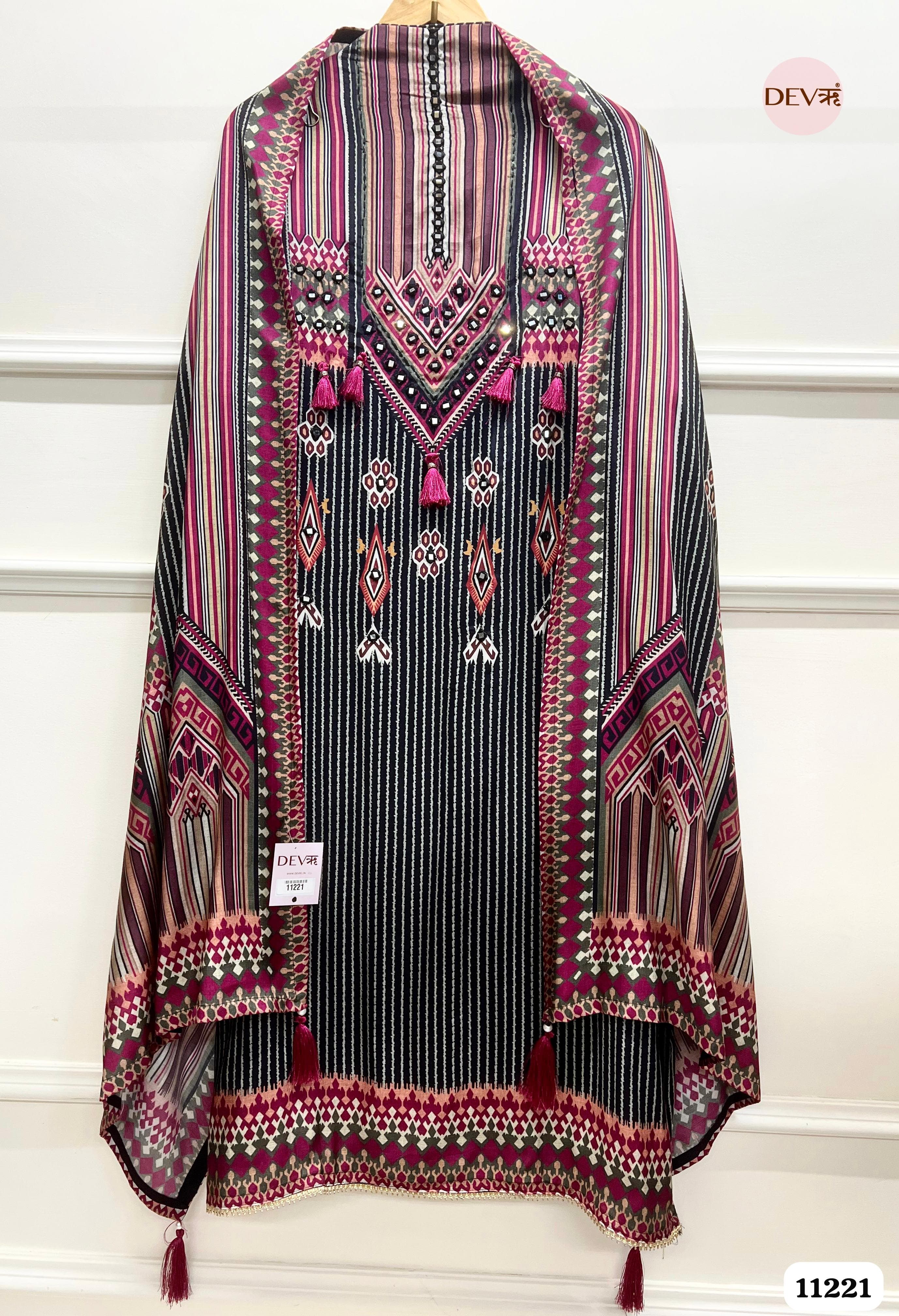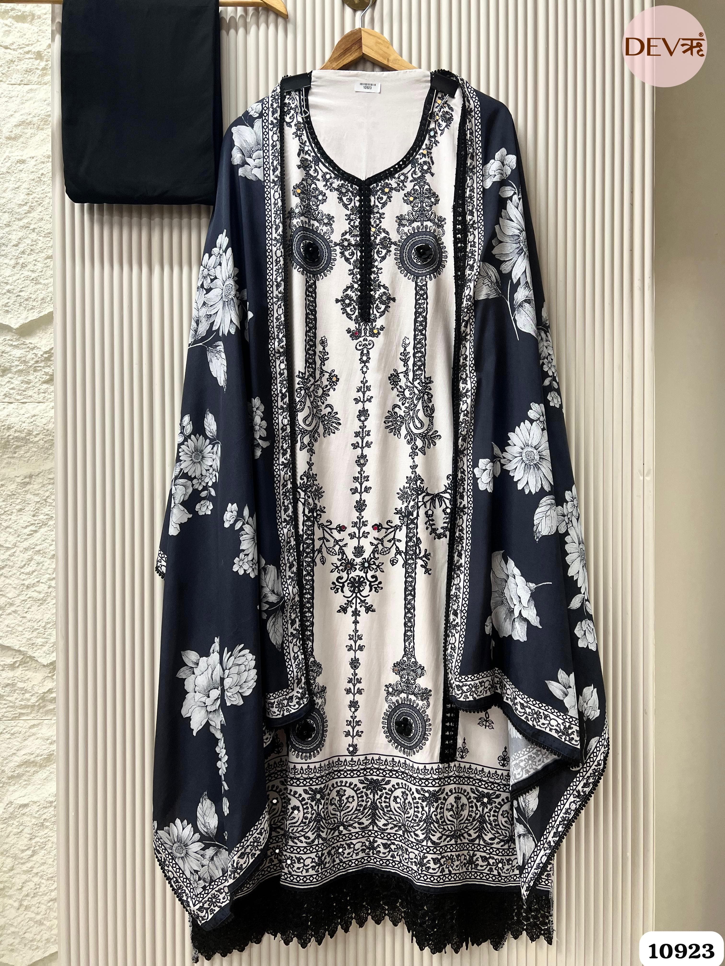 Black/white Muslin Semi Stitched Printed -Set Of 3