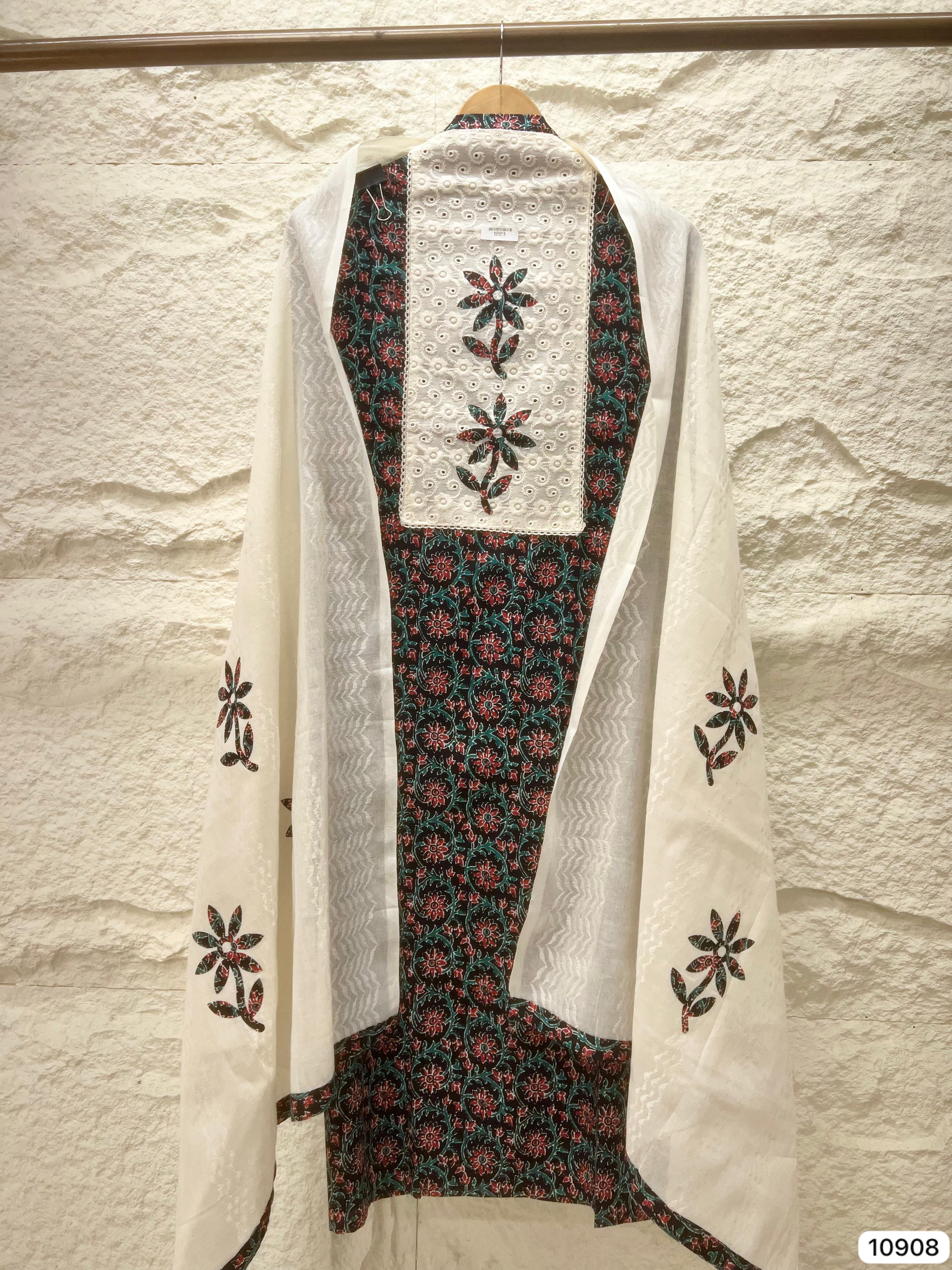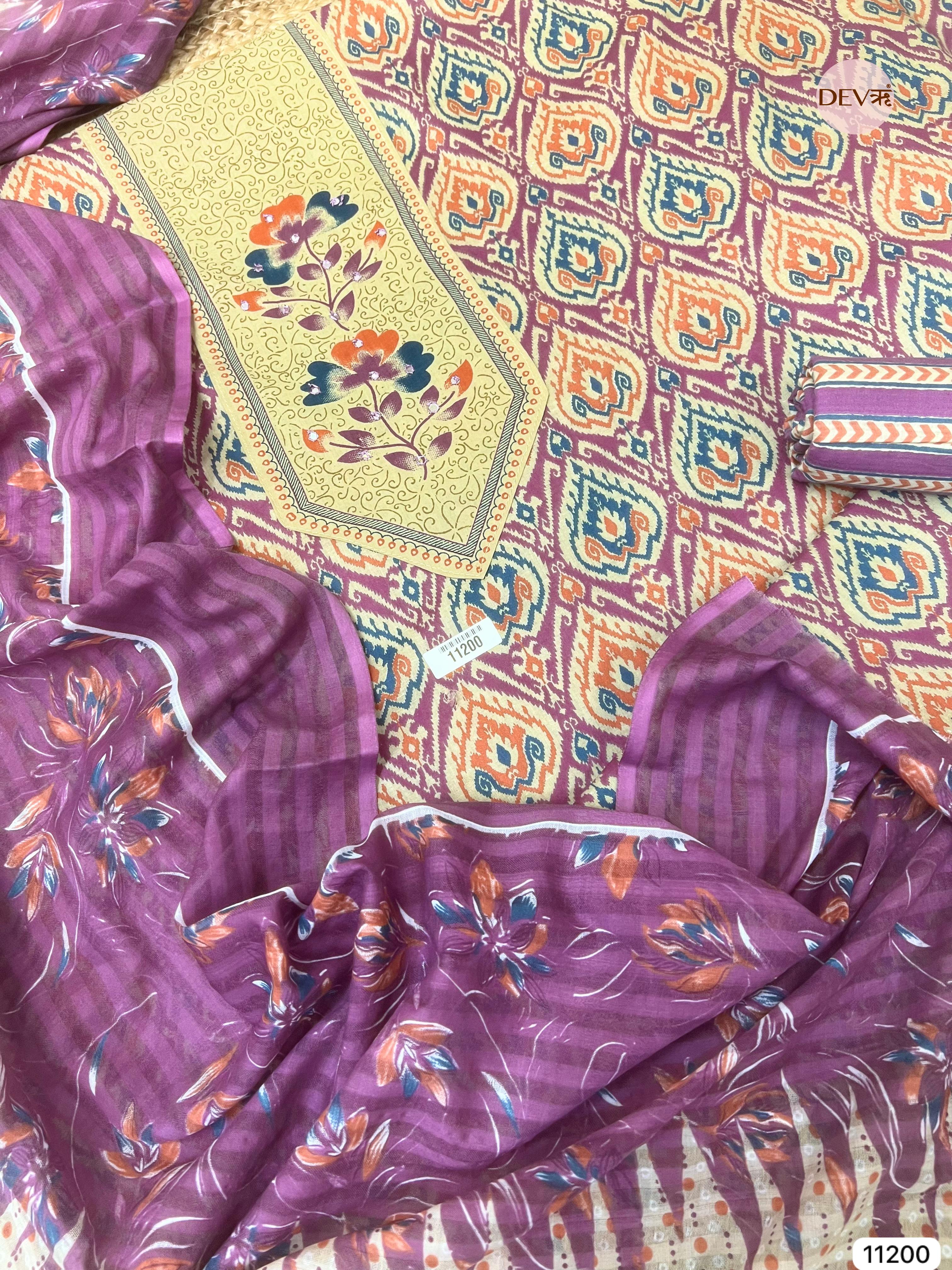 {11200} Purple Pure Cotton unstitched Printed Embroidered -Set Of 3