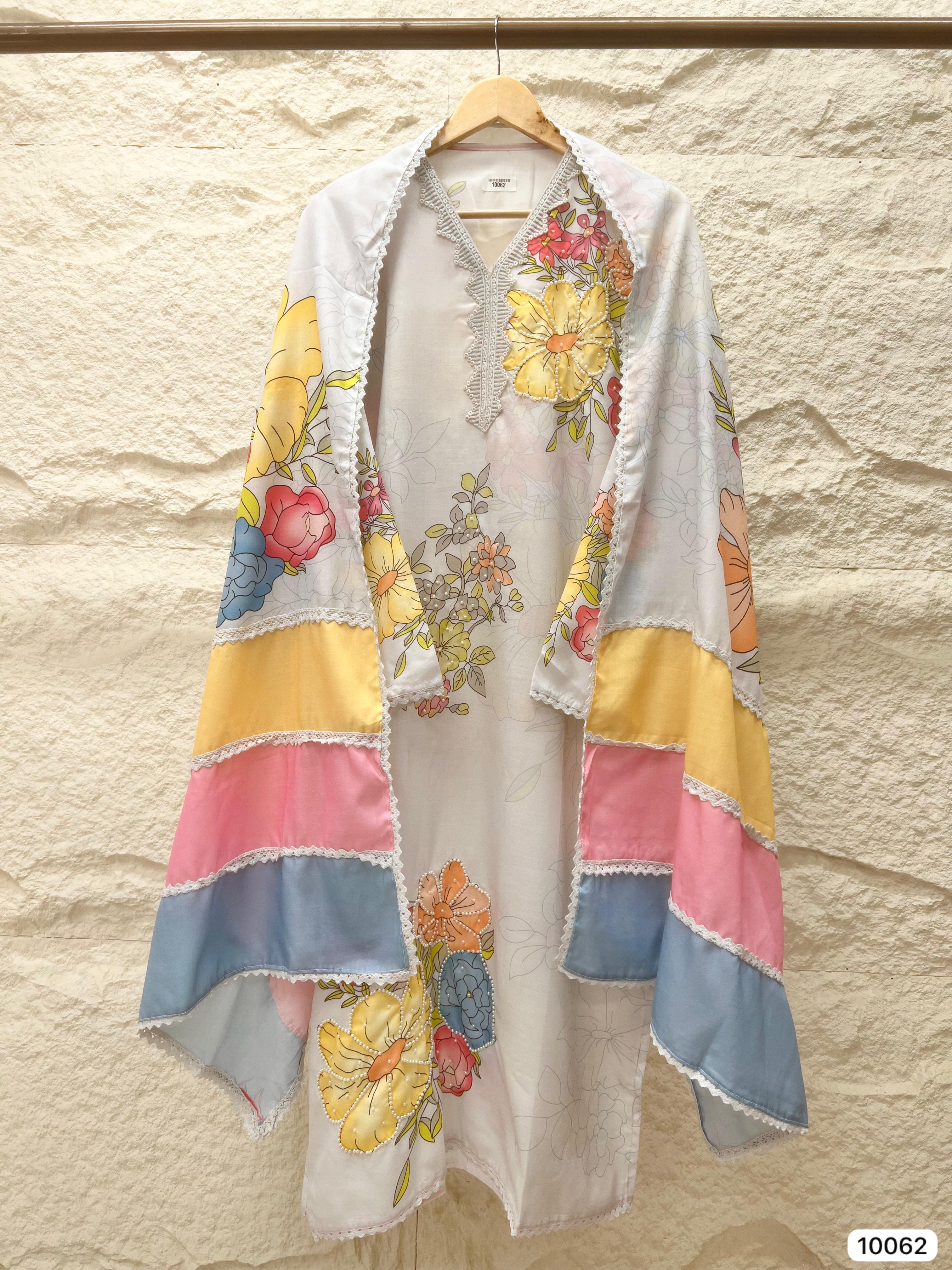 Gulabi Bloom Russian Silk Printed 3-Piece Set (Devri – D.No 2031)