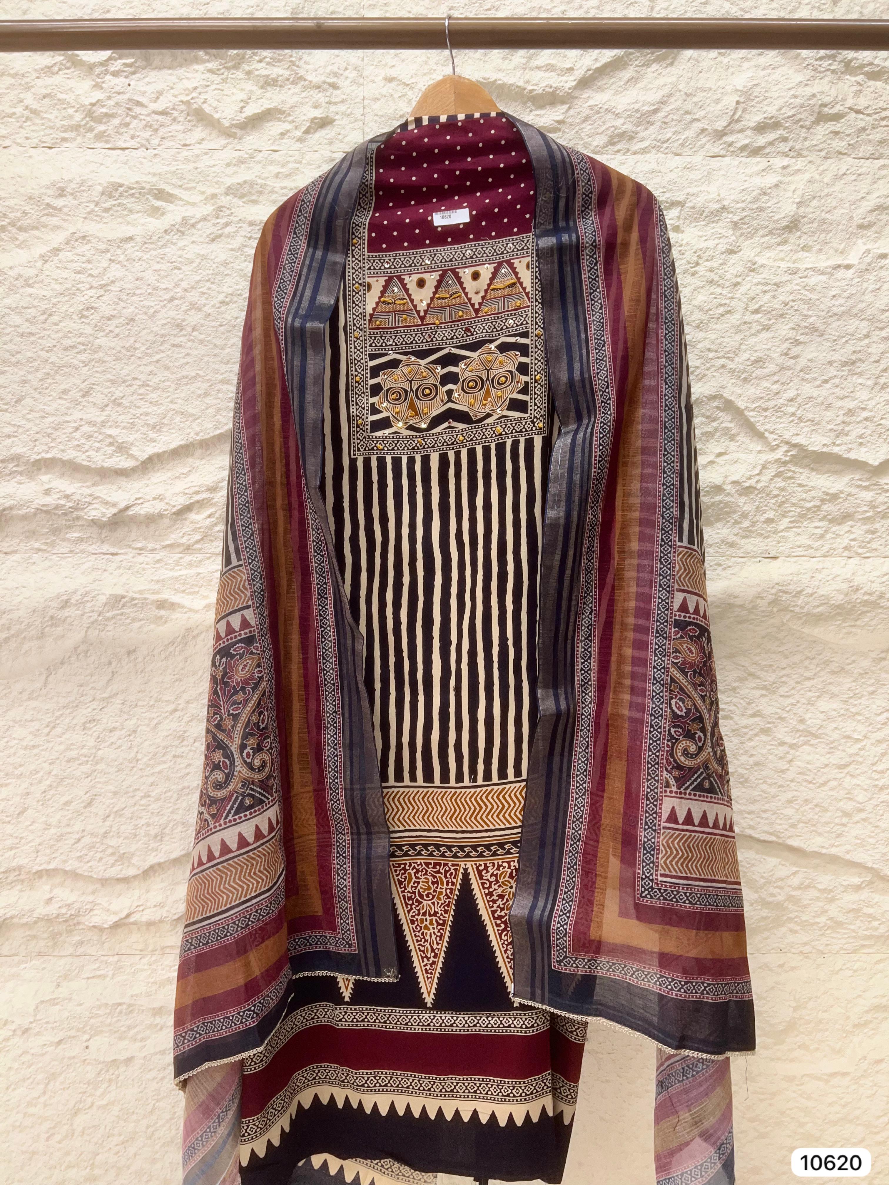 Aarvi Mul Chanderi Coral Embroidered 3-Piece Set (Devri – D.No 2034)