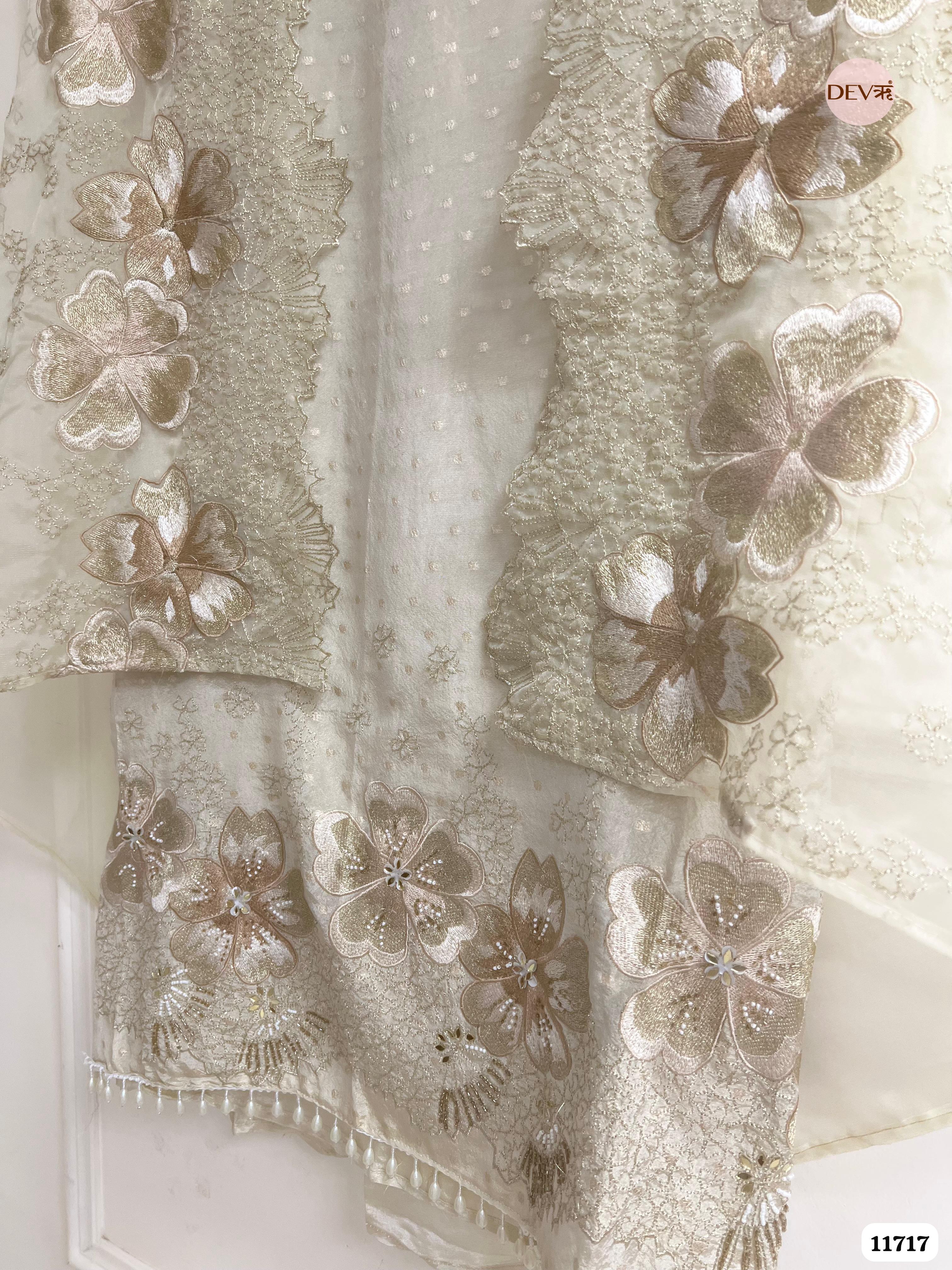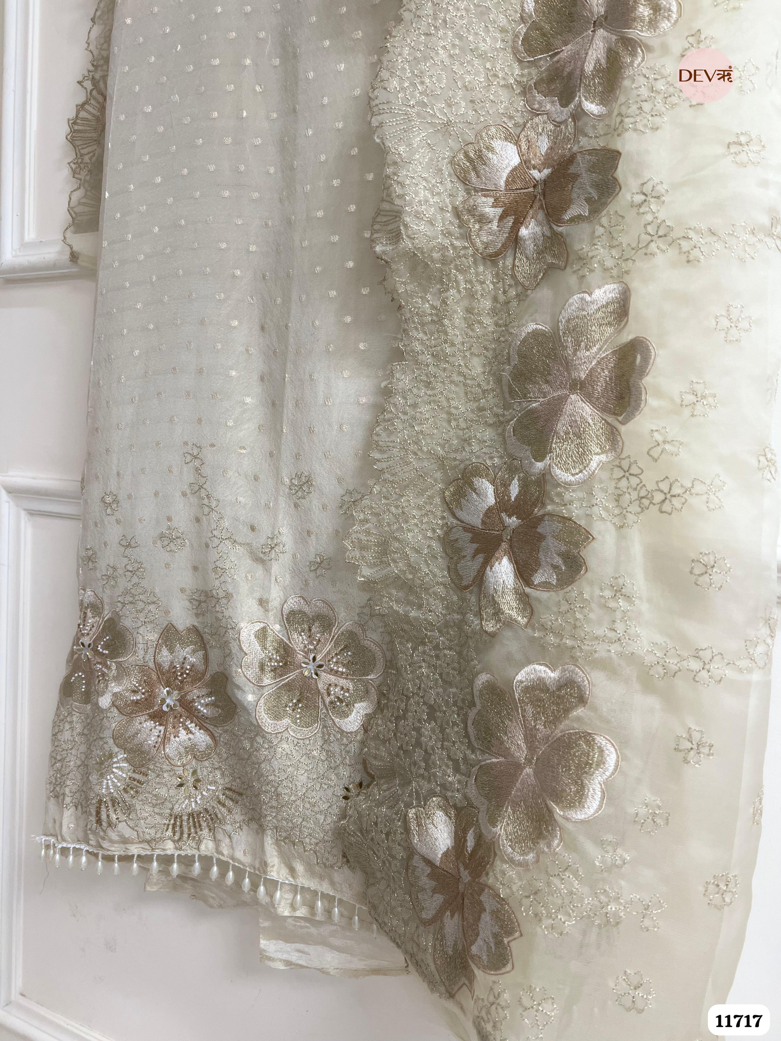 Off White Tissue Shimmer Silk Unstitched Embroidered -Set Of 3