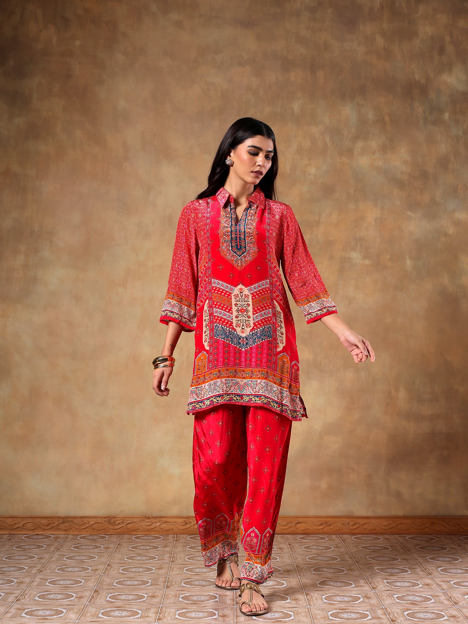 Red Printed Set Crafted In soft Natural Crepe- Set Of 2 - {1062/M}