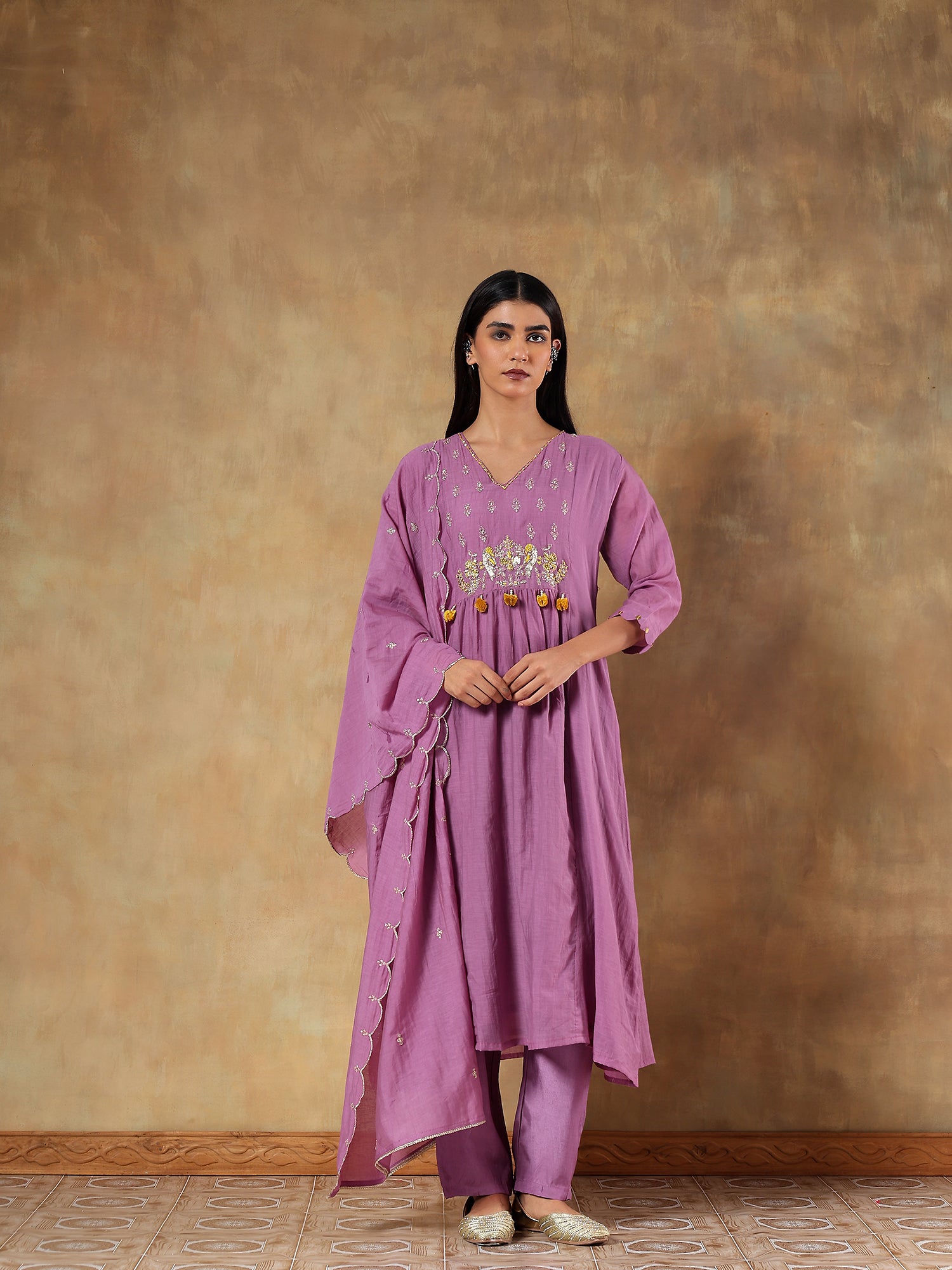 Purple Embroidered Muslin 3-Piece Set - {2022/M}