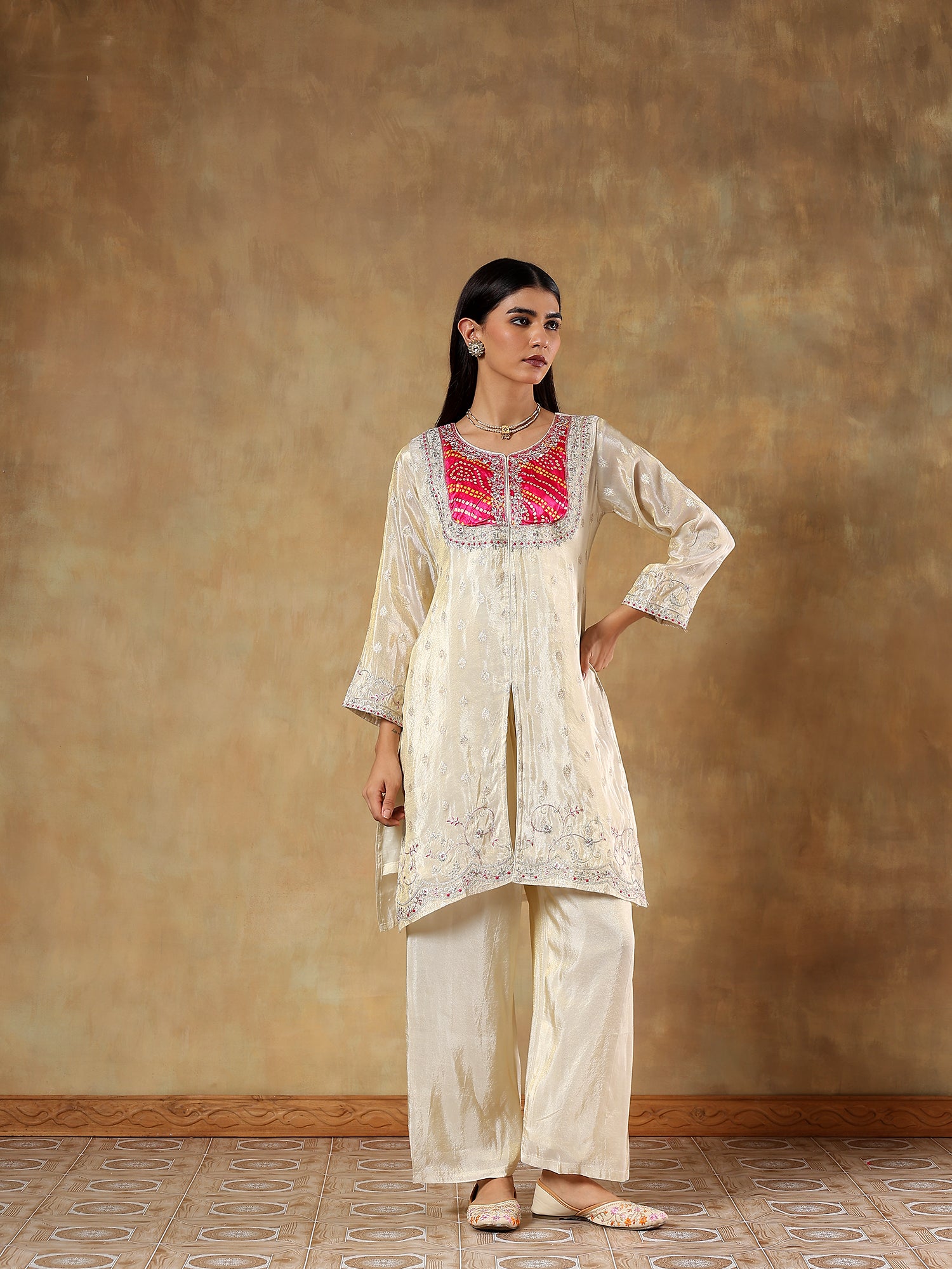 Ira Mul Chanderi Hand-Embroidered 3-Piece Set (Devri – D.No 1087)