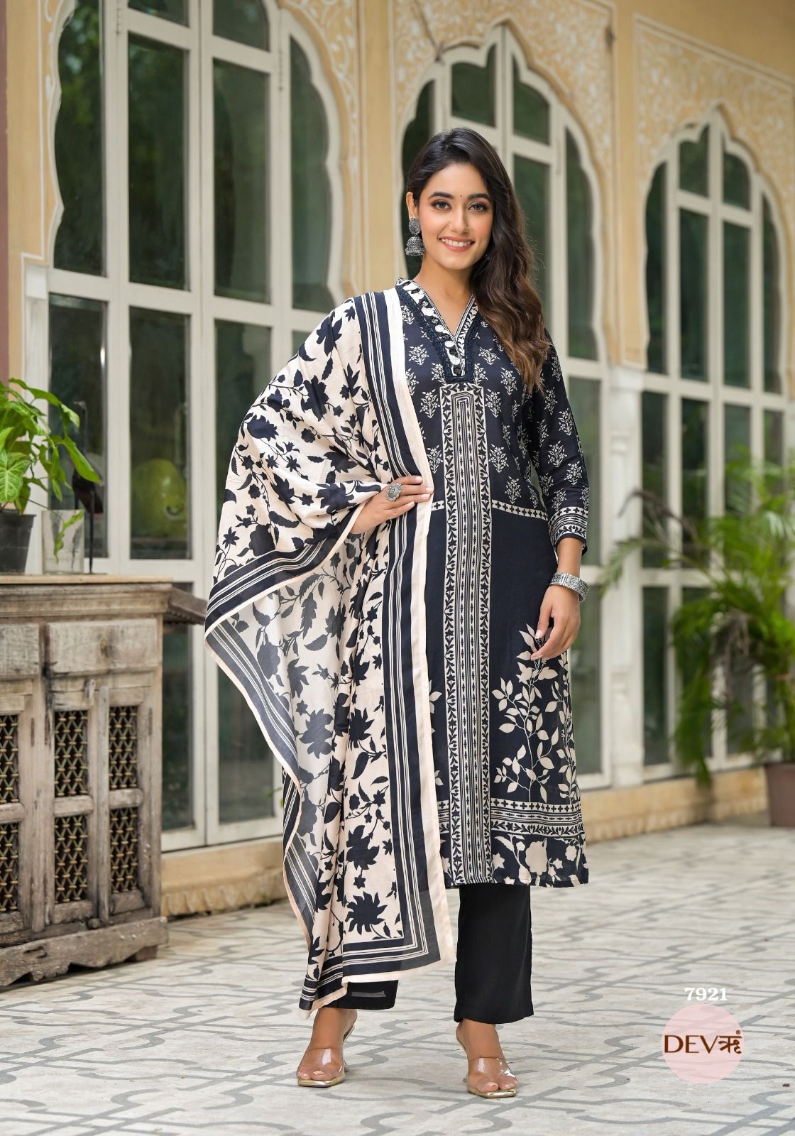 Noor Natural Crepe Printed 3-Piece Set (Devri – D.No 1079)