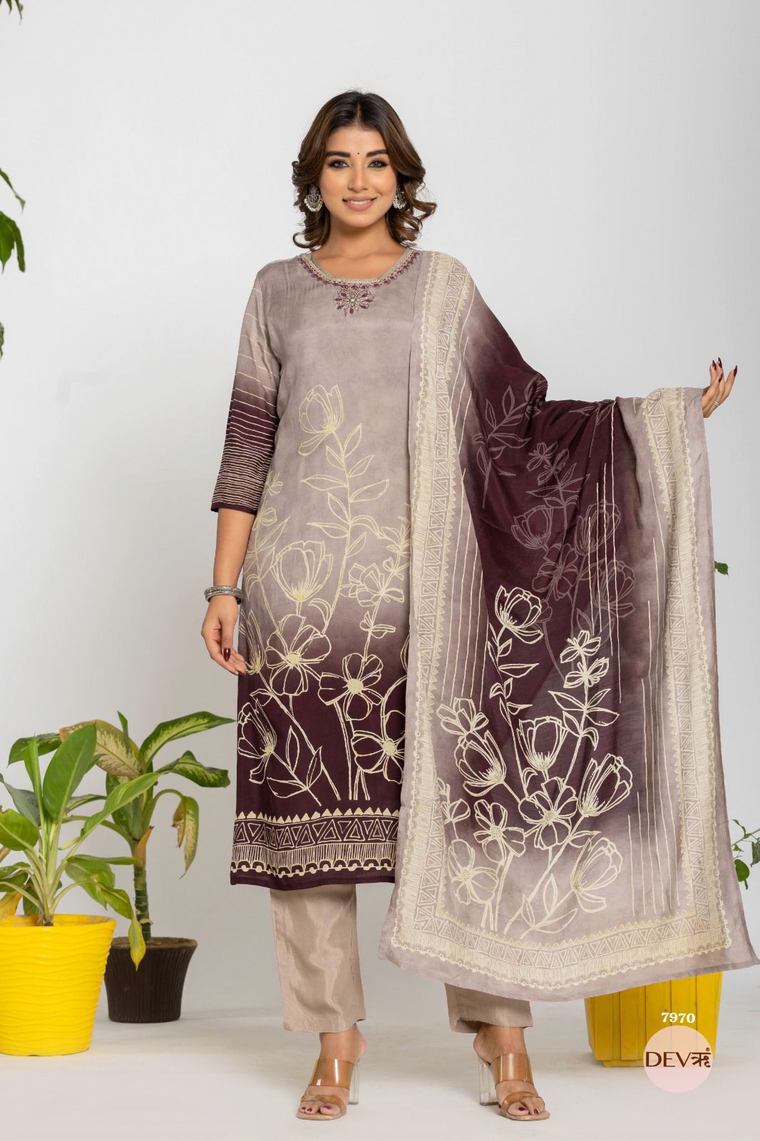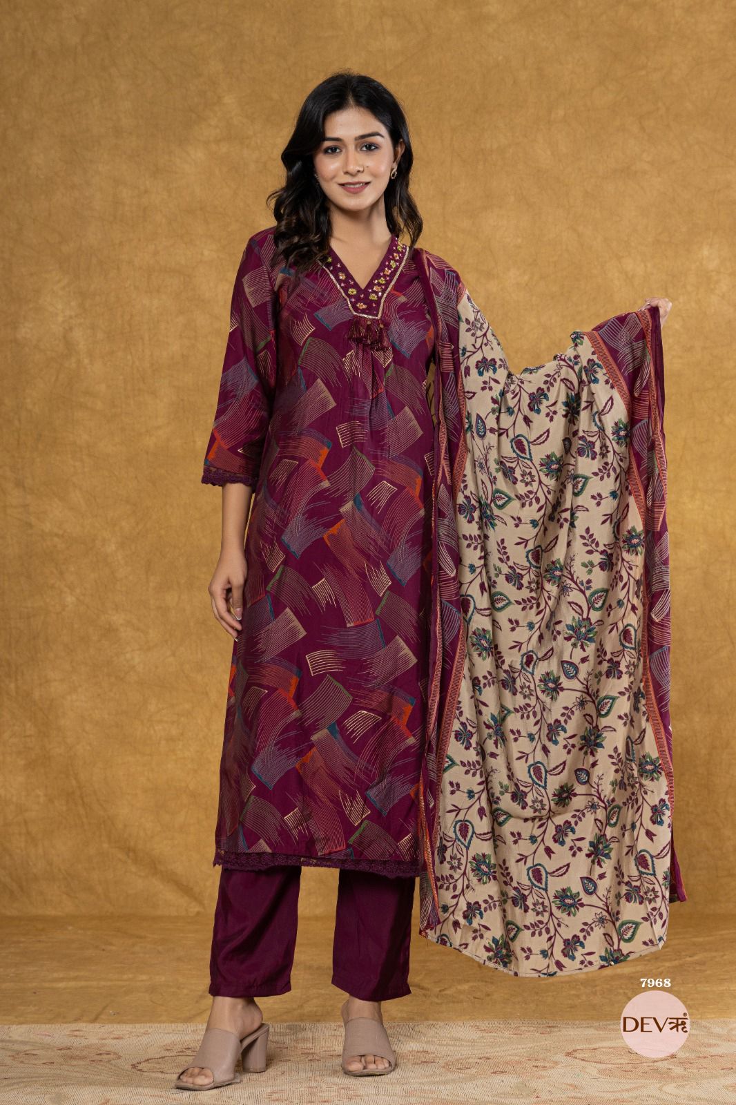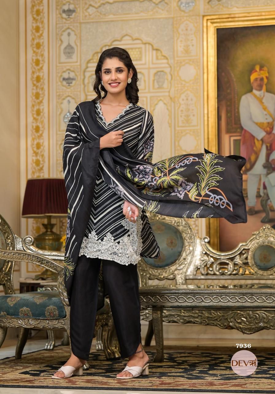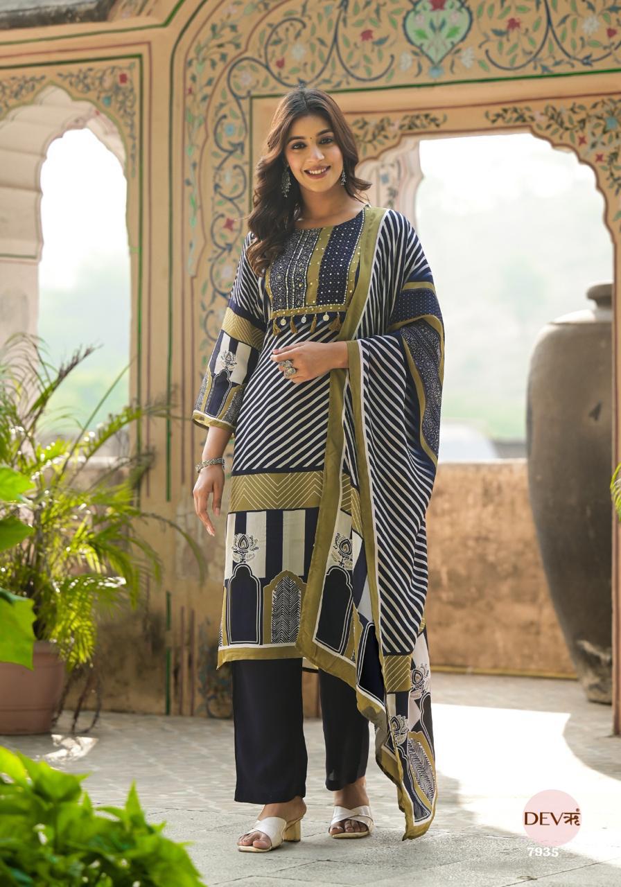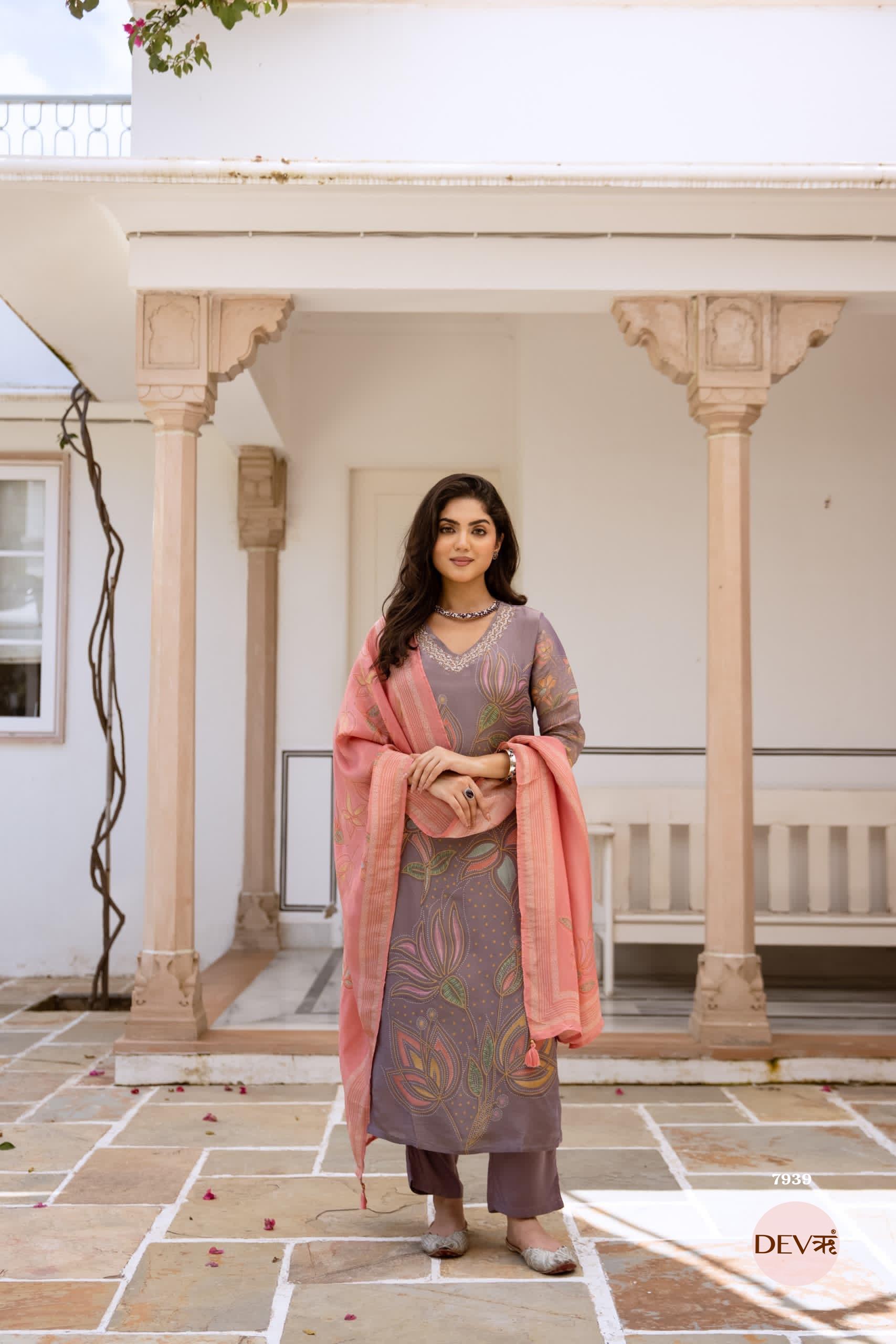 Mira Russian Silk Printed 3-Piece Set (Devri – D.No 1076)