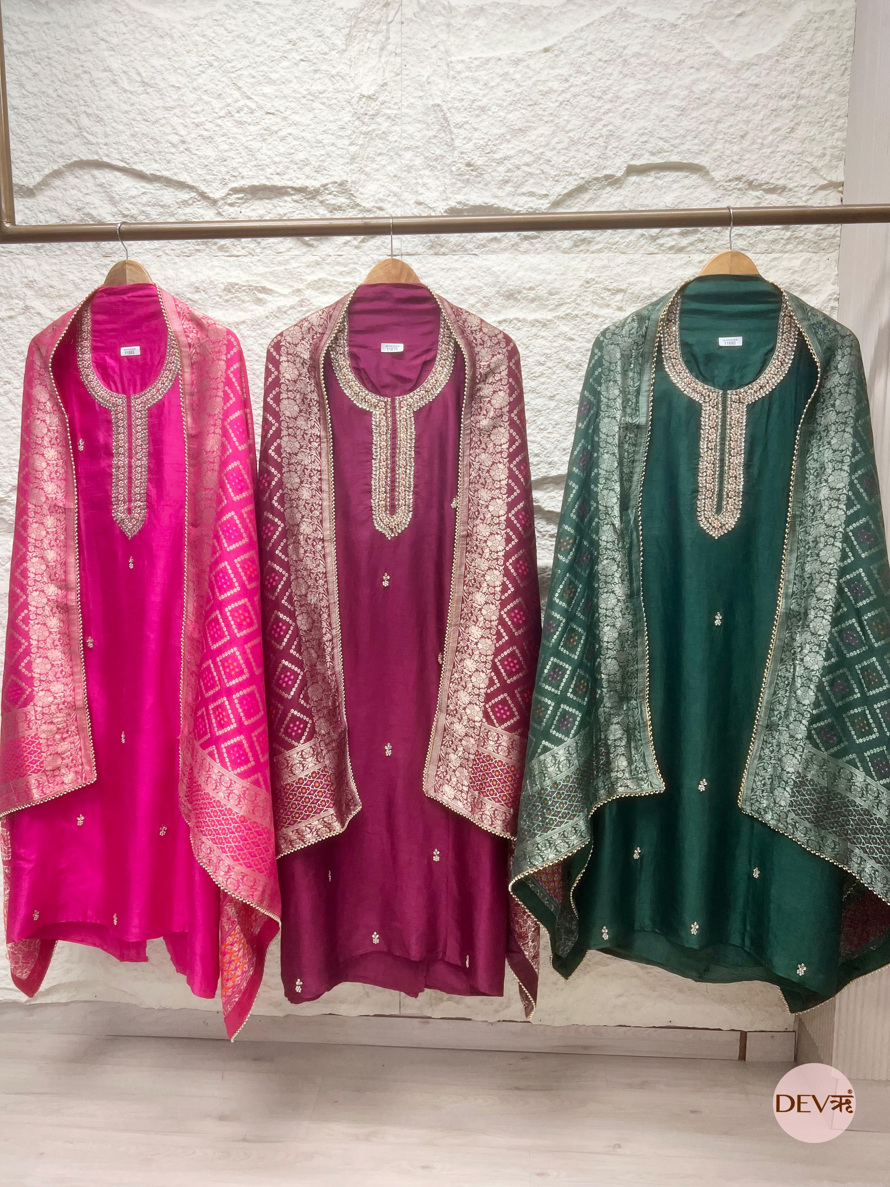 Shirt - Pure Dola silk unstitched Banarasi woven hand embroidered