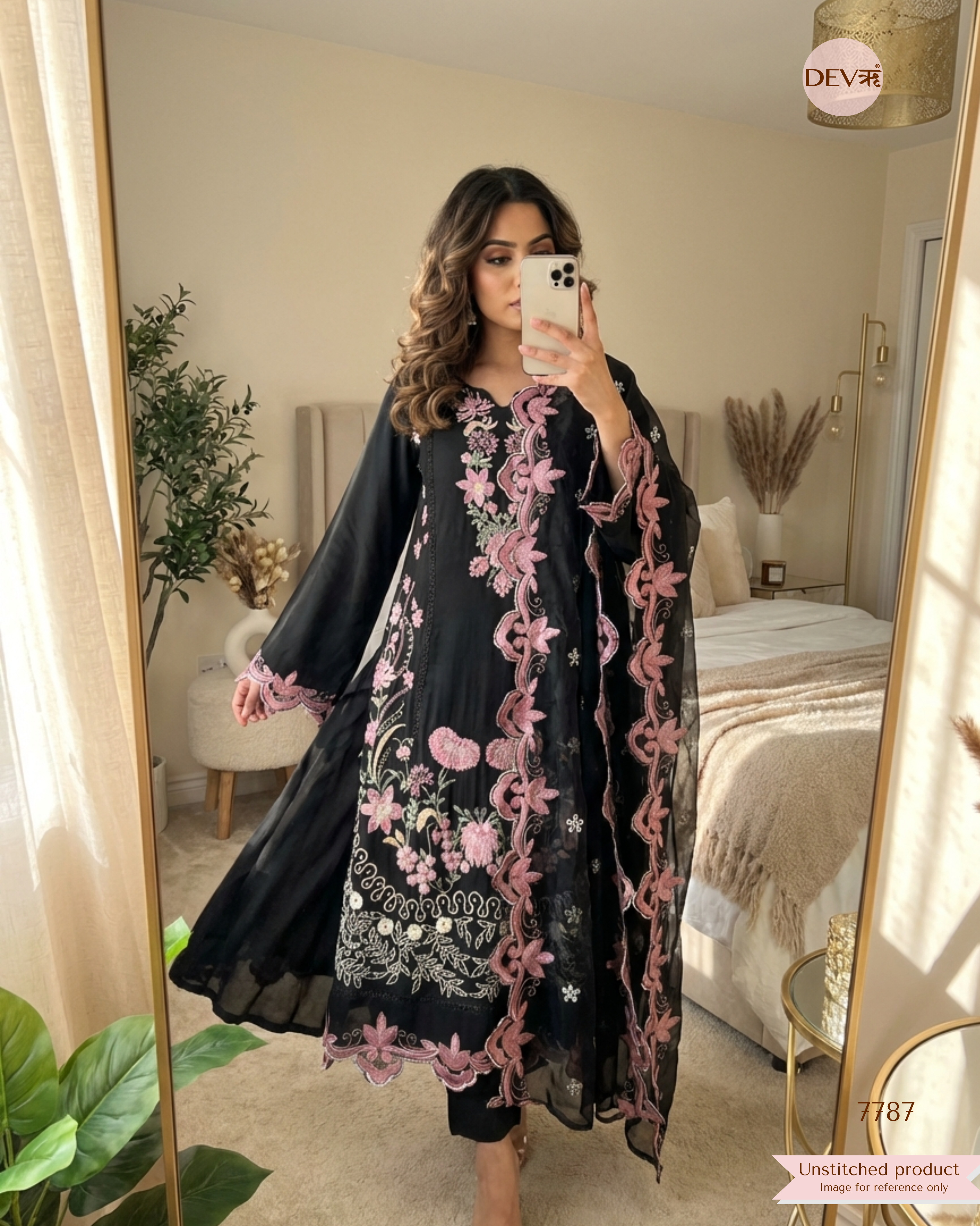 Pure organza unstitched shirt pakistani style with beautiful pearl and thread hand work