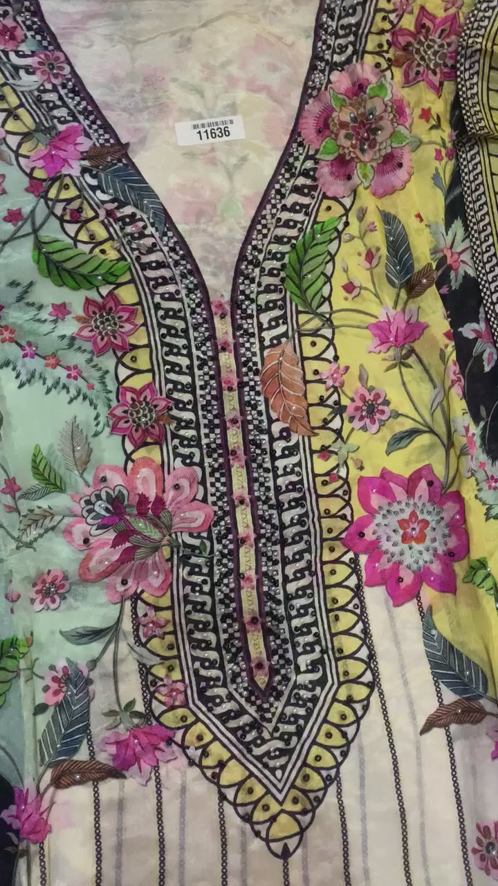 Shirt - Organza printed semi stitched hand embroidered