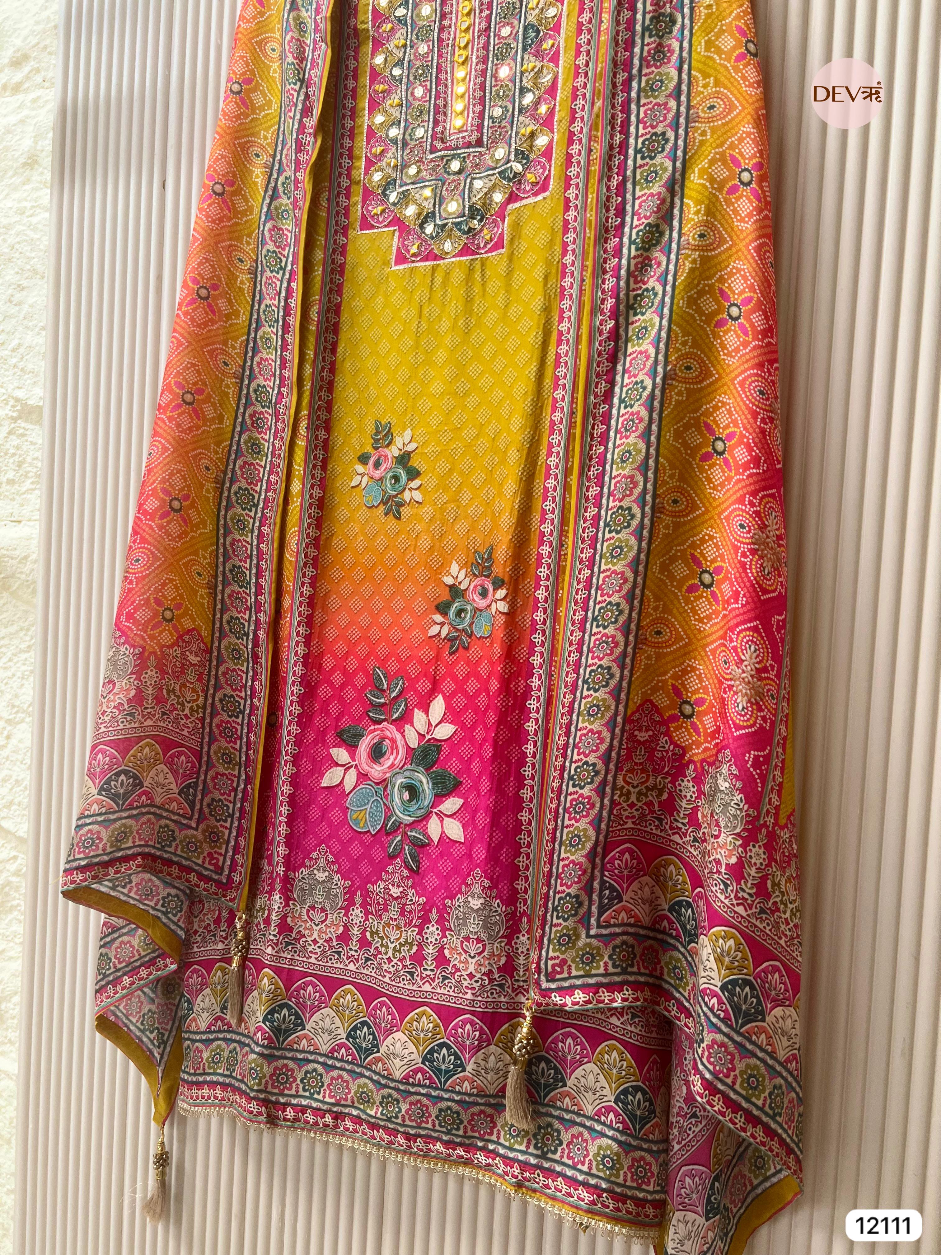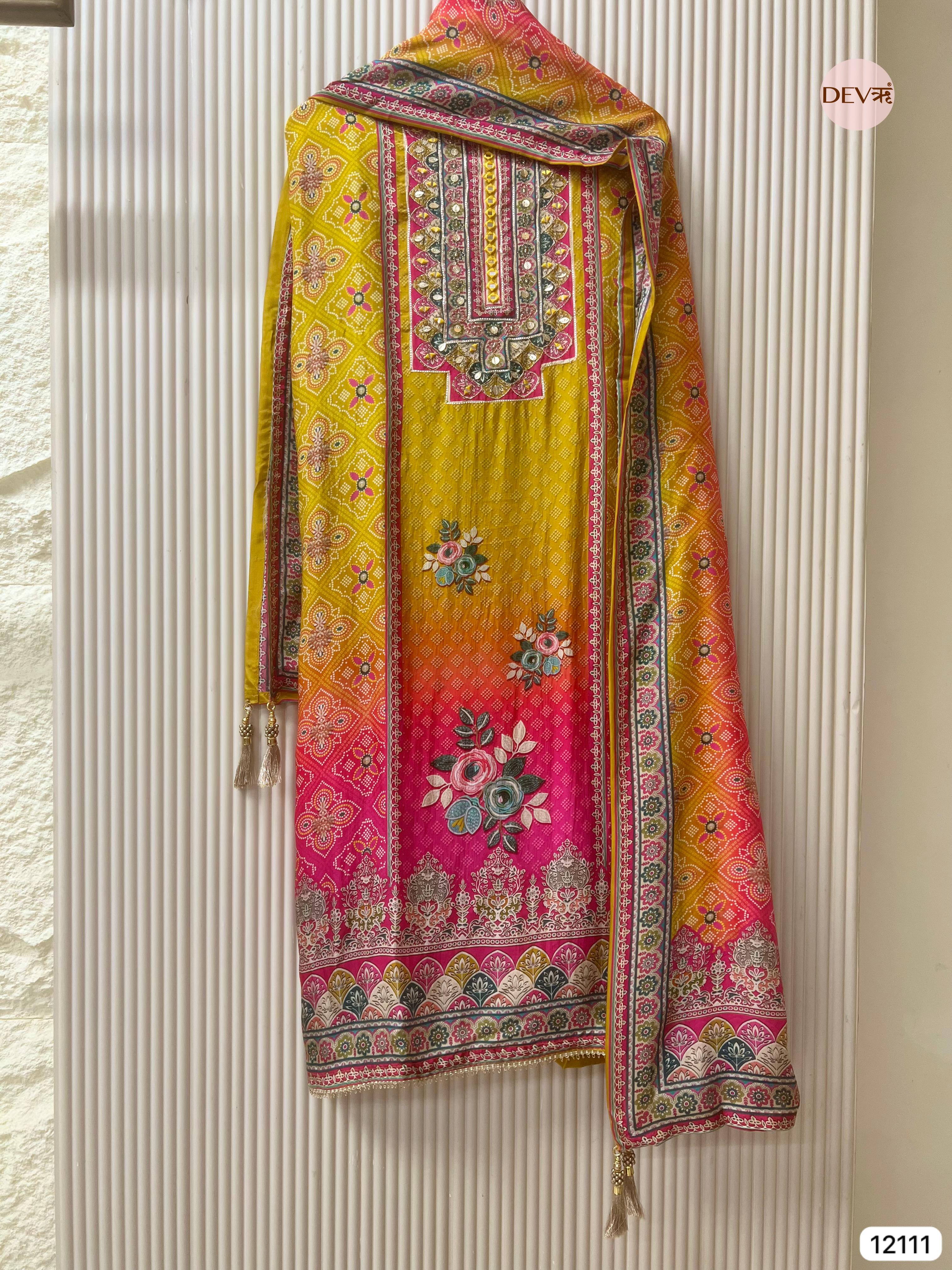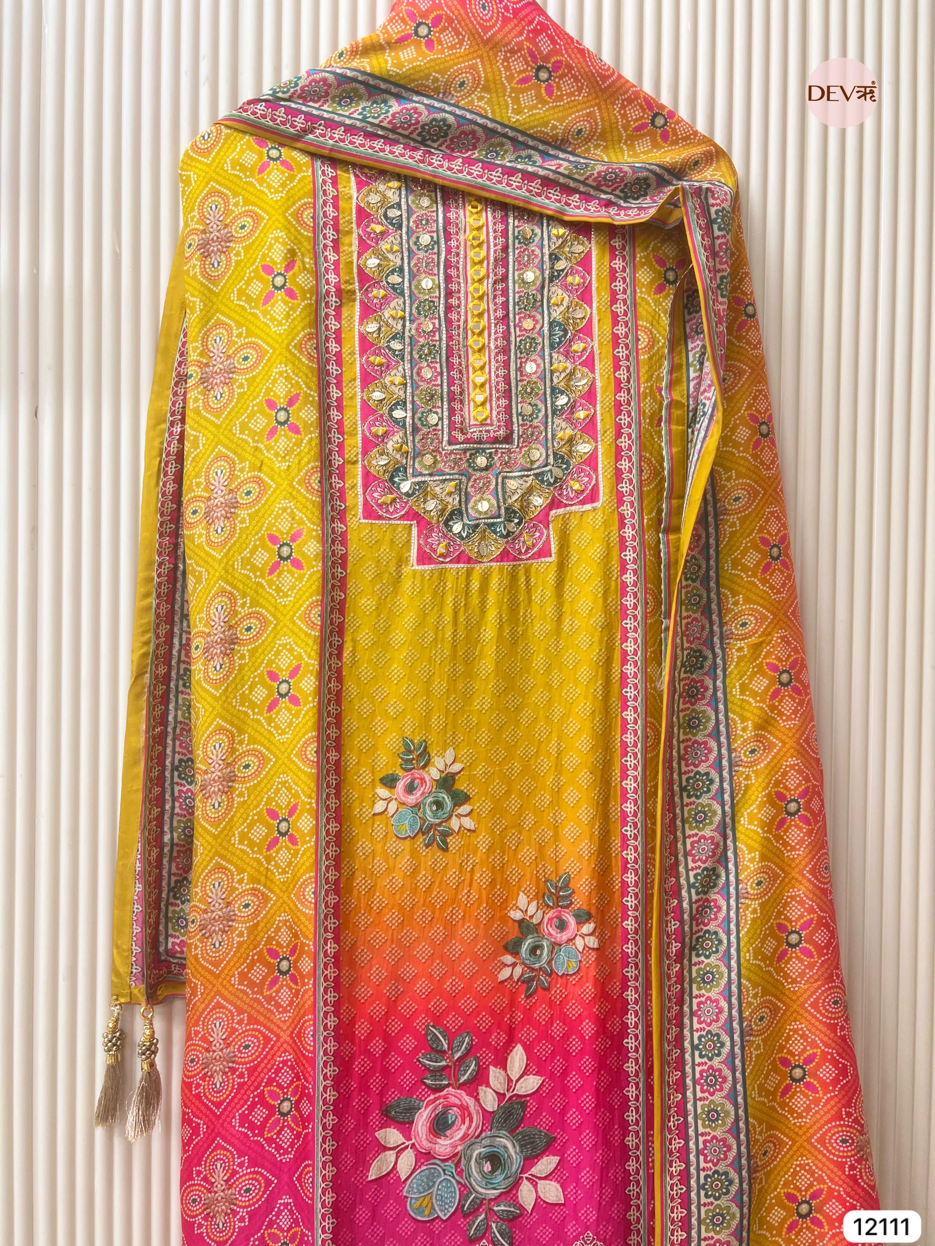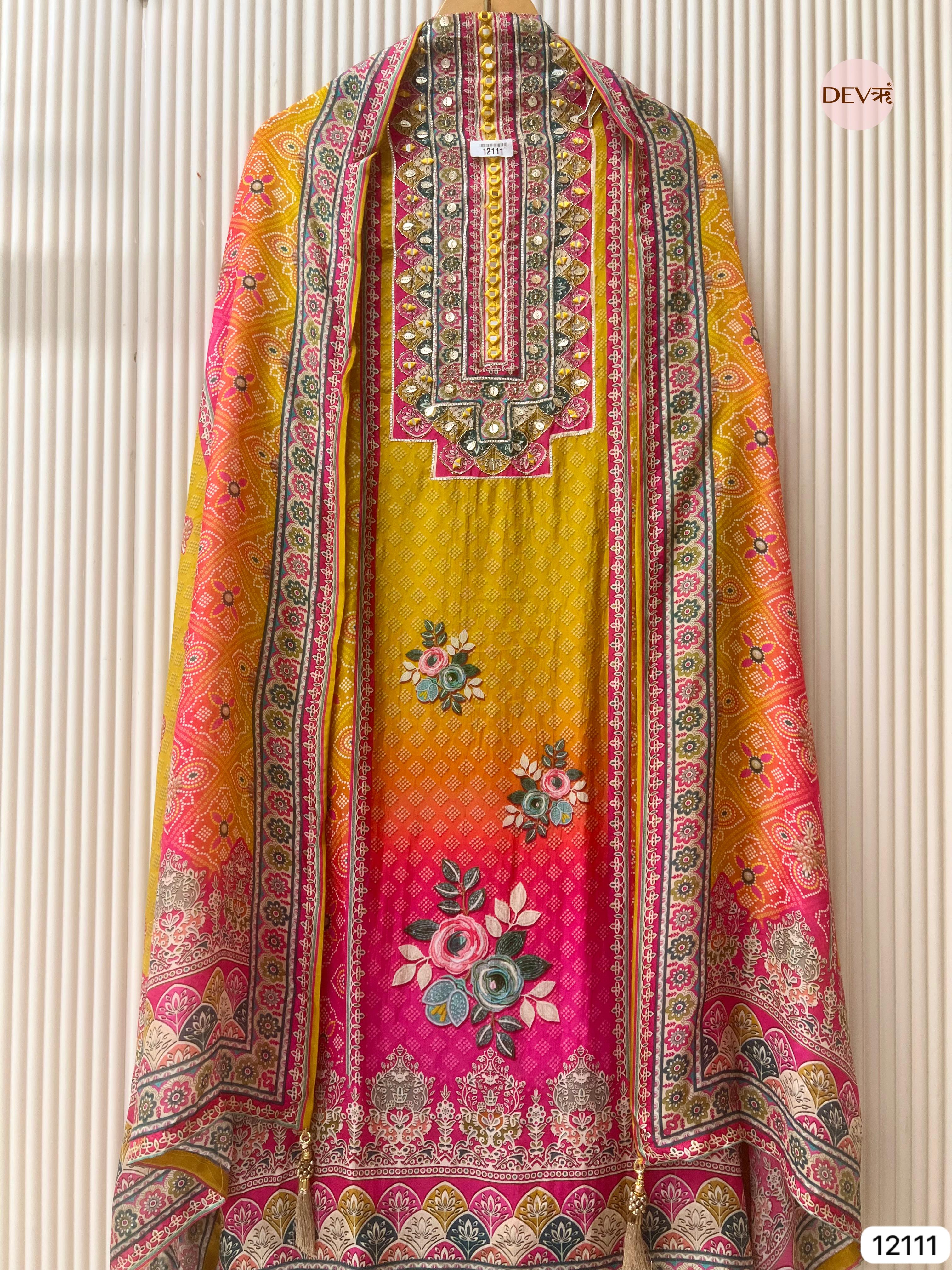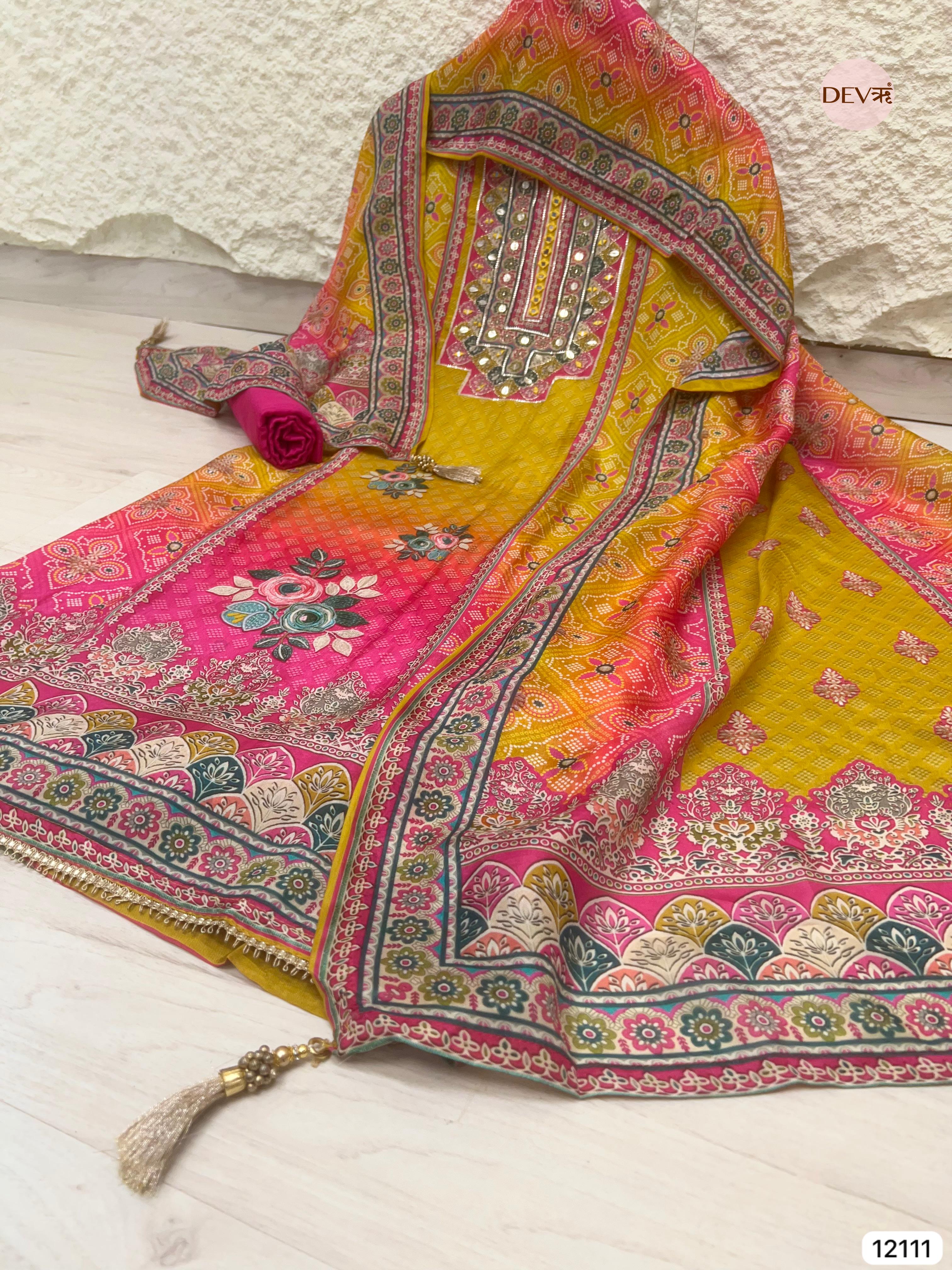Yellow Pure Organza Silk Unstitched Printed -Set Of 3 - {12111}