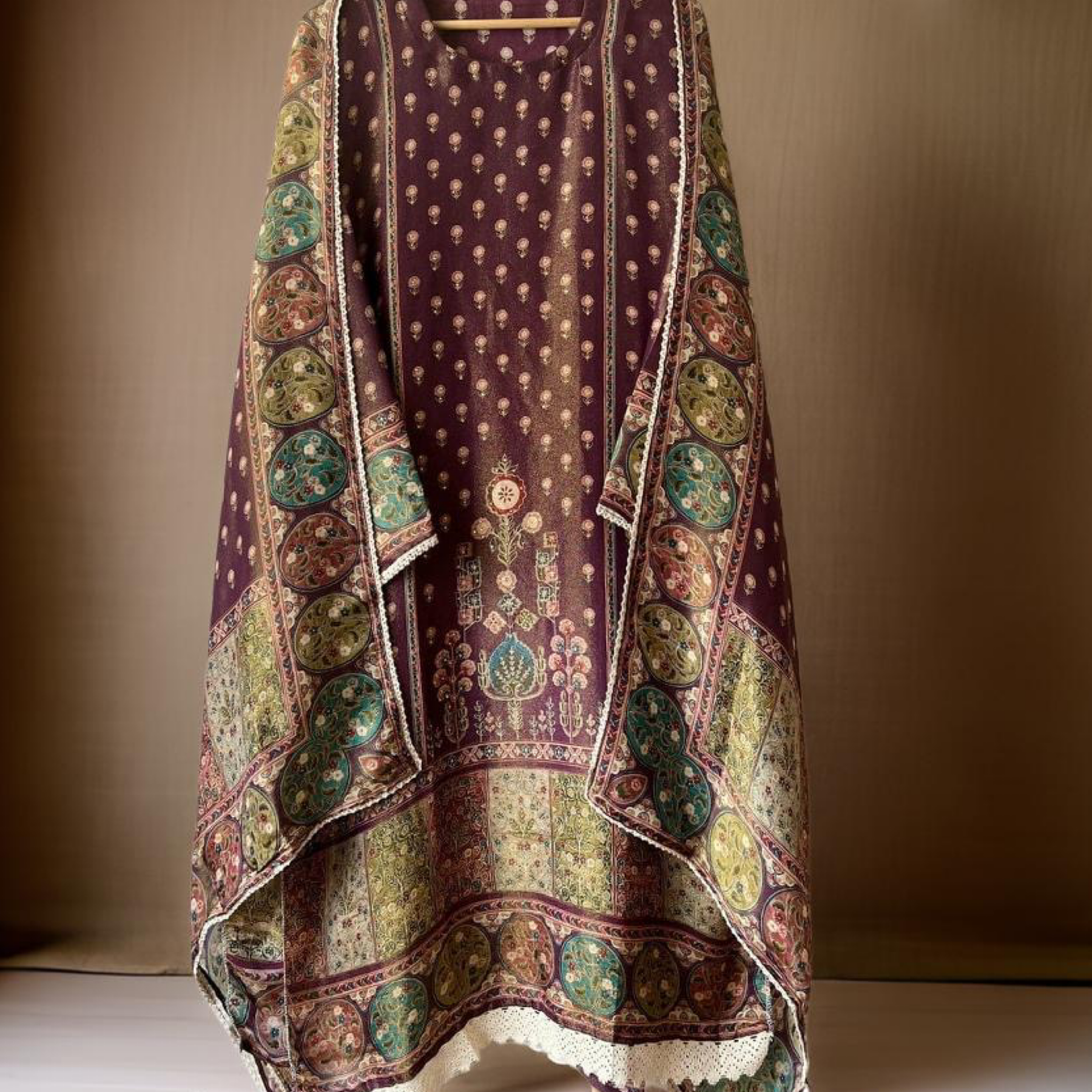 {11976} Beige Pure Muslin Unstitched Printed -Set Of 3