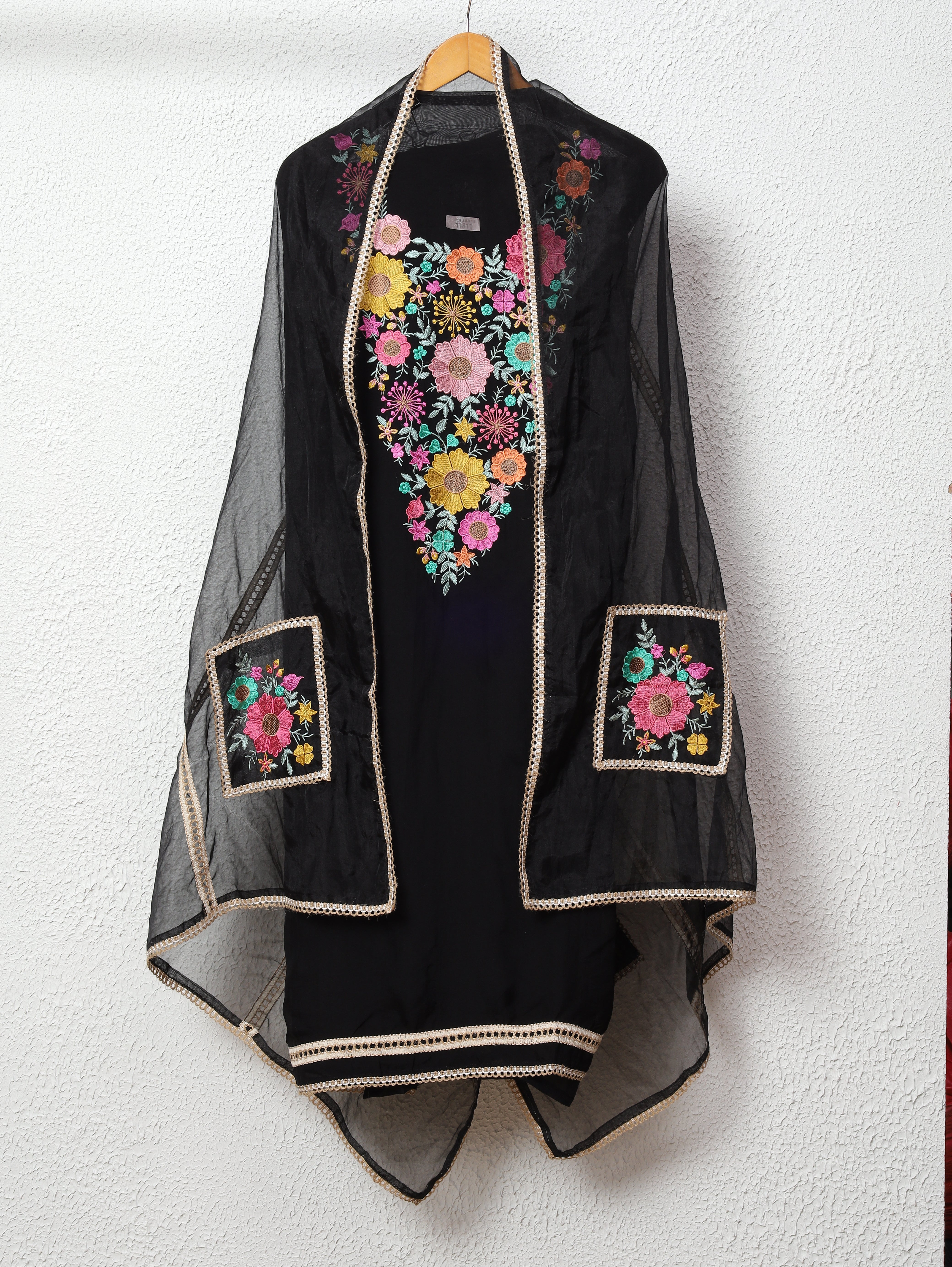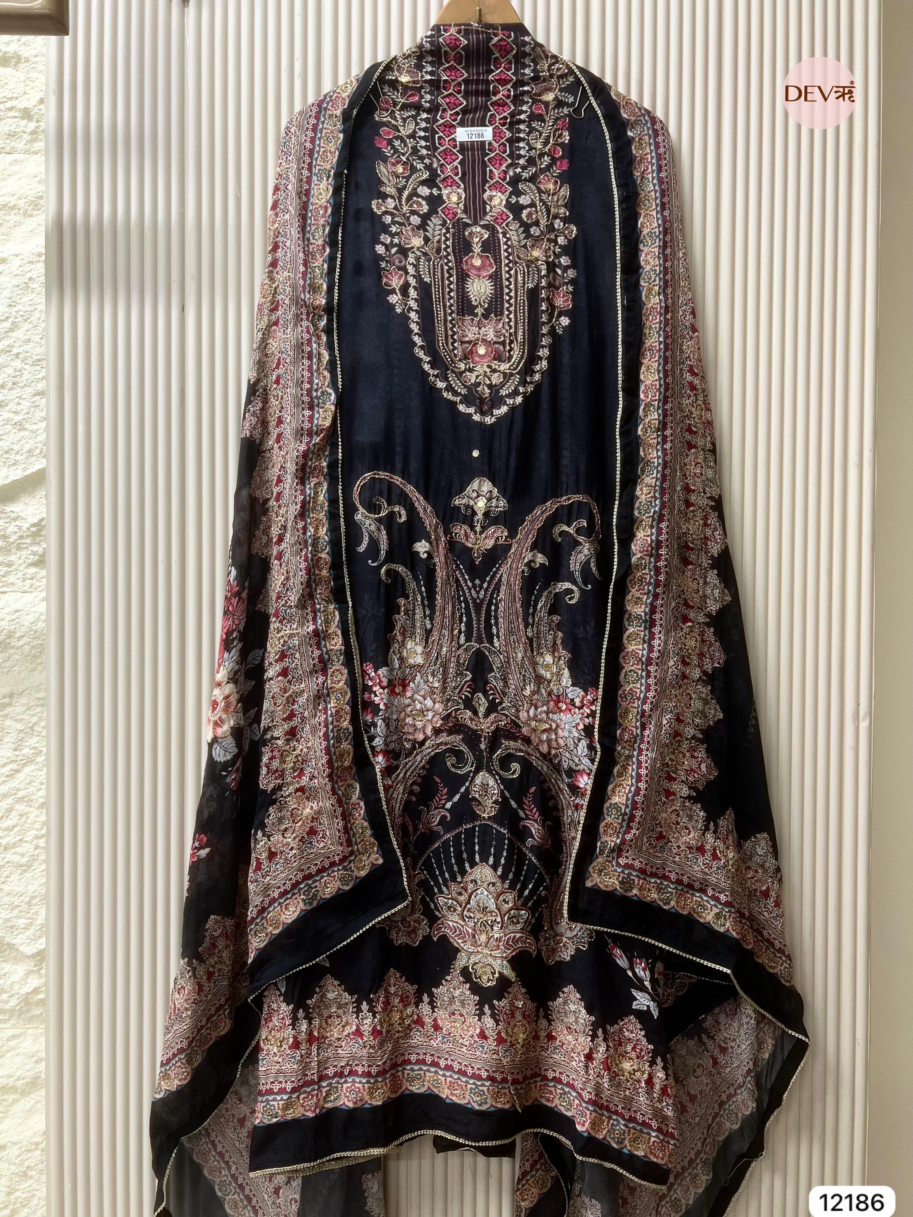 Black Organza Embroidered Unstitched 3-Piece Suit (Devri – D.No 11811)