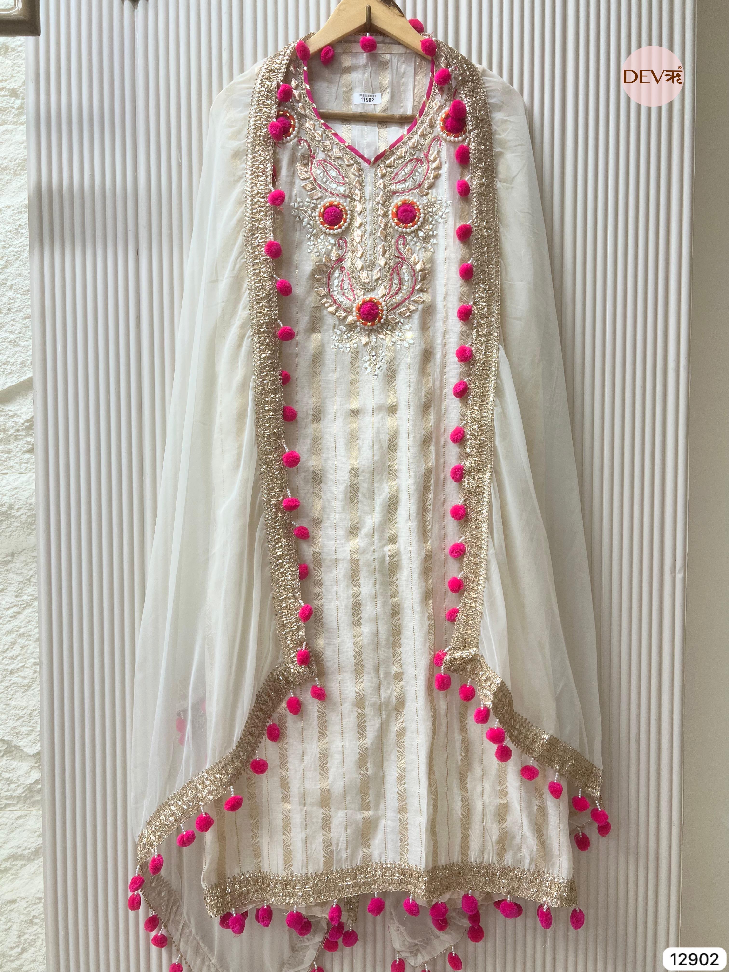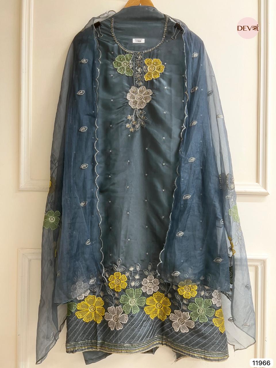 Ivory Organza Embroidered Unstitched 3-Piece Suit (Devri – D.No 11812)