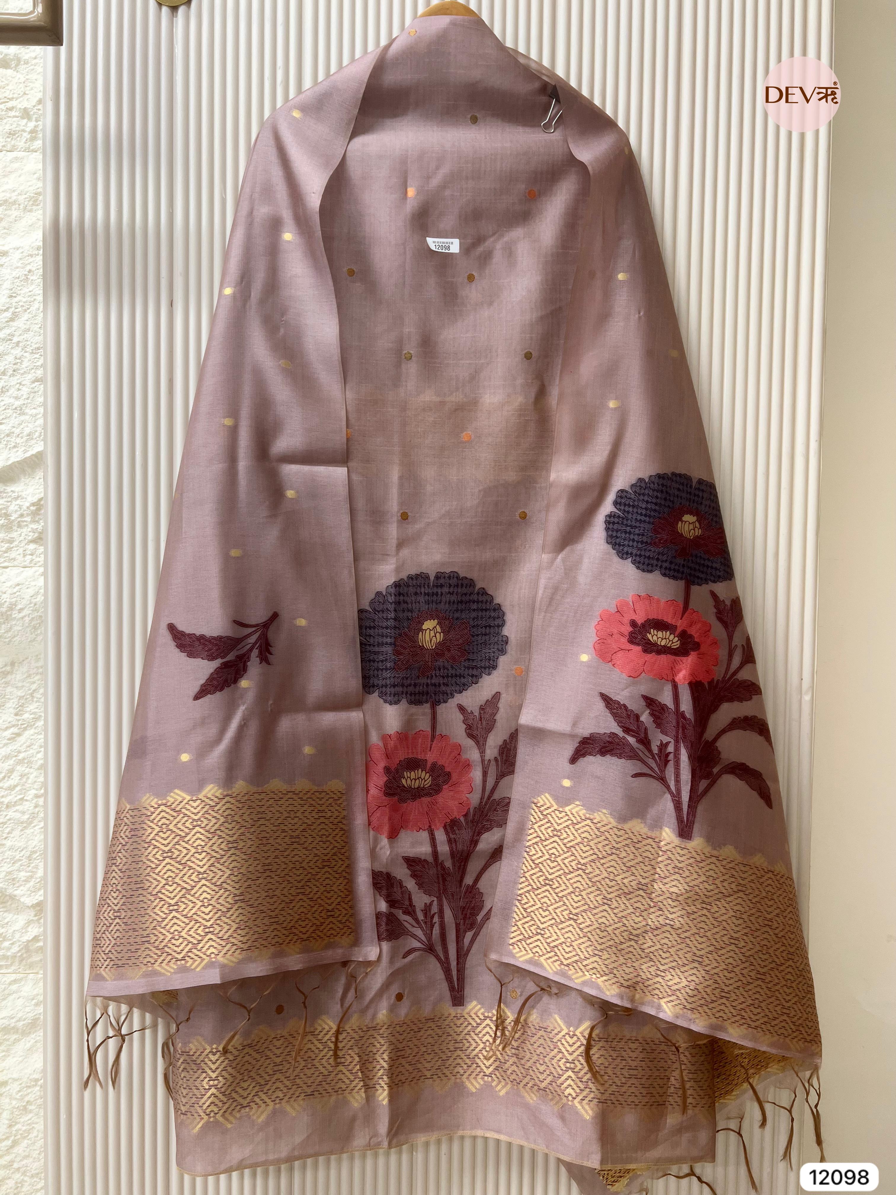 Dusty Pink Banarasi Khadi Silk Unstitched -Set Of 3 - {12098}
