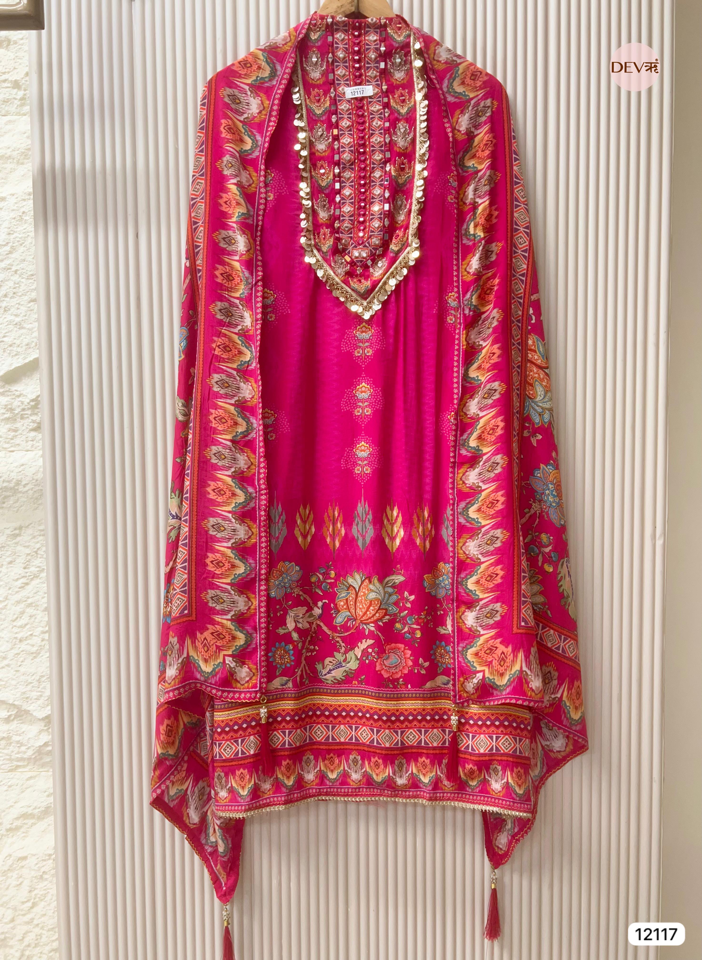 {11968} Pink Muslin Unstitched Printed -Set Of 3