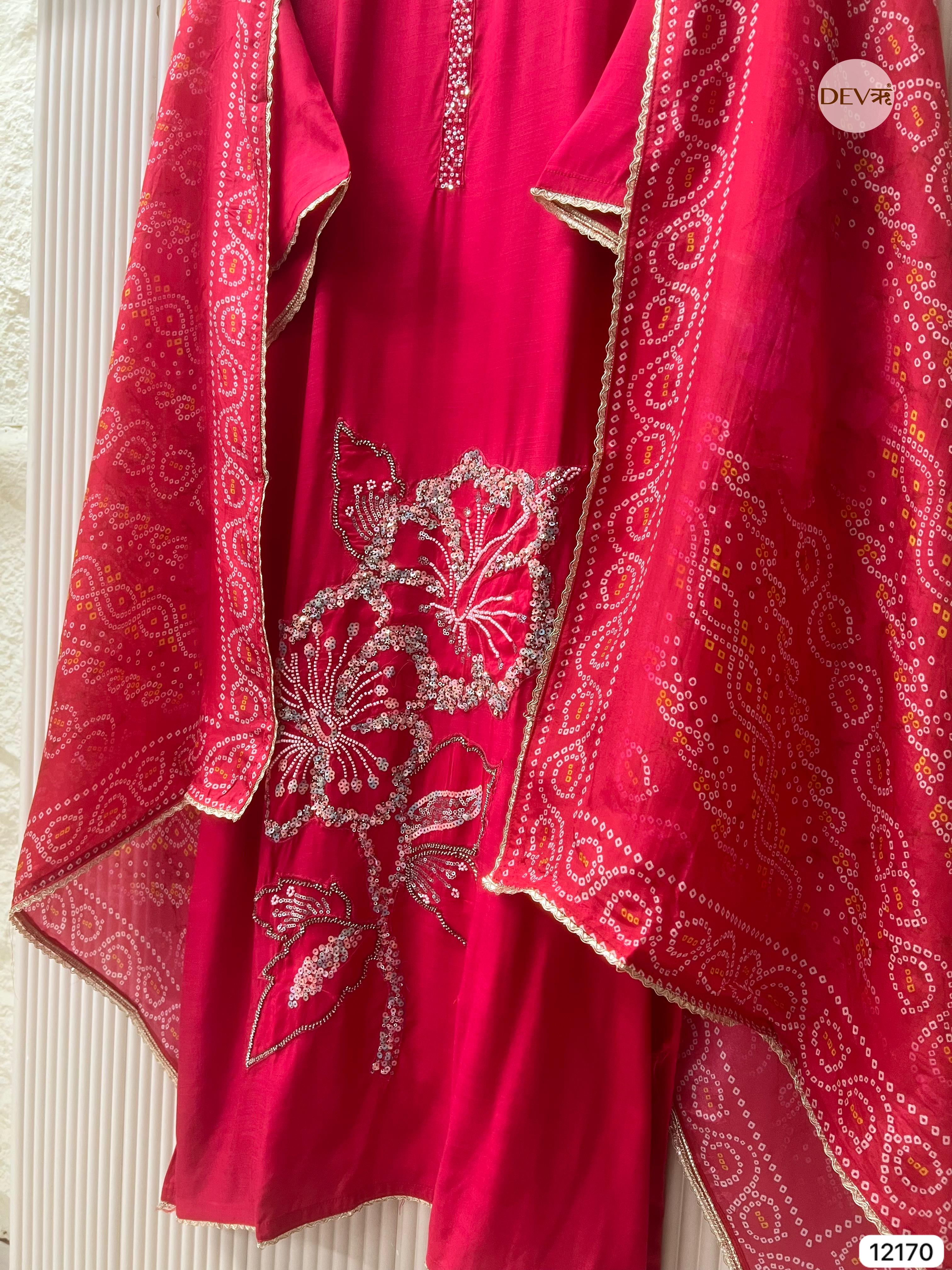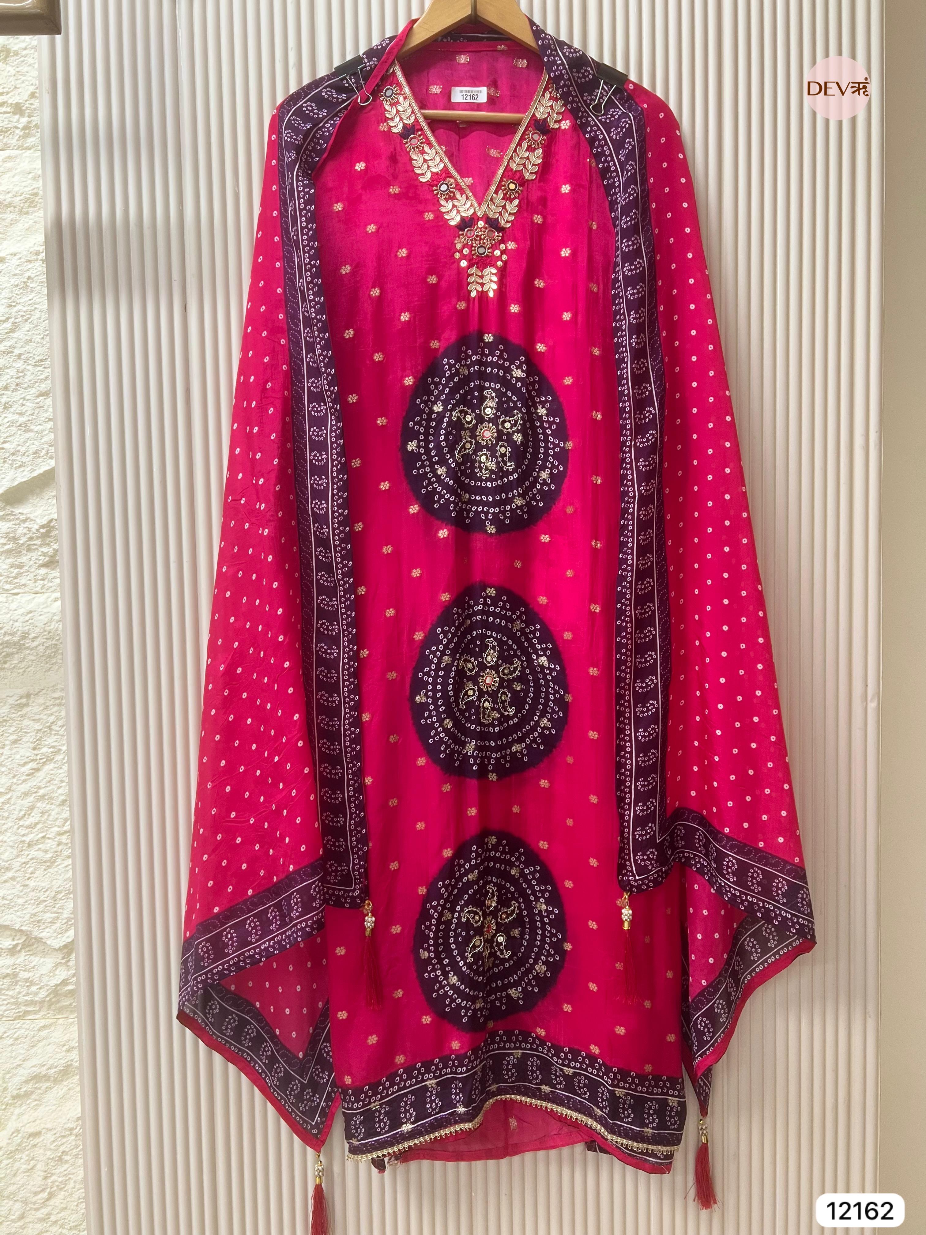 Pink Pure Shimmer Organza Silk Unstitched Banarasi Woven Bandhani Printed Hand Embroidered -Set Of 3 - {12162}