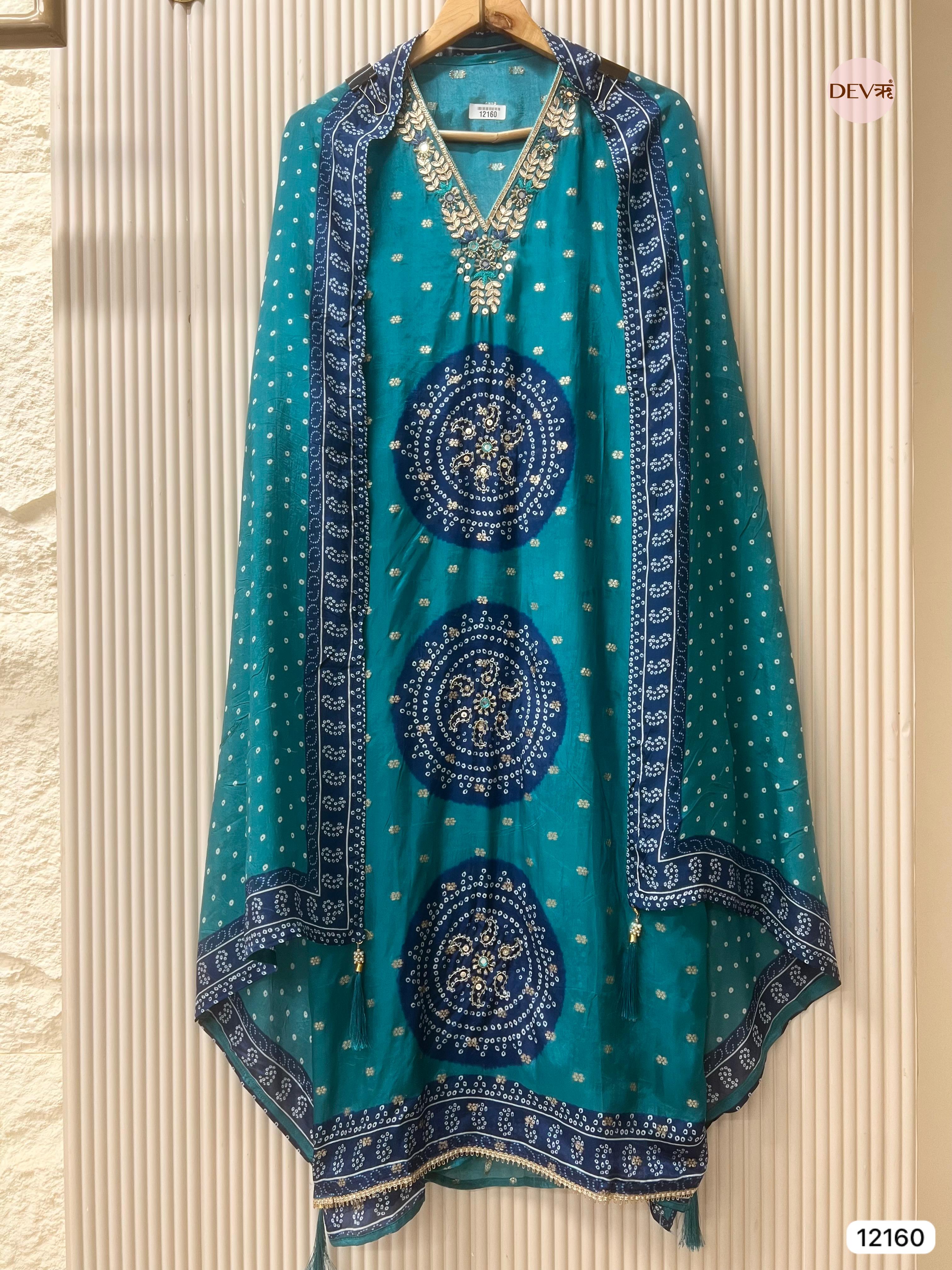 Blue Pure Shimmer Organza Silk Unstitched Banarasi Woven Bandhani Printed Hand Embroidered -Set Of 3 - {12160}