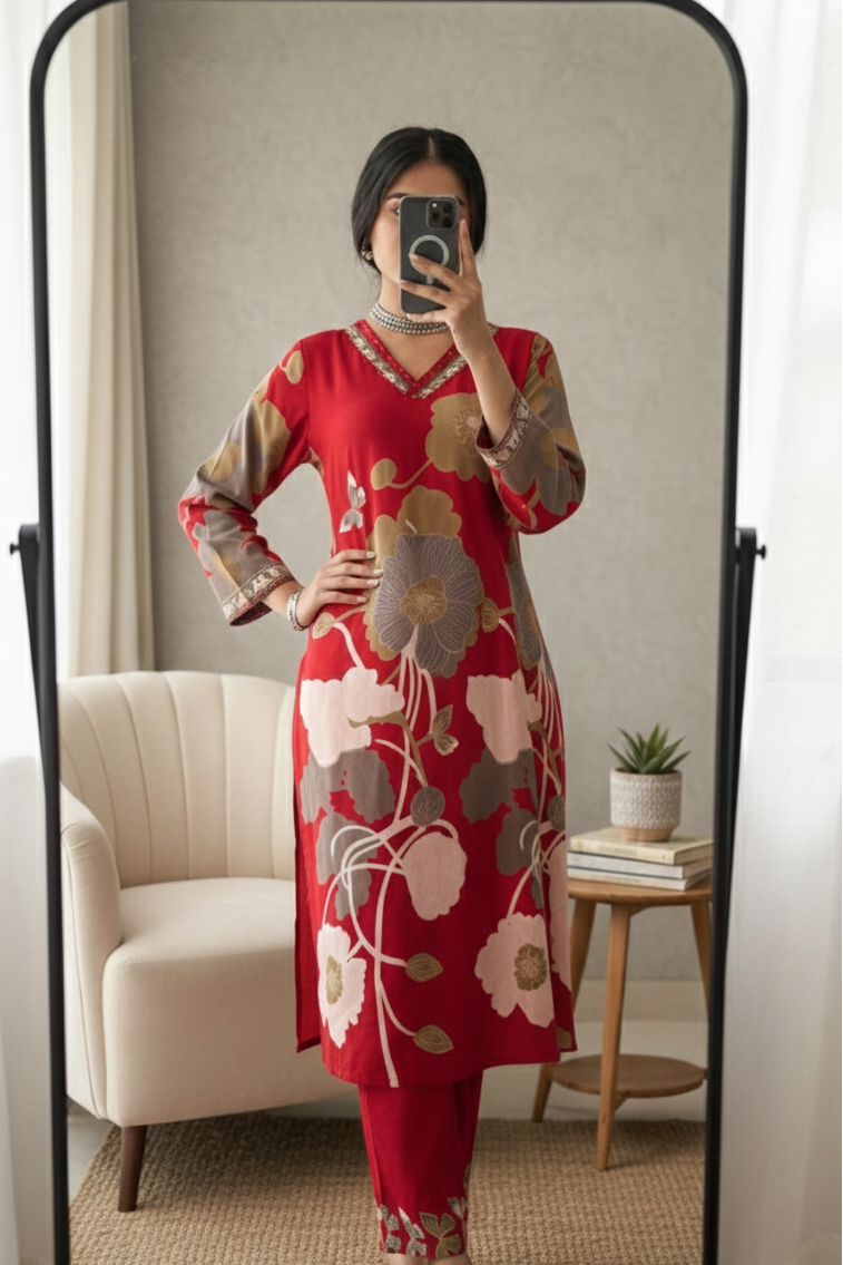 Terracotta Bloom Muslin 3-Piece Set {1036}
