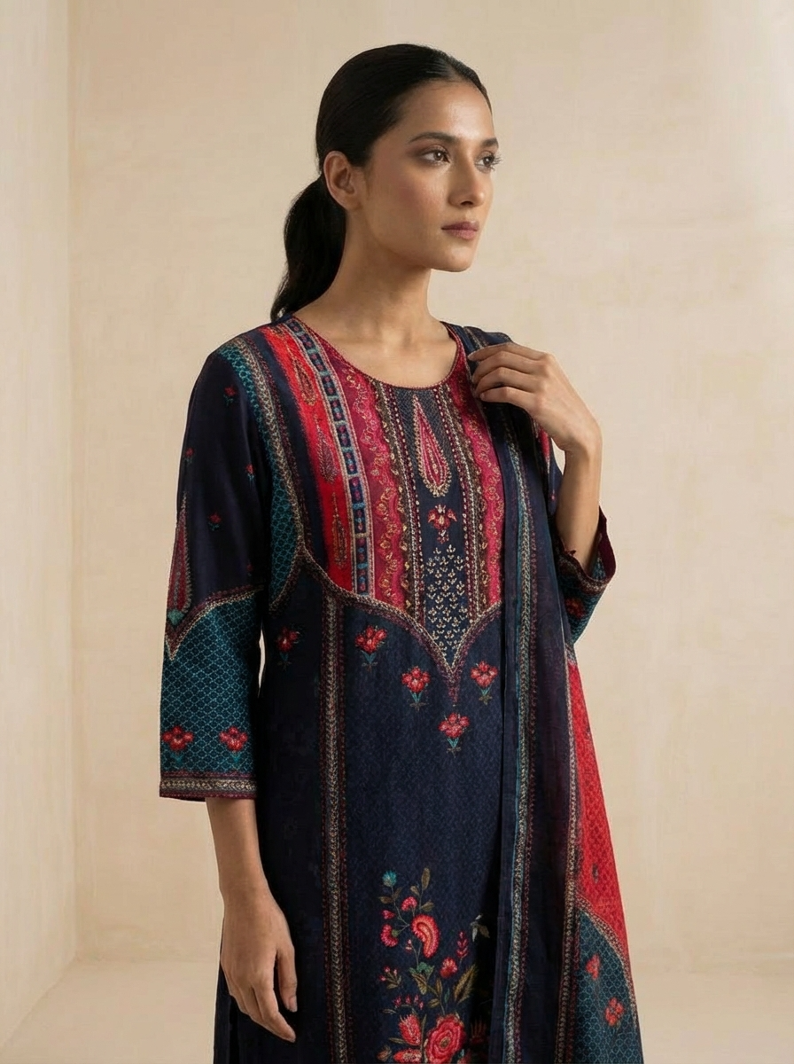 Black Embroidered Muslin 3-Piece Set - {2023}