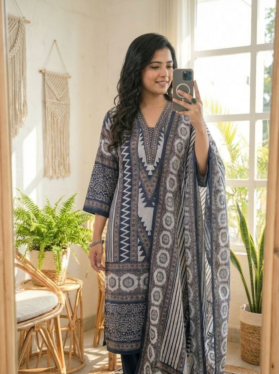 Stylish Pure cotton suit set {7923}