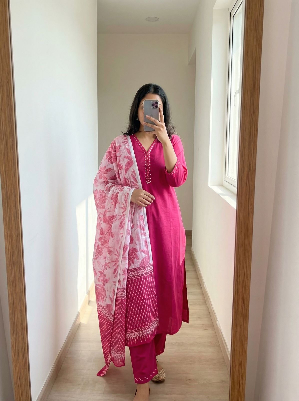 Pure muslin printed co-ord set {7924}