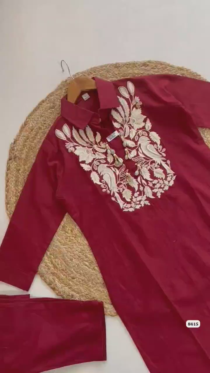 Pure cotton slub co ord with beautiful thread and beads work