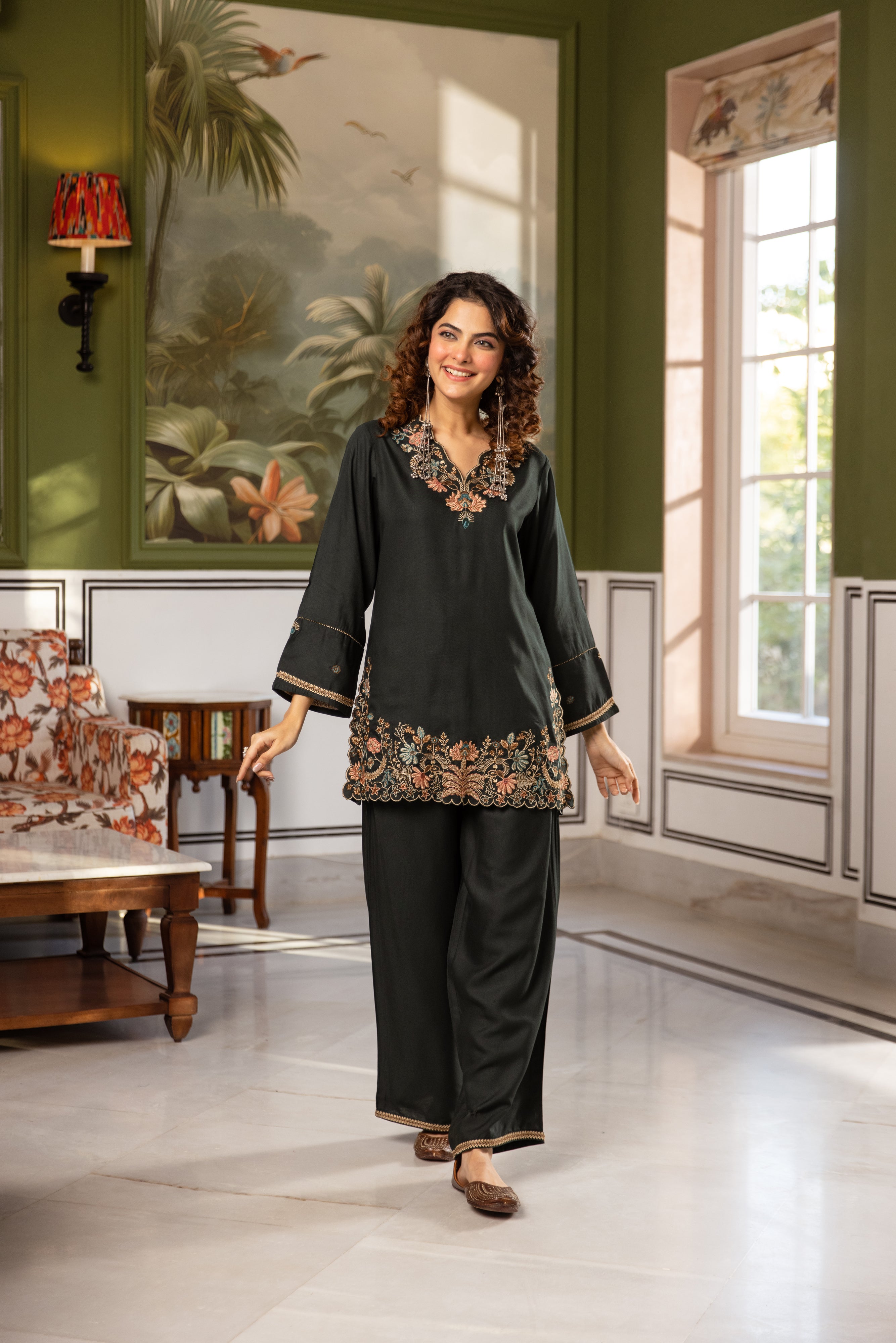 natural crepe  kaftan set {7847}