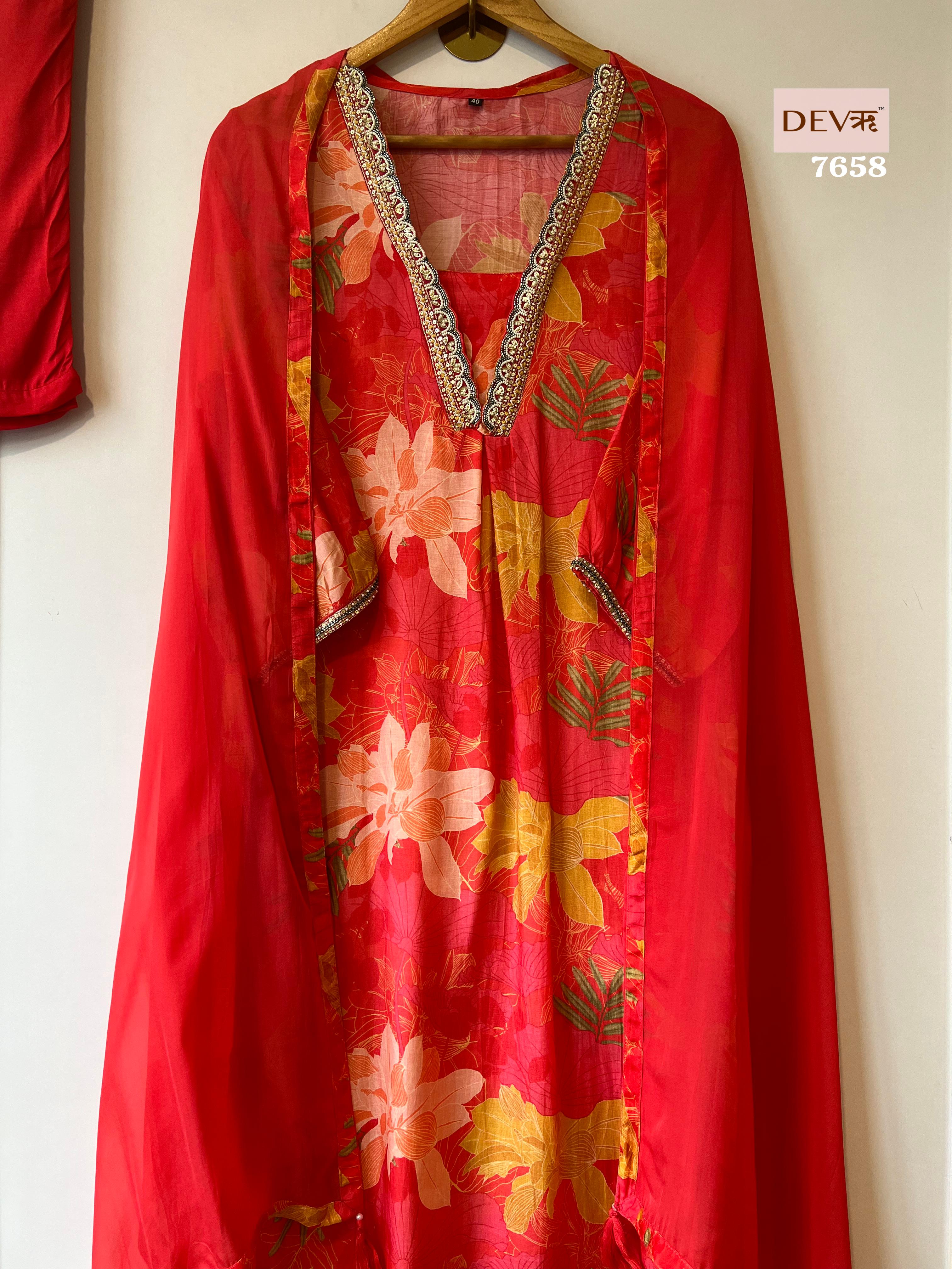 Chinon printed kaftan suit set {7917}