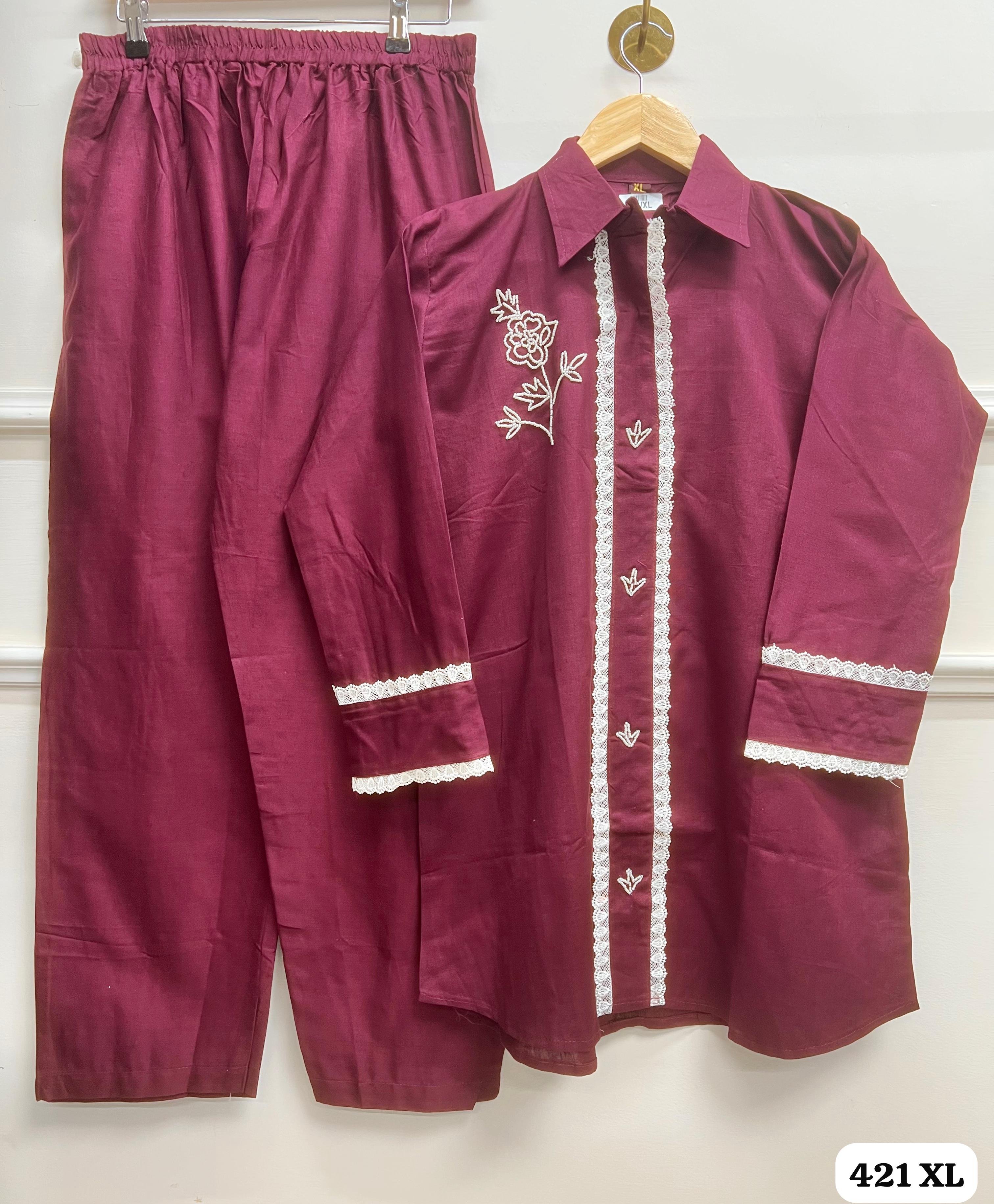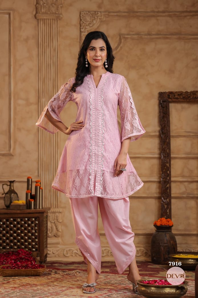 Pink V neckLINE Muslin Suit Set {7658}