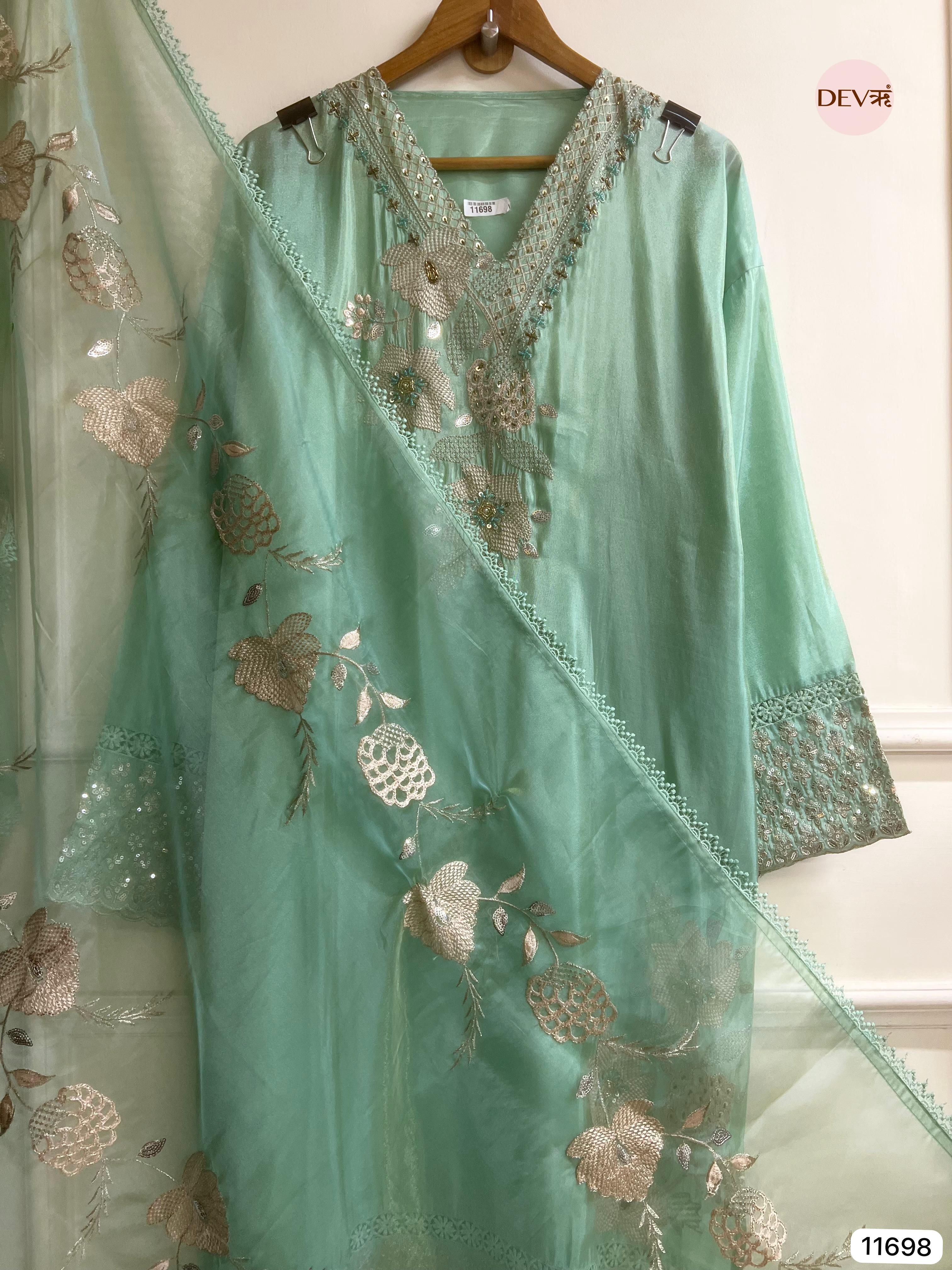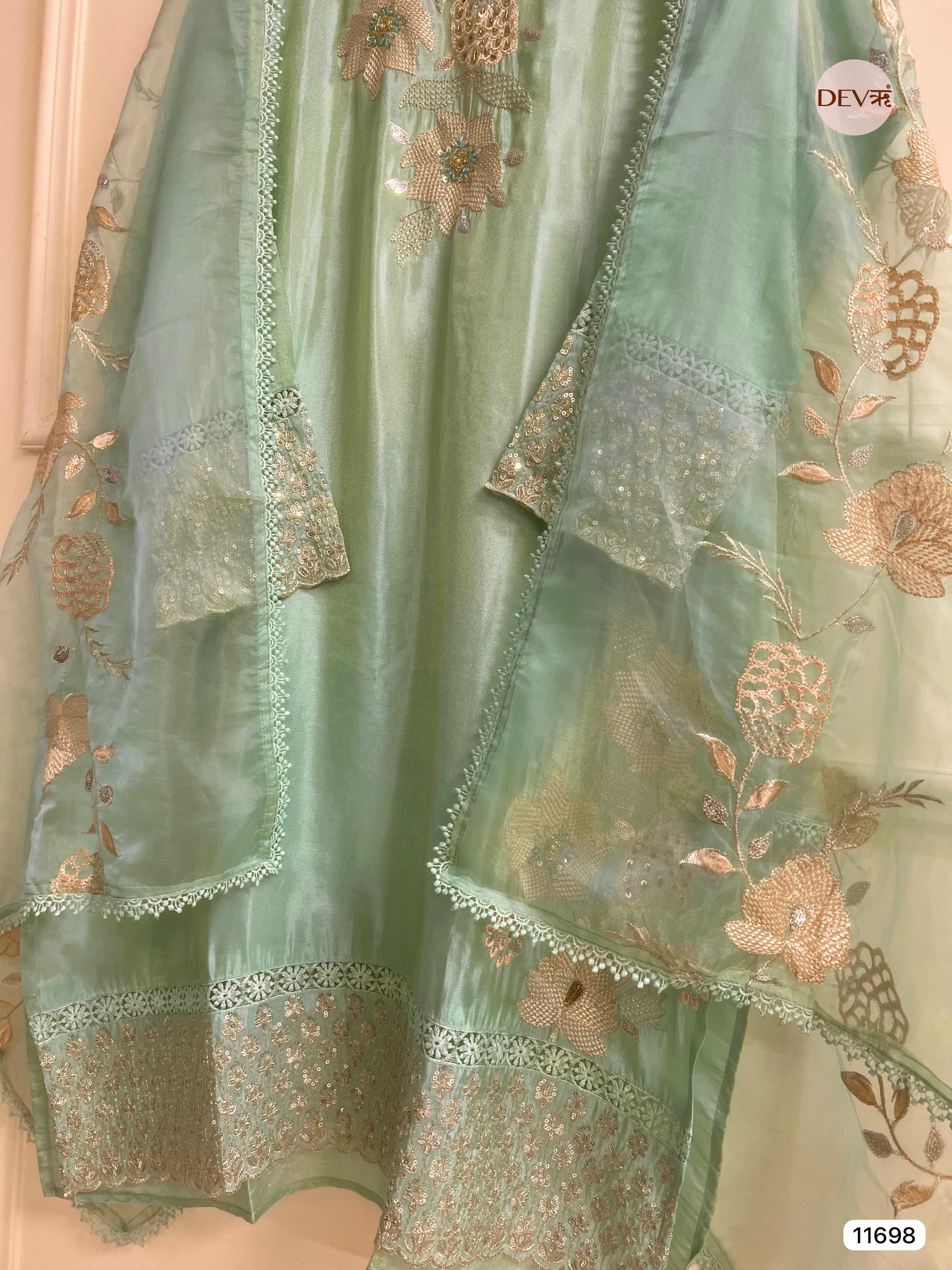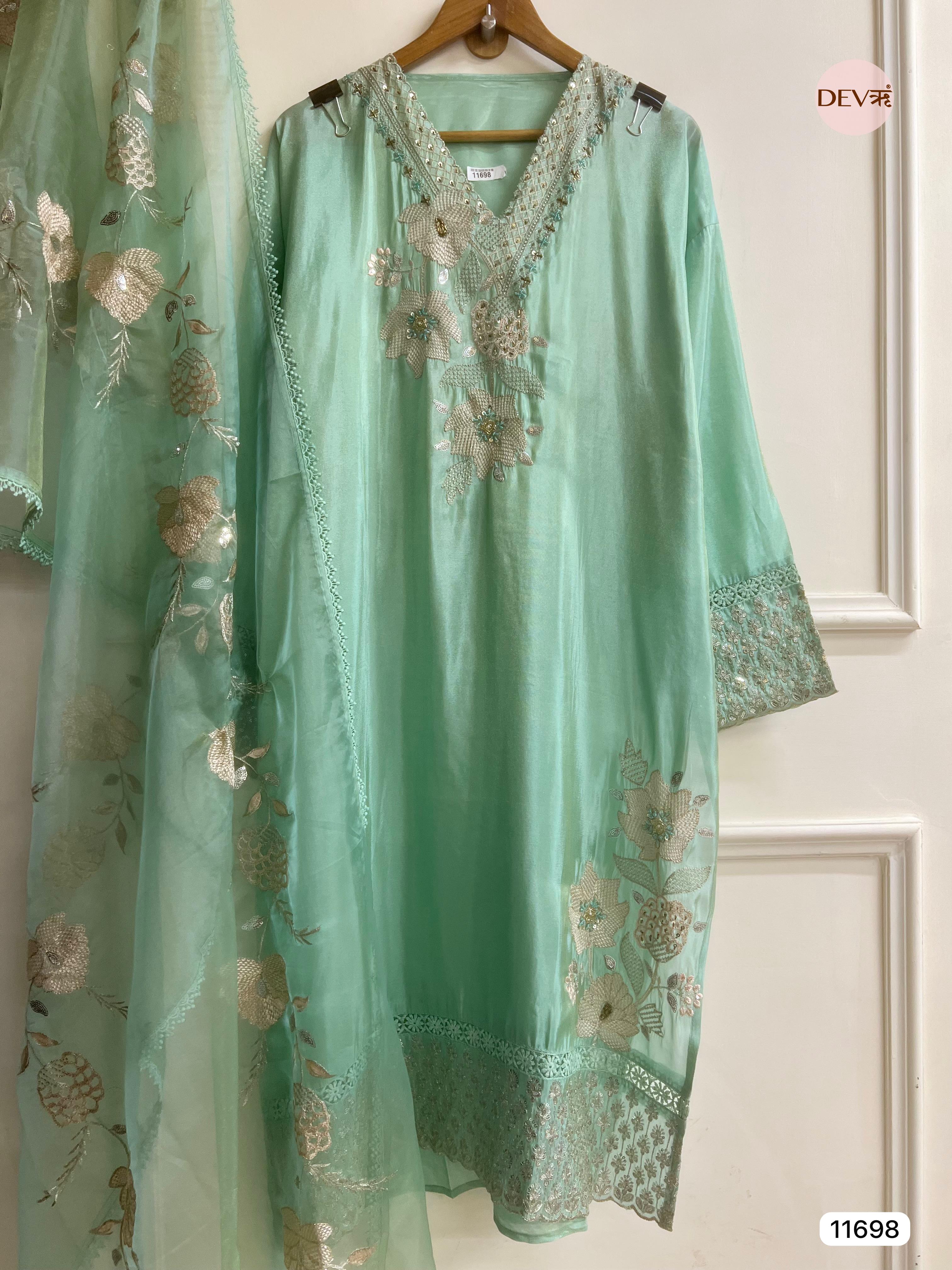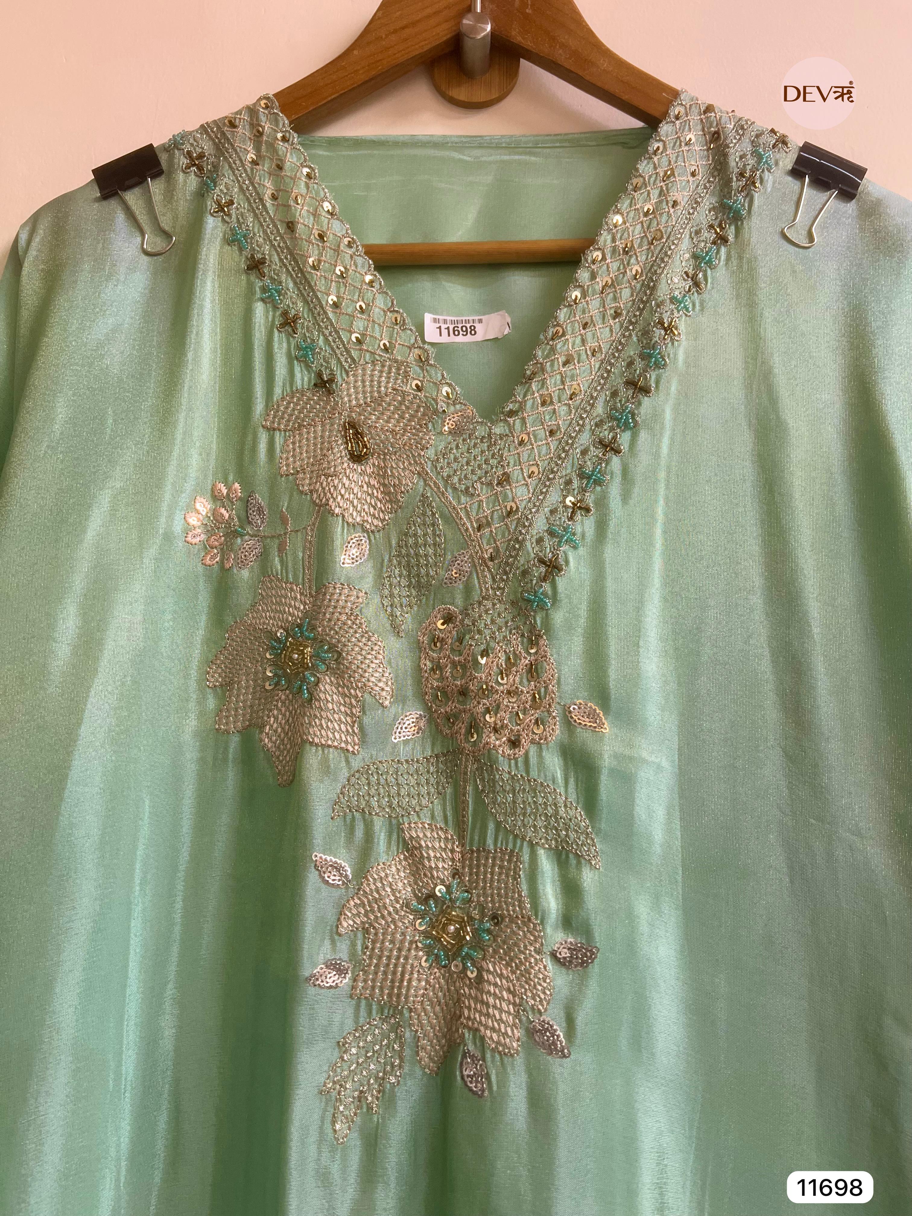 Shirt - Tissue shimmer silk semi stitched hand embroidered