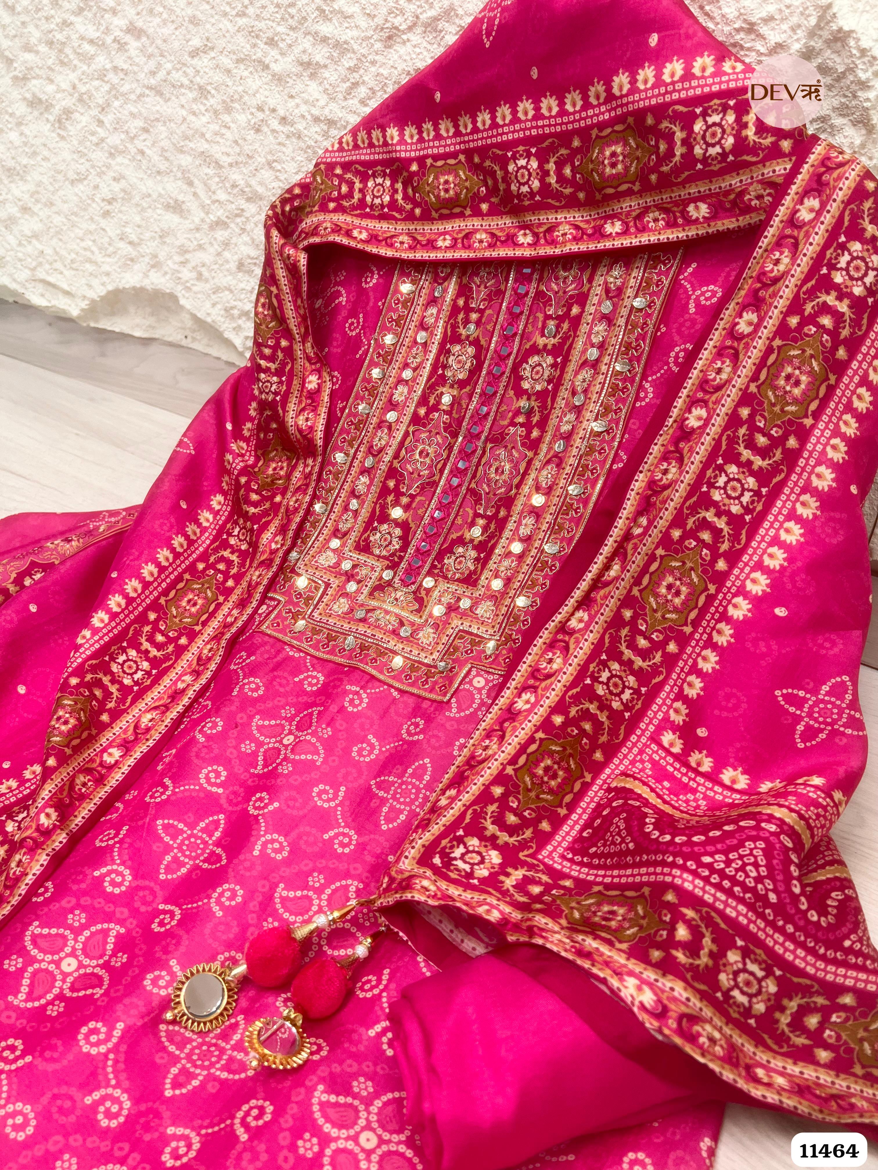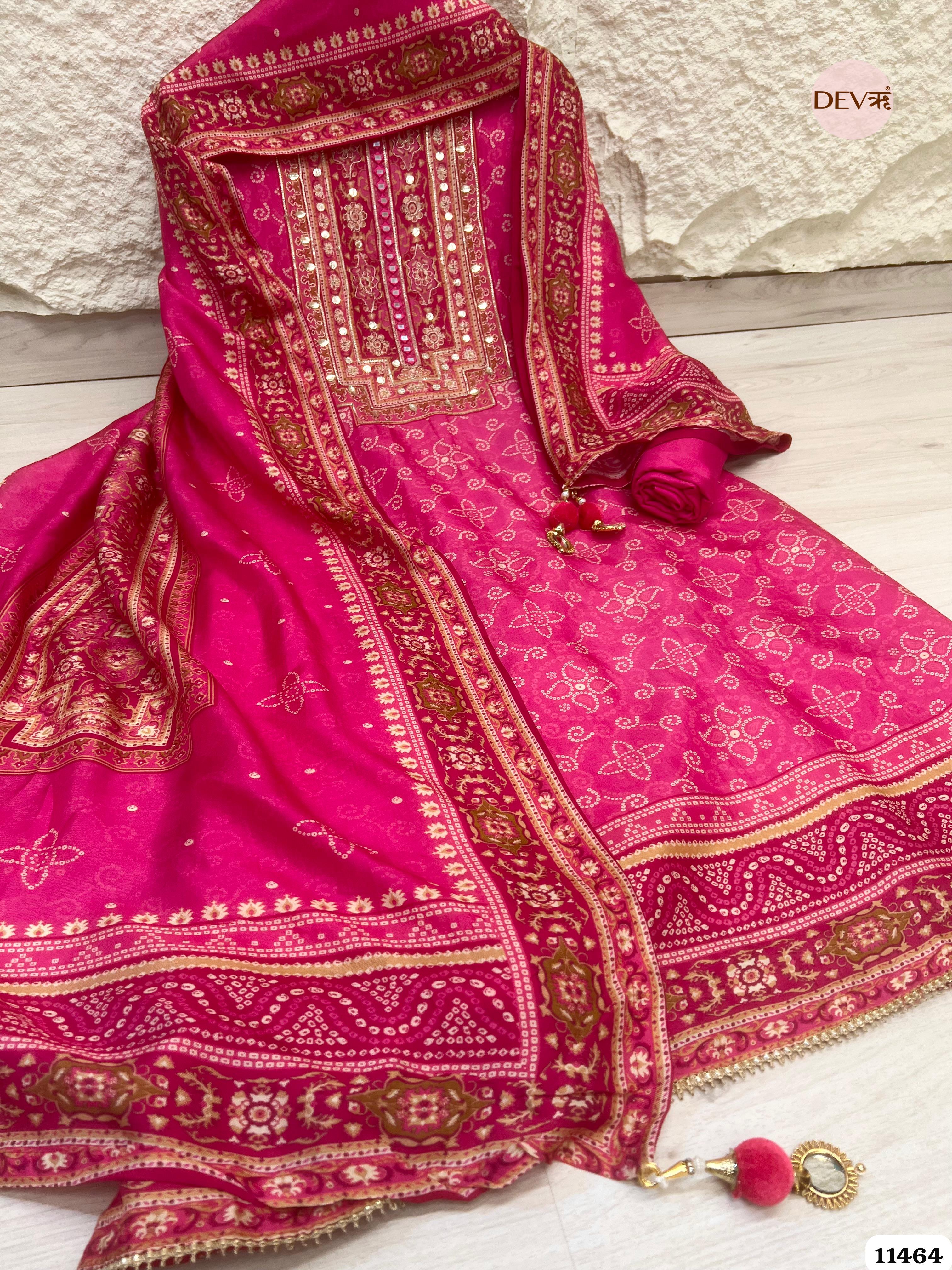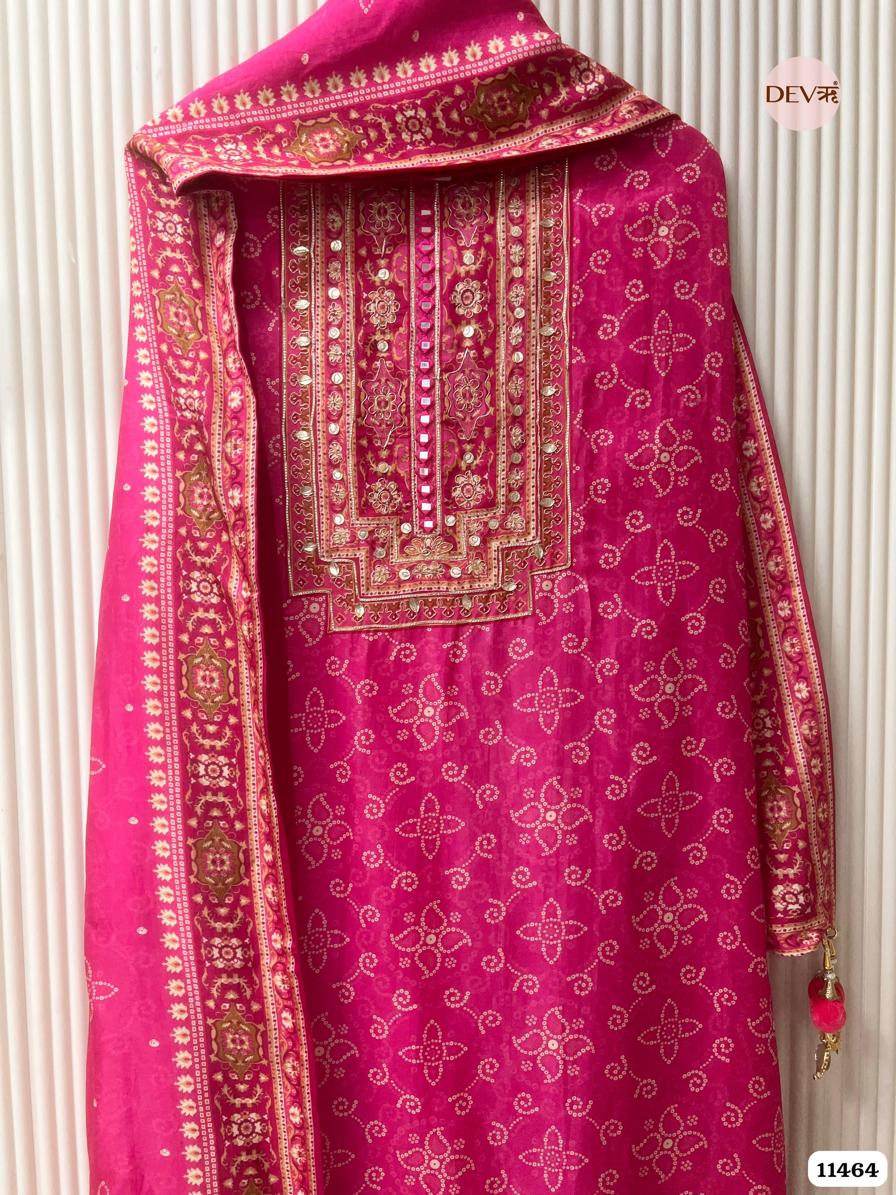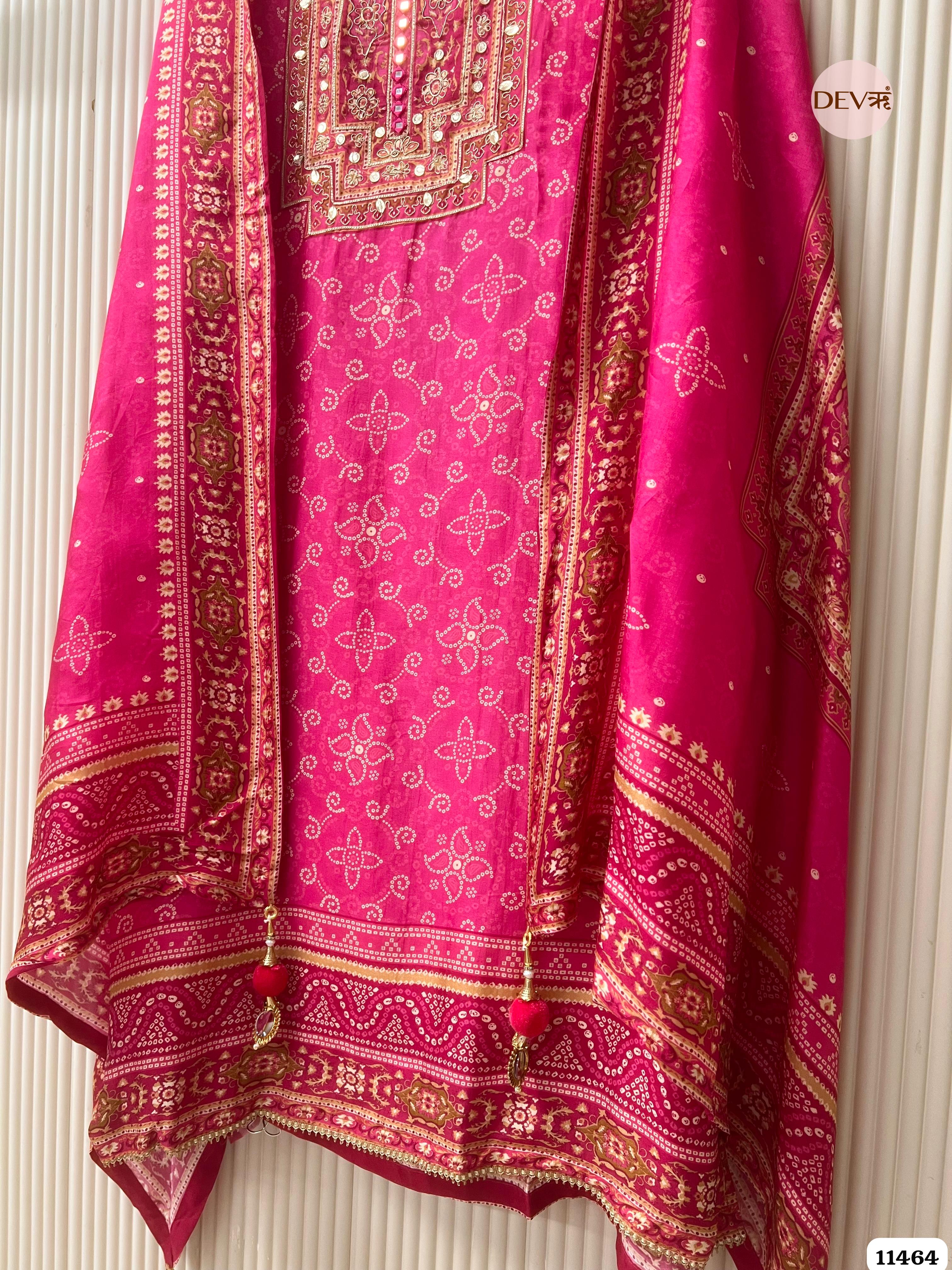 Pink Russian Silk Unstitched Printed Hand Embroidered -Set Of 3