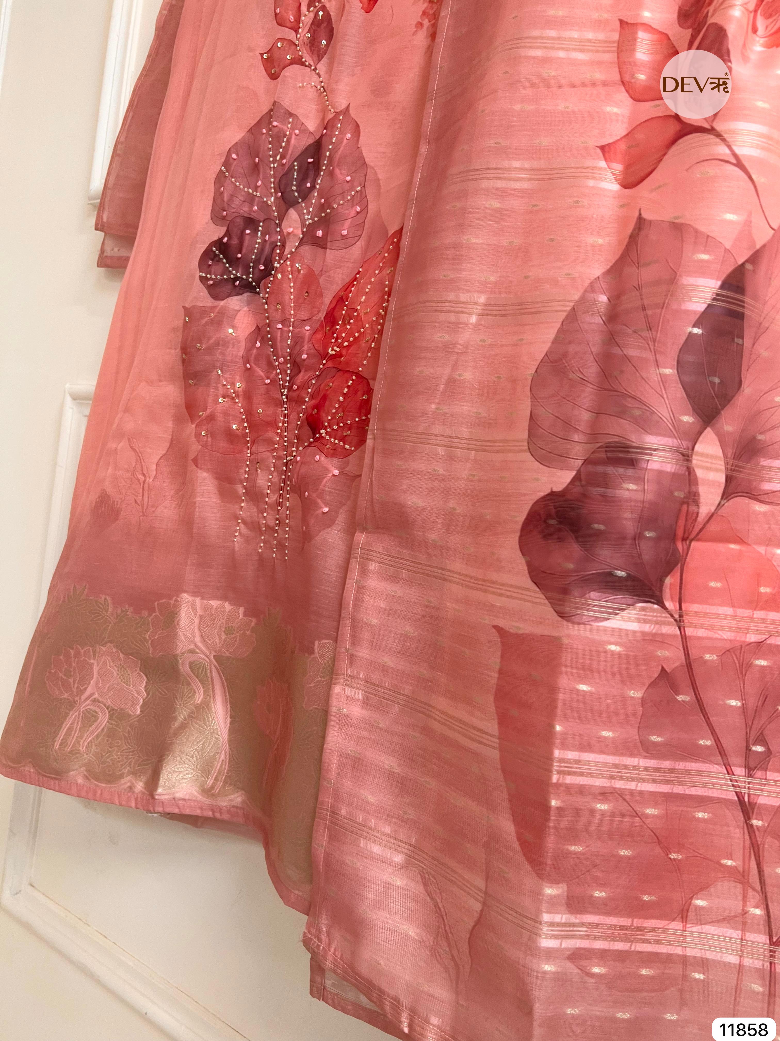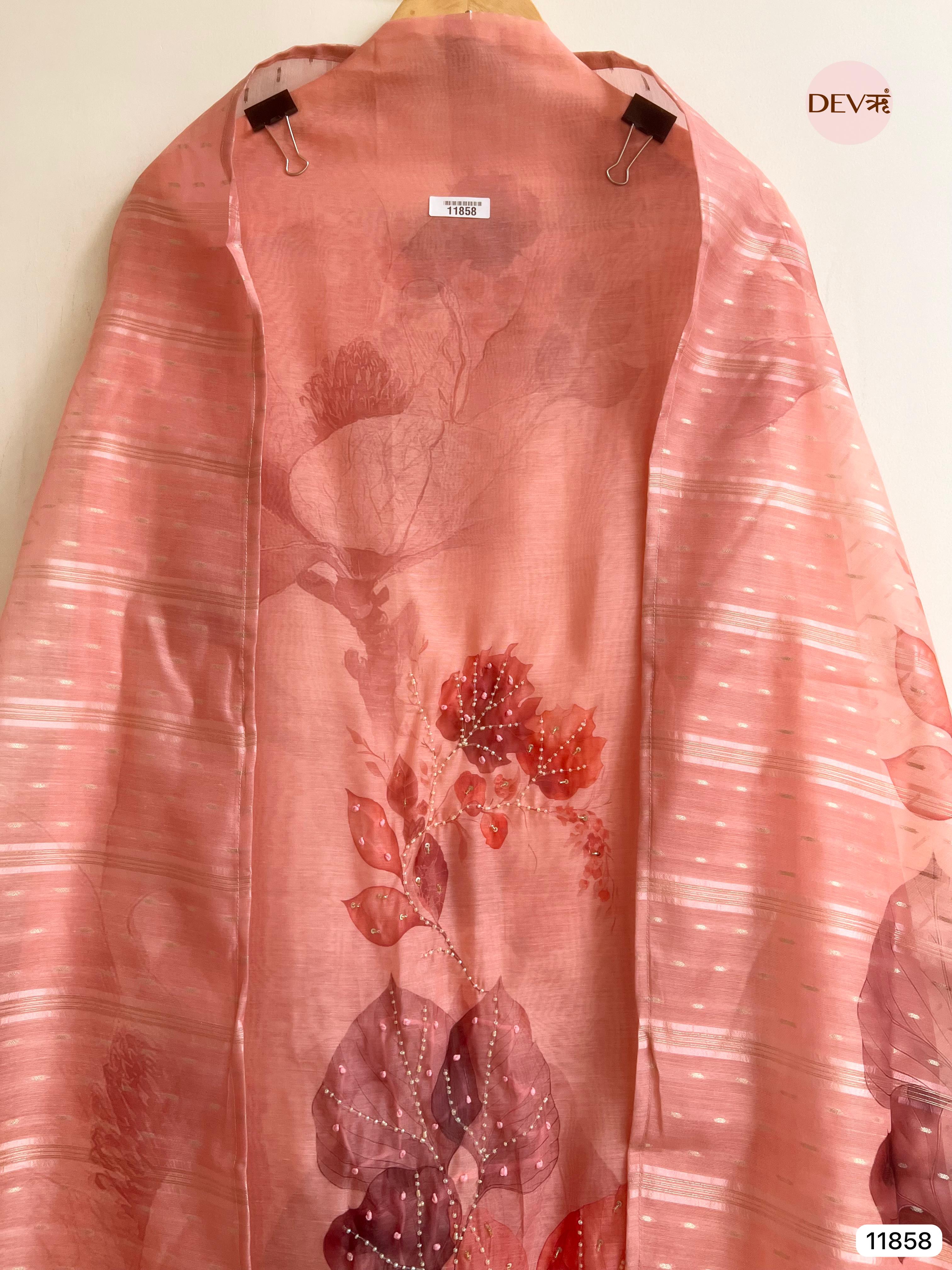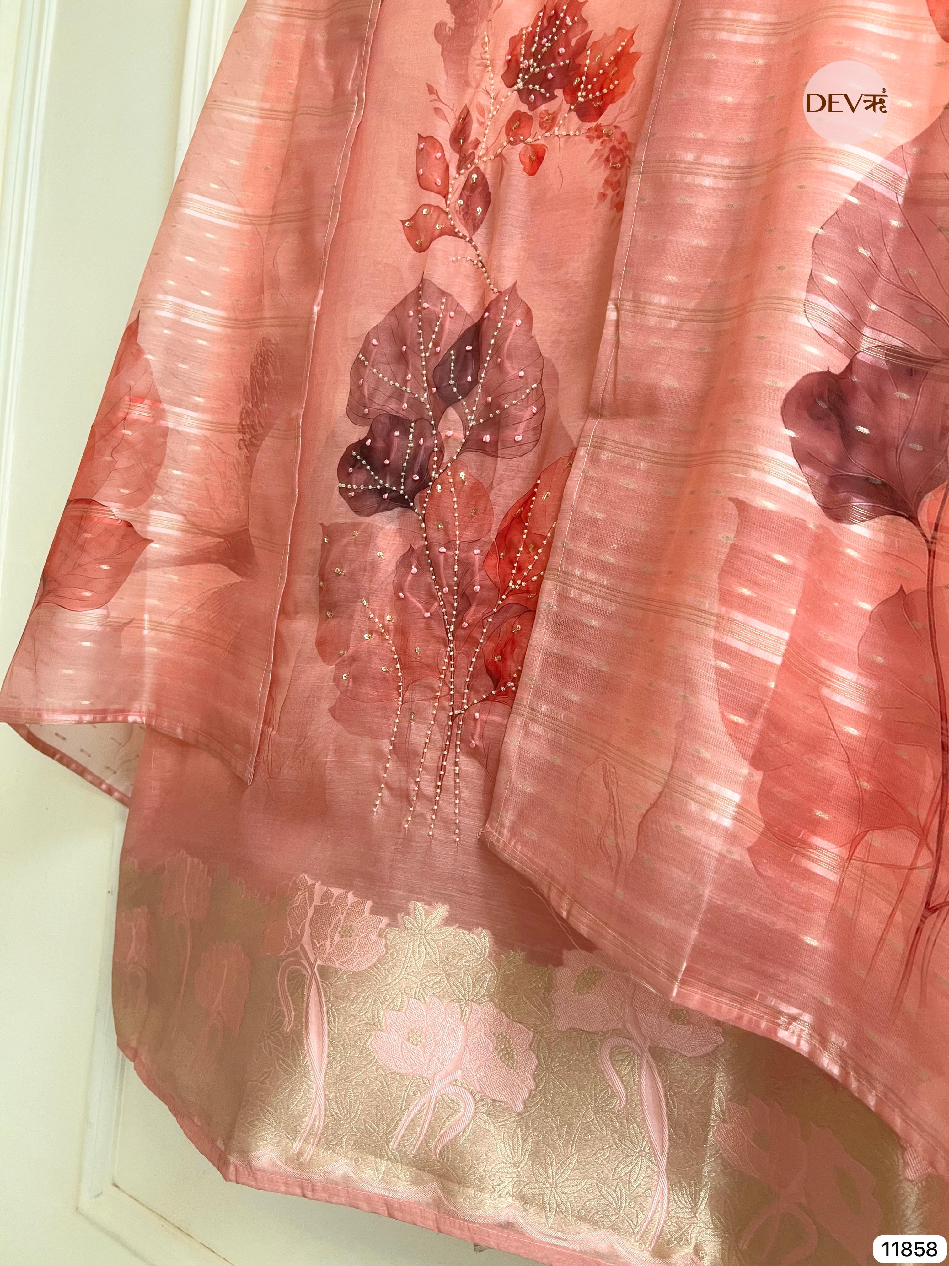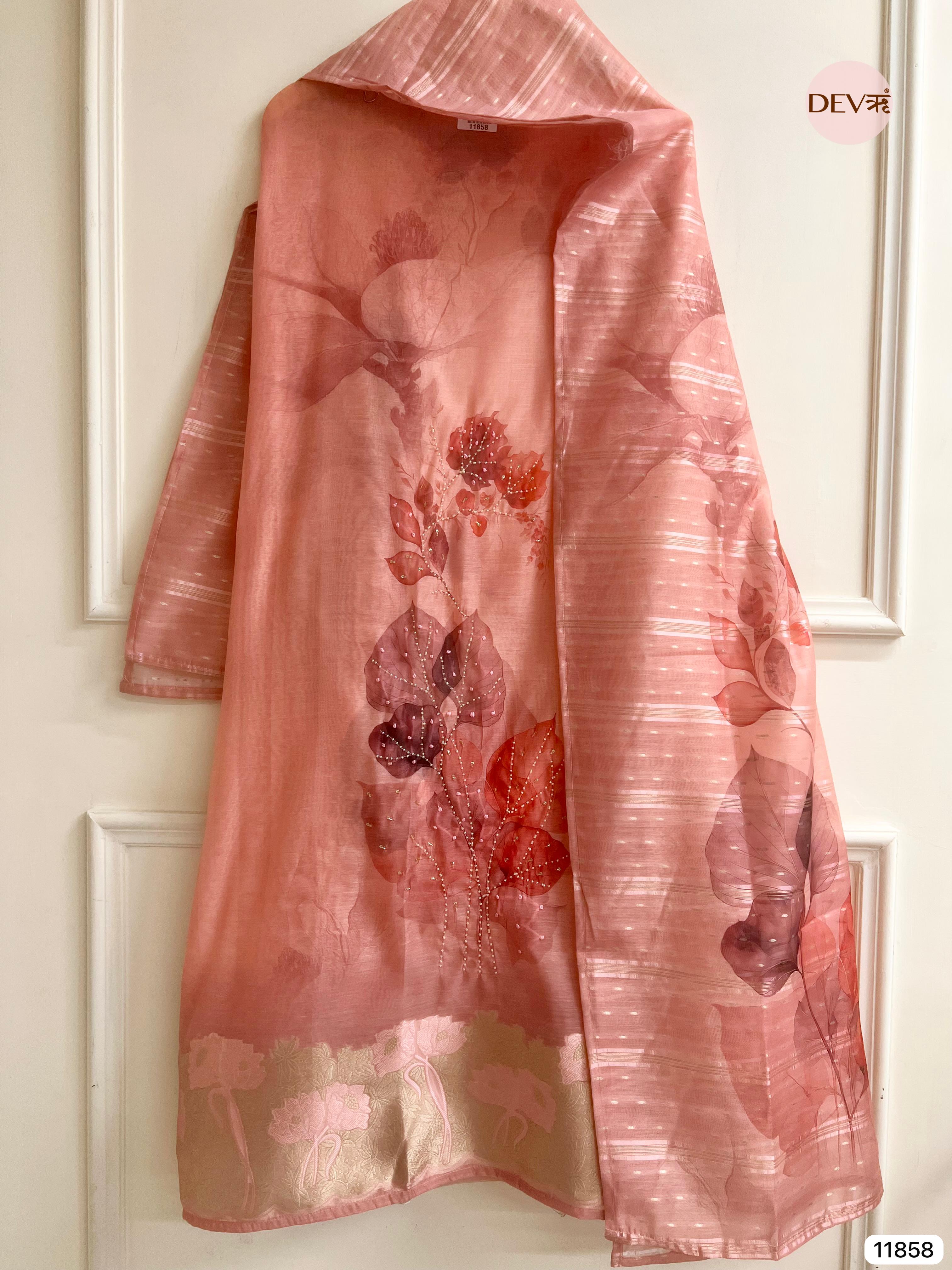 Pink Jamdani Silk Unstitched Printed Woven Hand Embroidered -Set Of 3