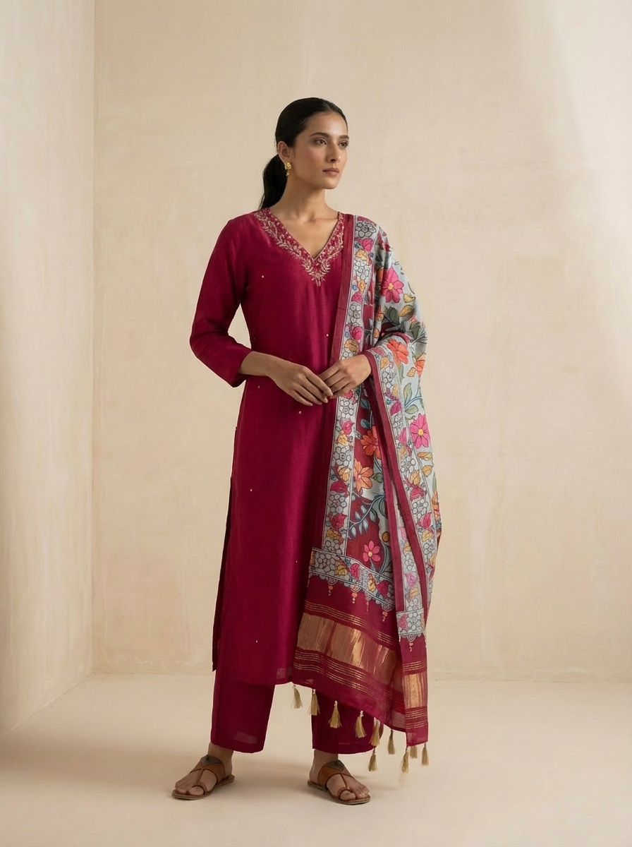 Crimson Bloom Crepe 3-Piece Set {1039}