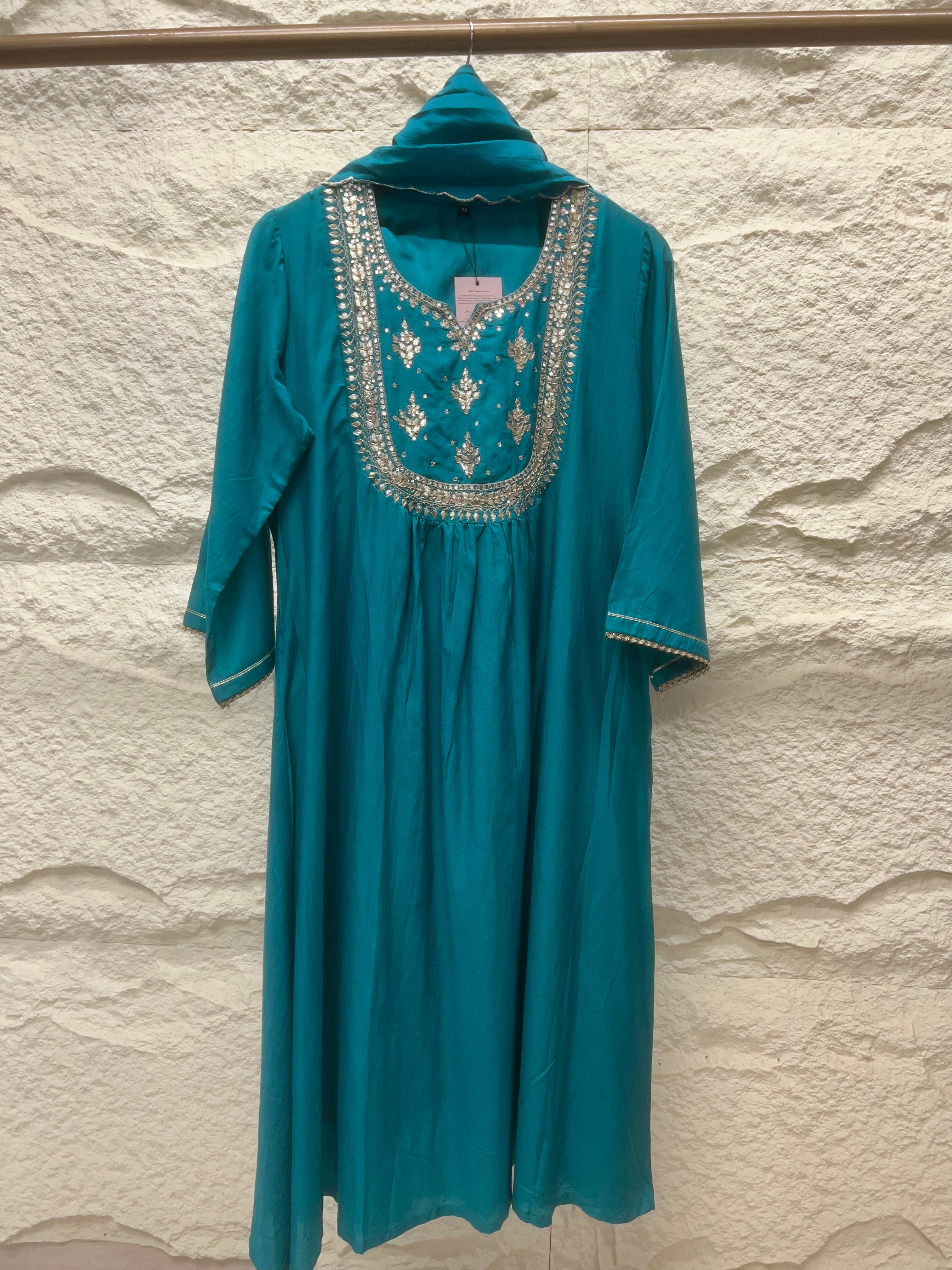 • Kurta: Mul chanderi with embroidery | Approx. 47"