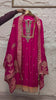 An ethereal Rani Pink organza silk ensemble featuring delicate floral embroidery and shimmering sequin highlights. The shirt is adorned with intricate patterns and a scalloped hemline, perfectly paired with a matching organza dupatta that boasts elegant floral borders and lace detailing for a truly graceful ethnic appeal.