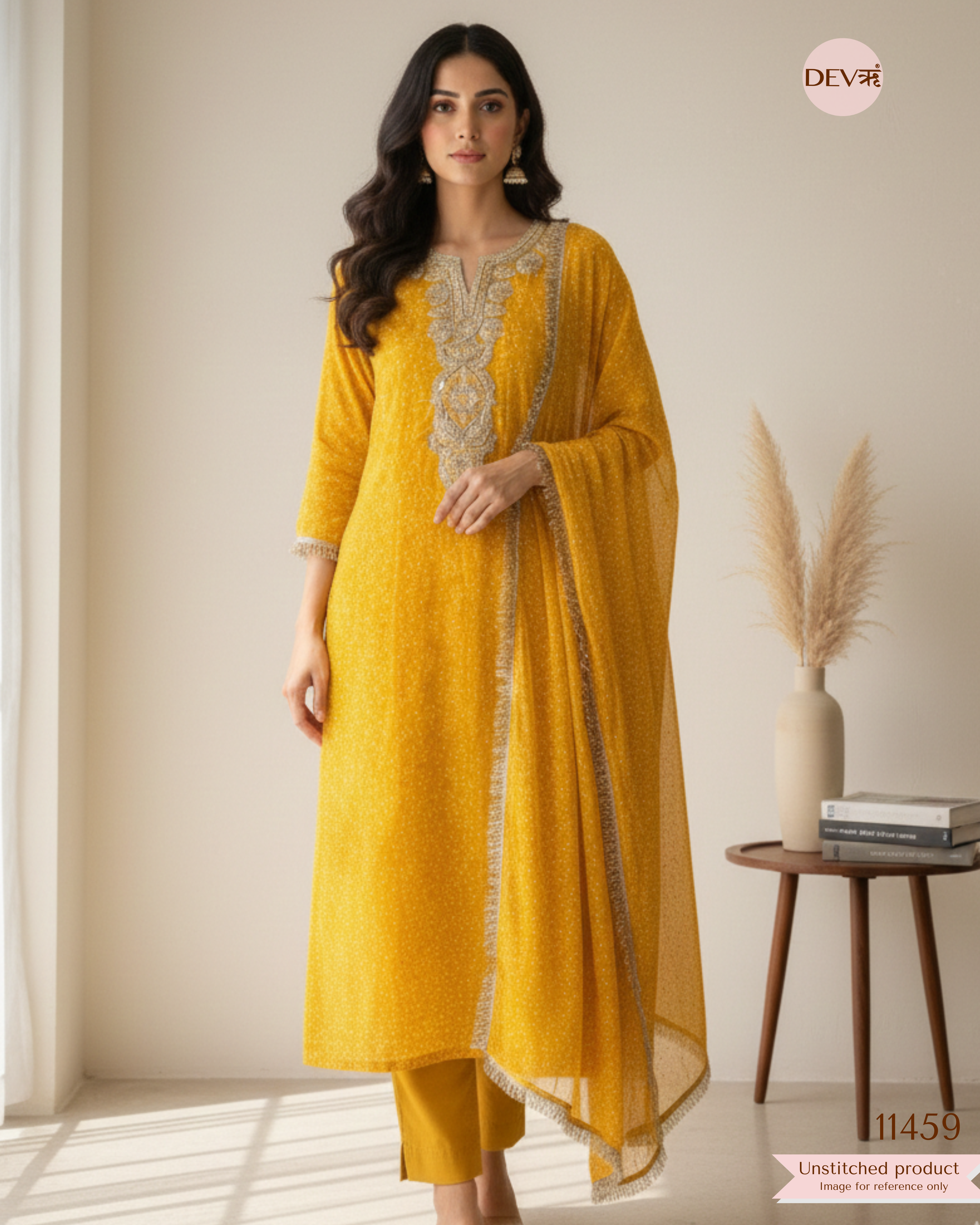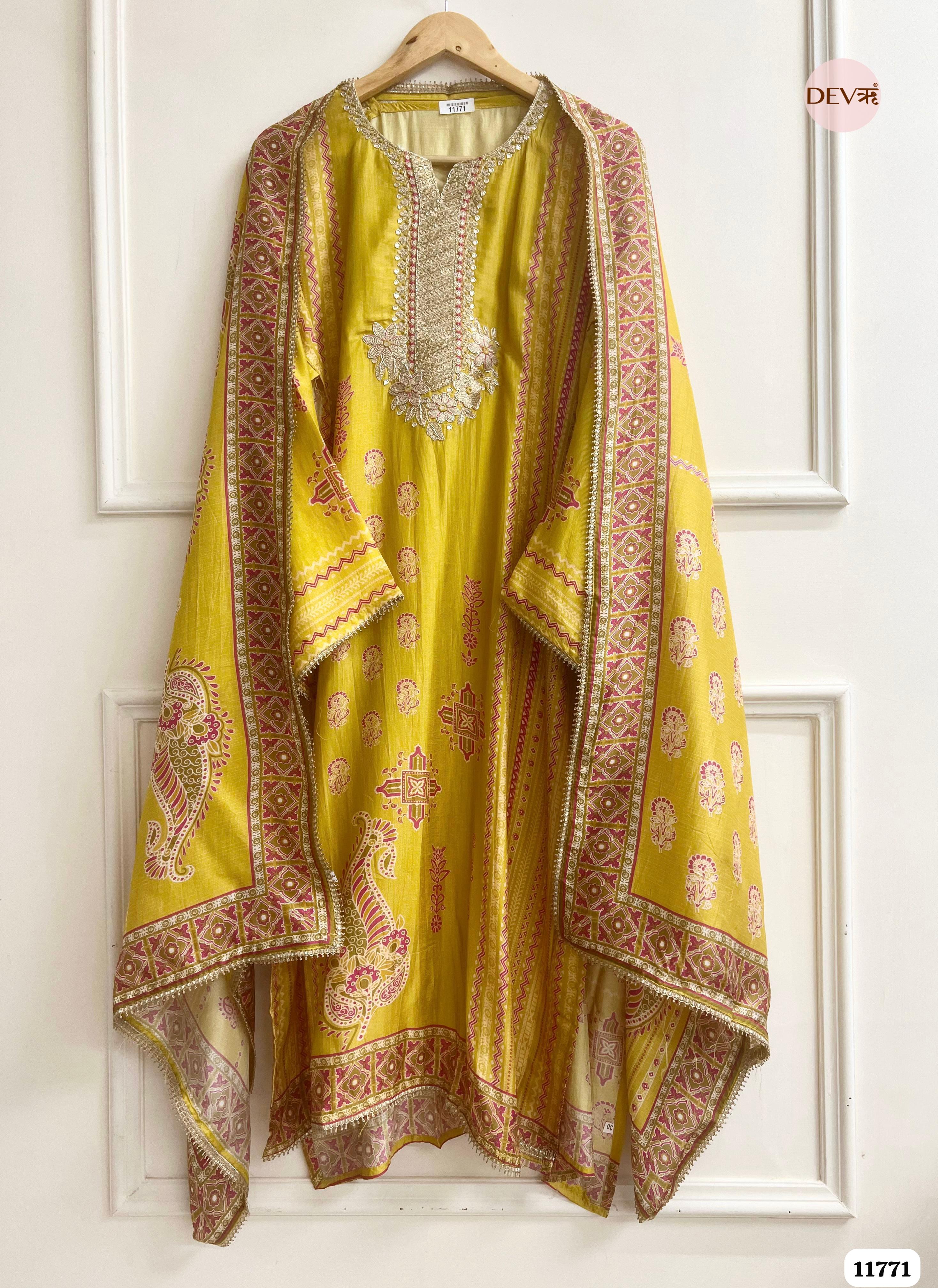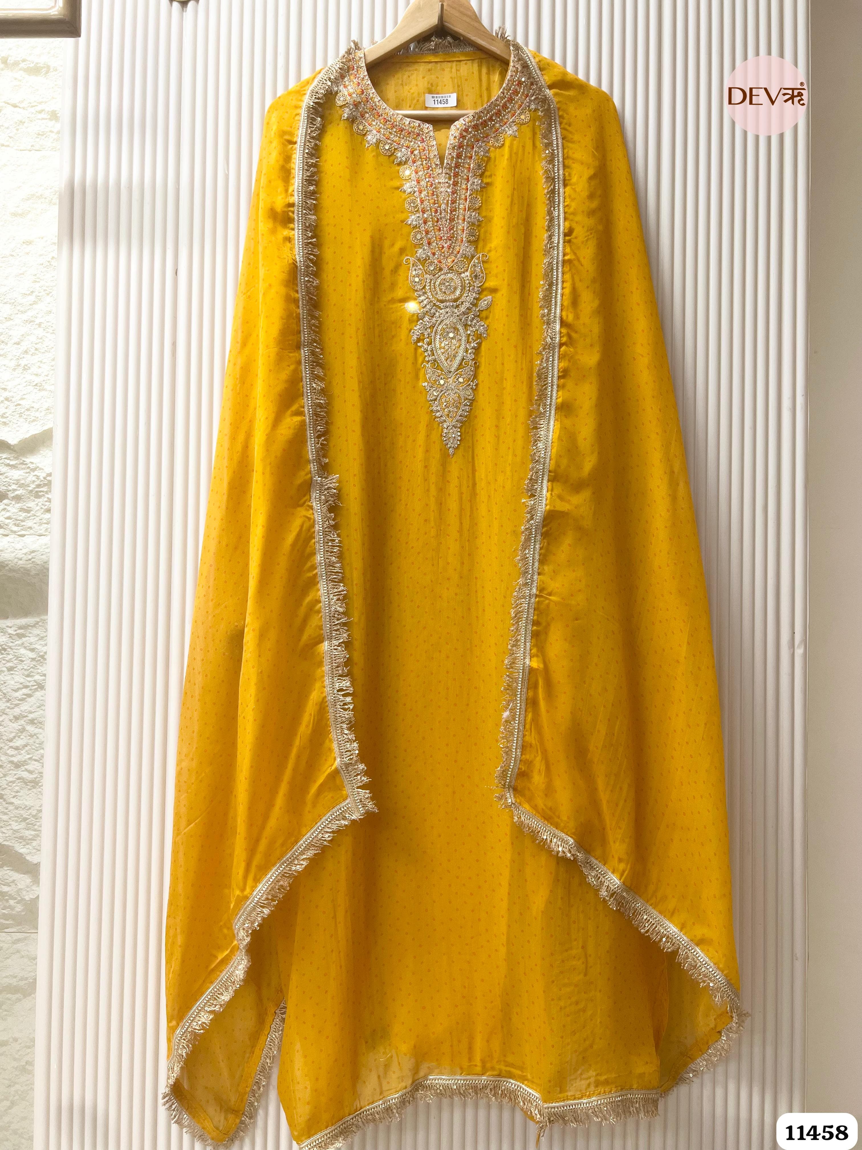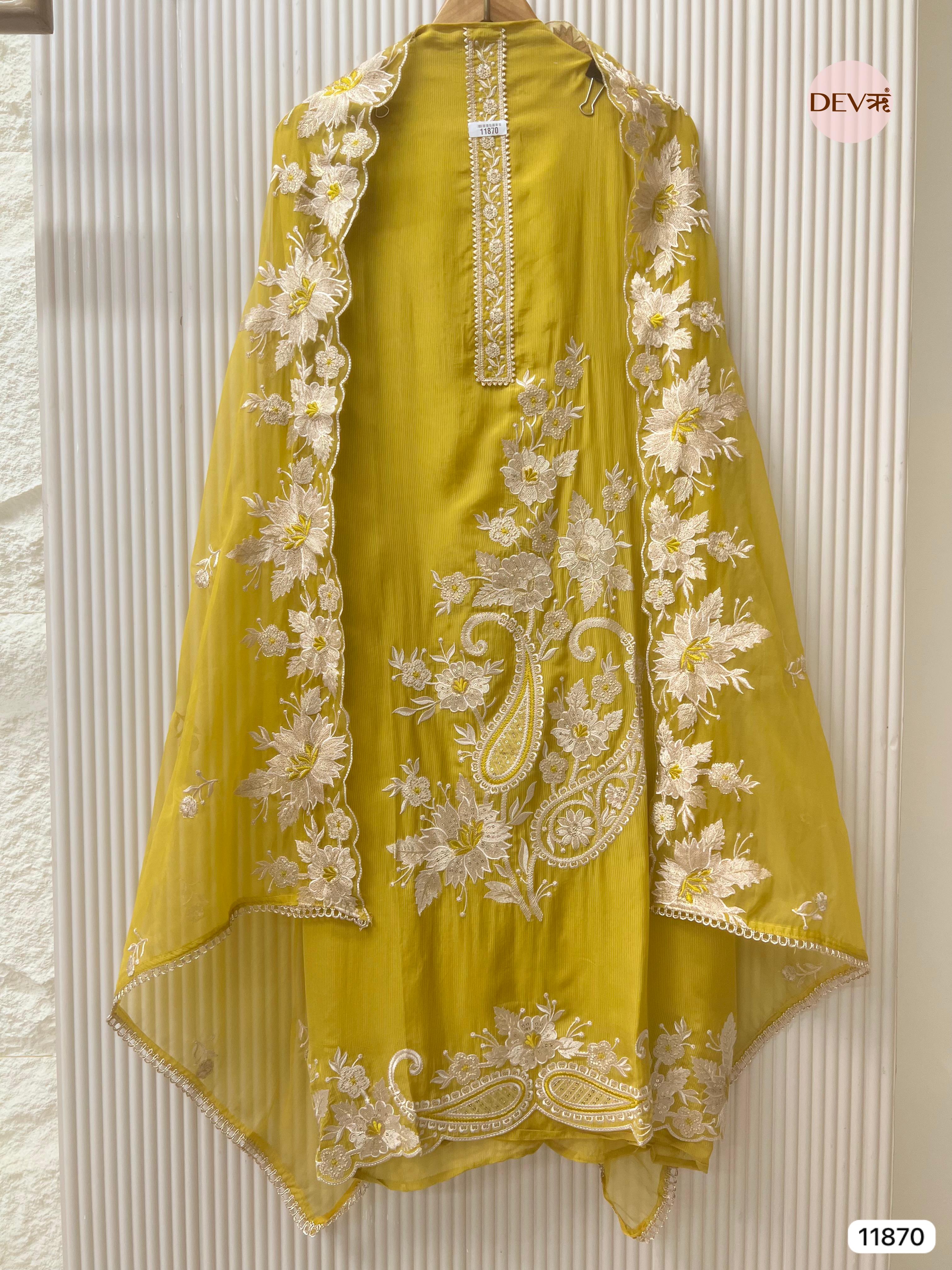 Yellow Silk Stiched Embroidered -Set Of 3 {1031}