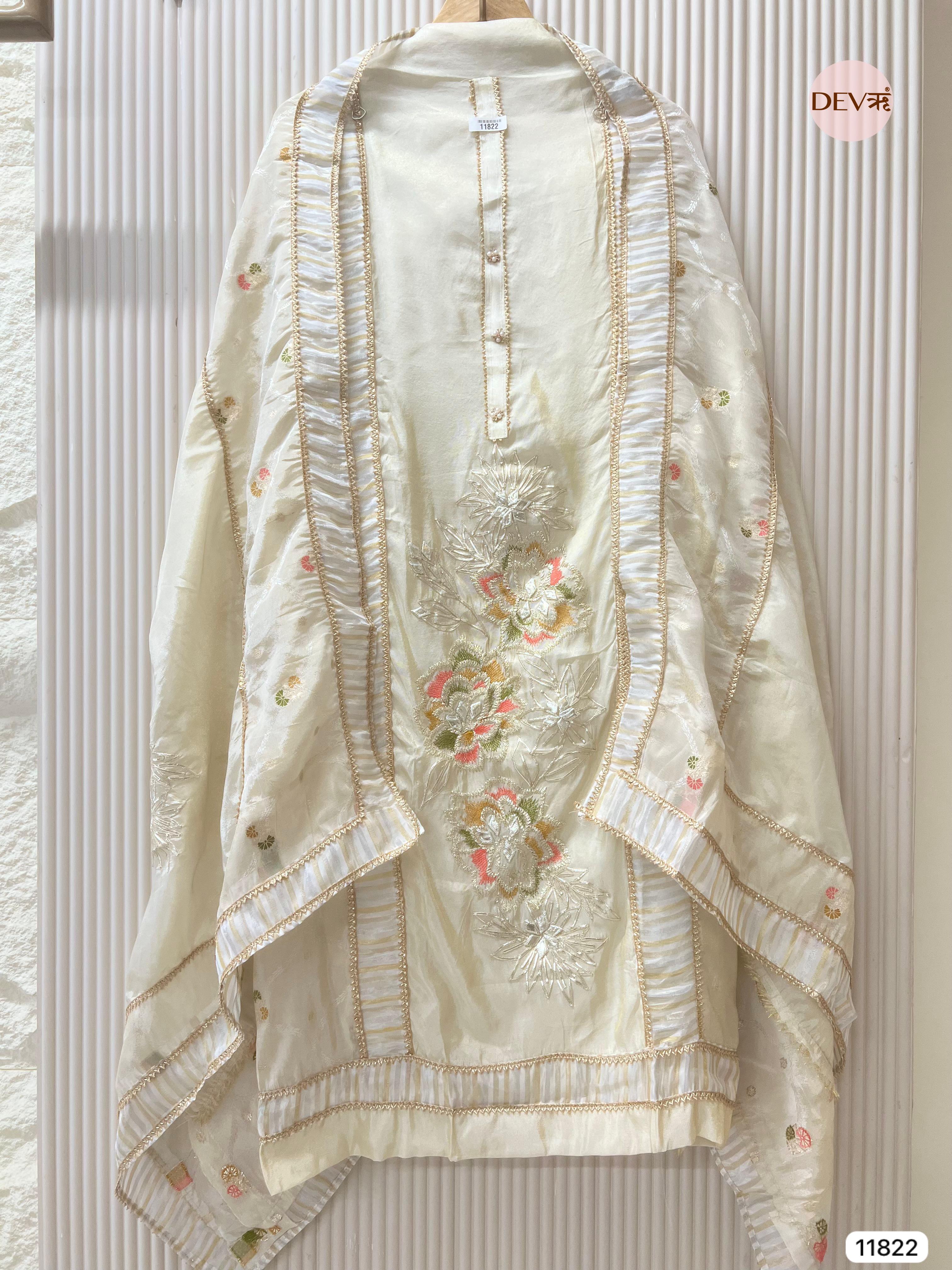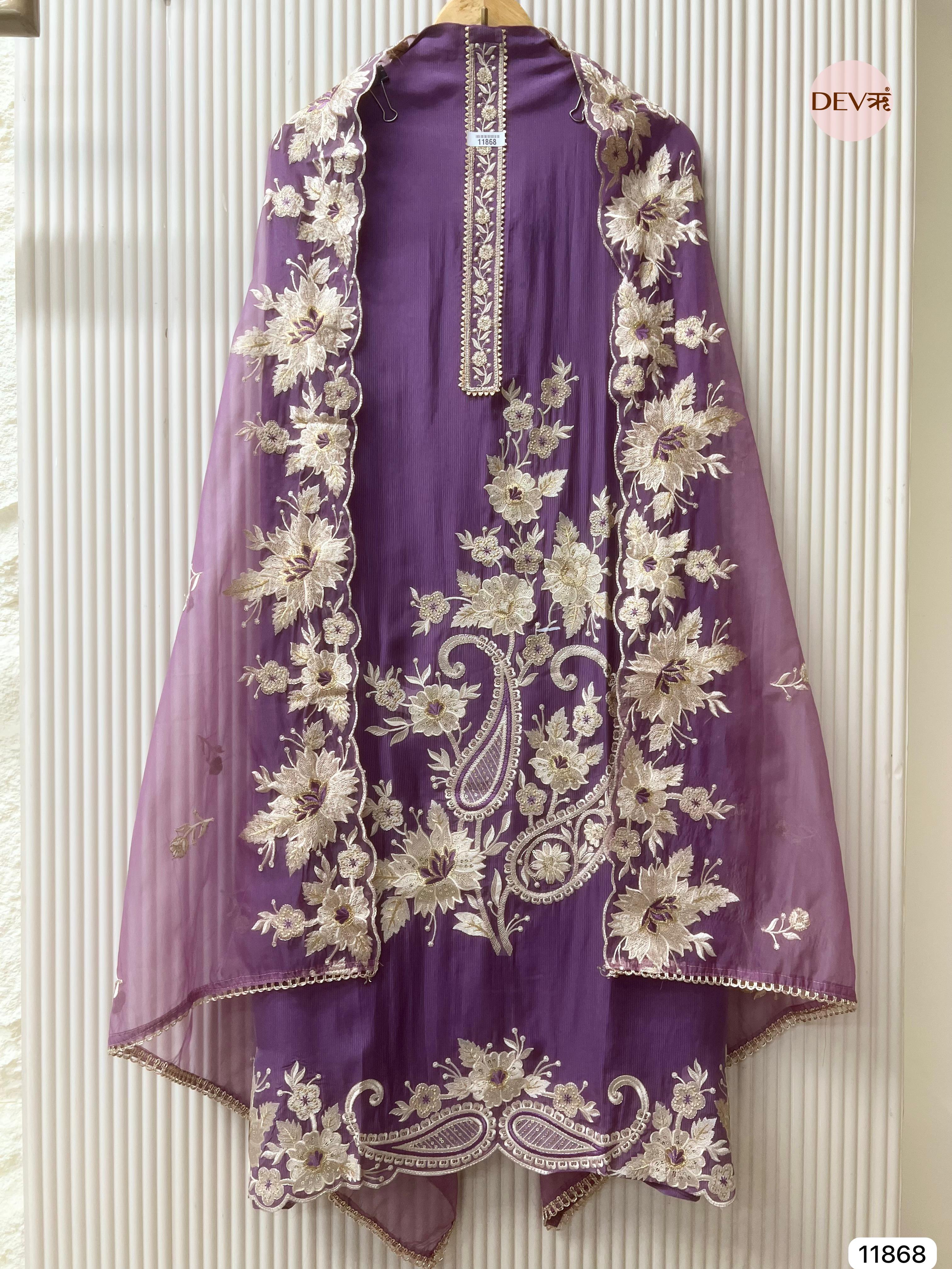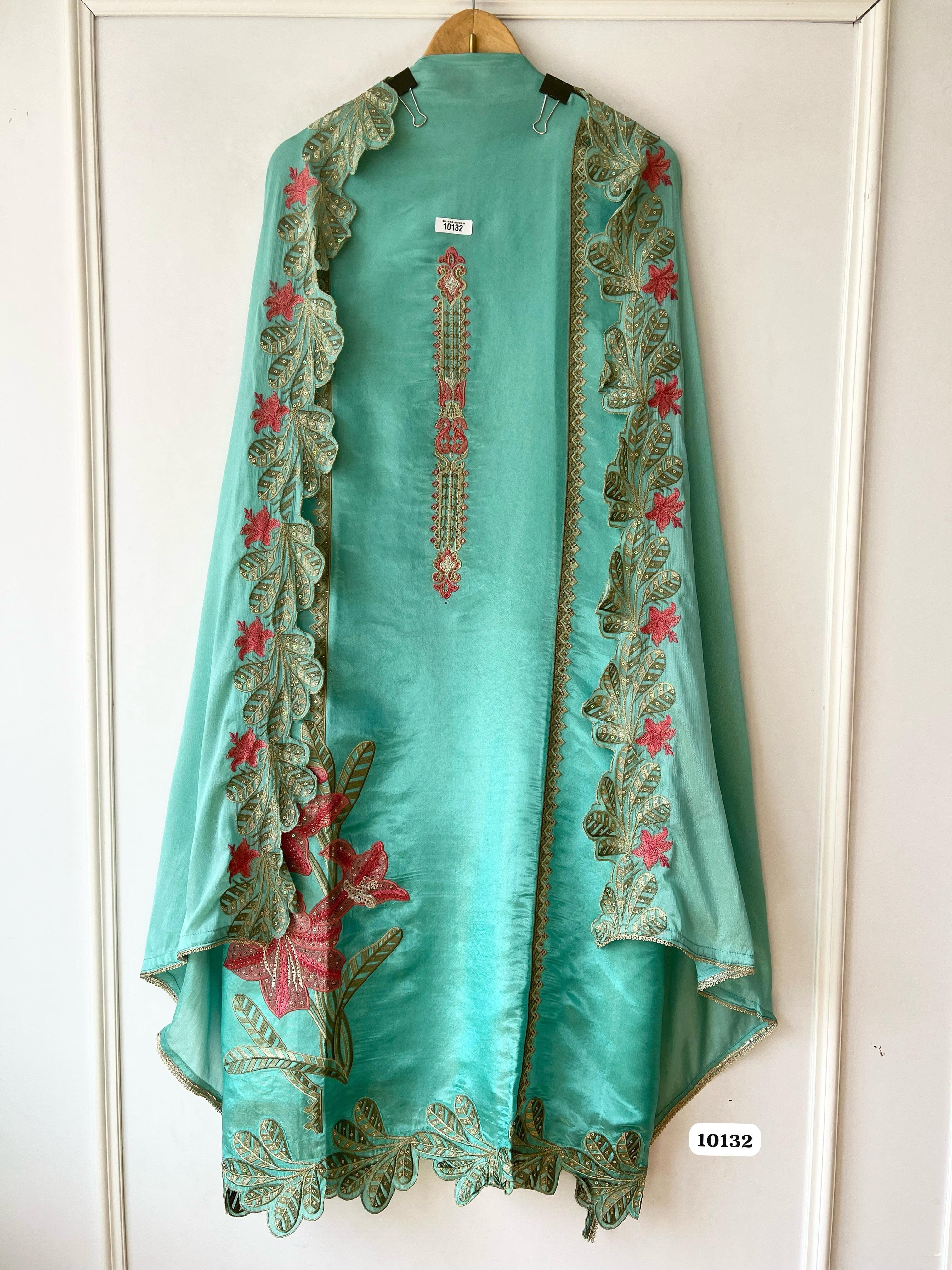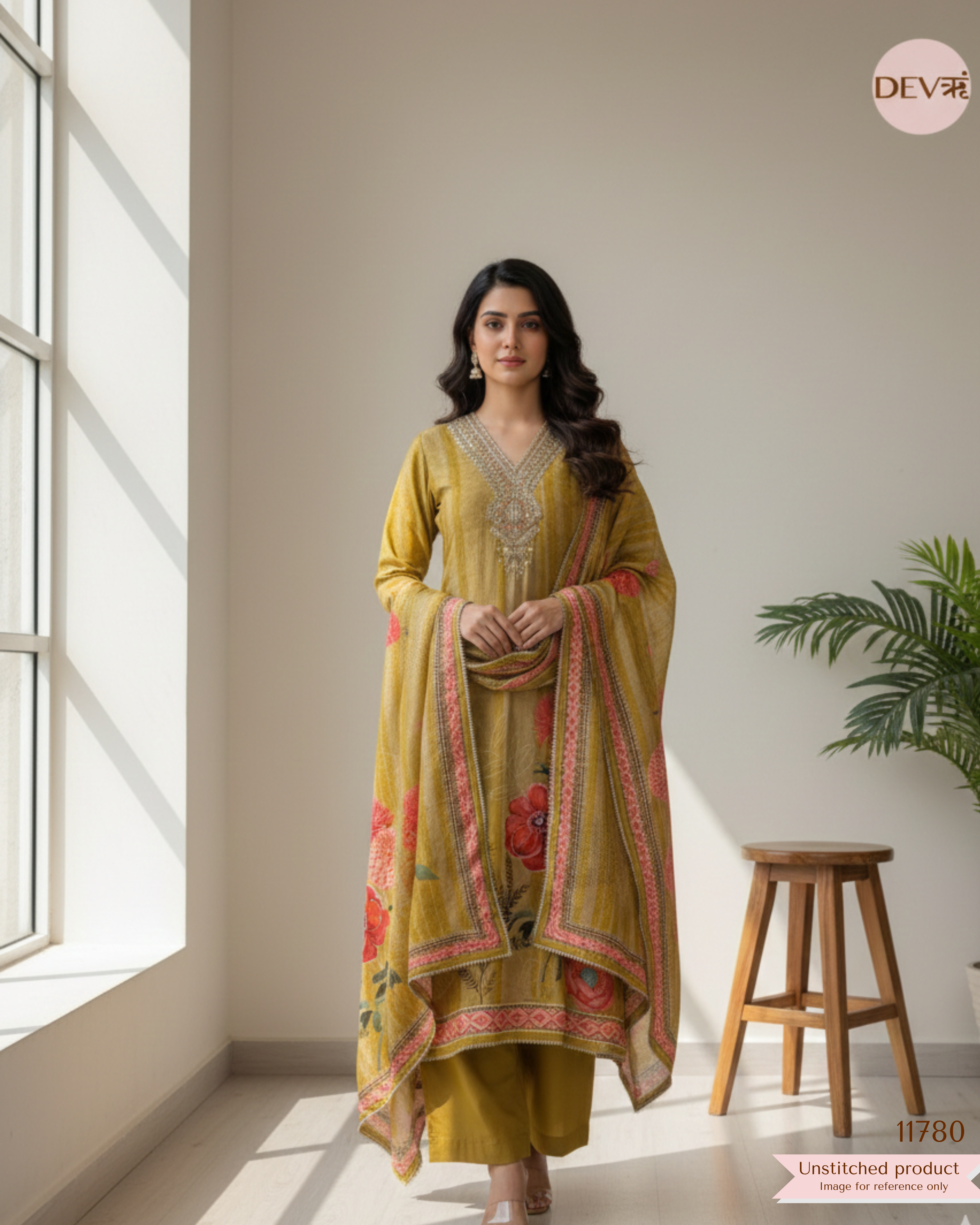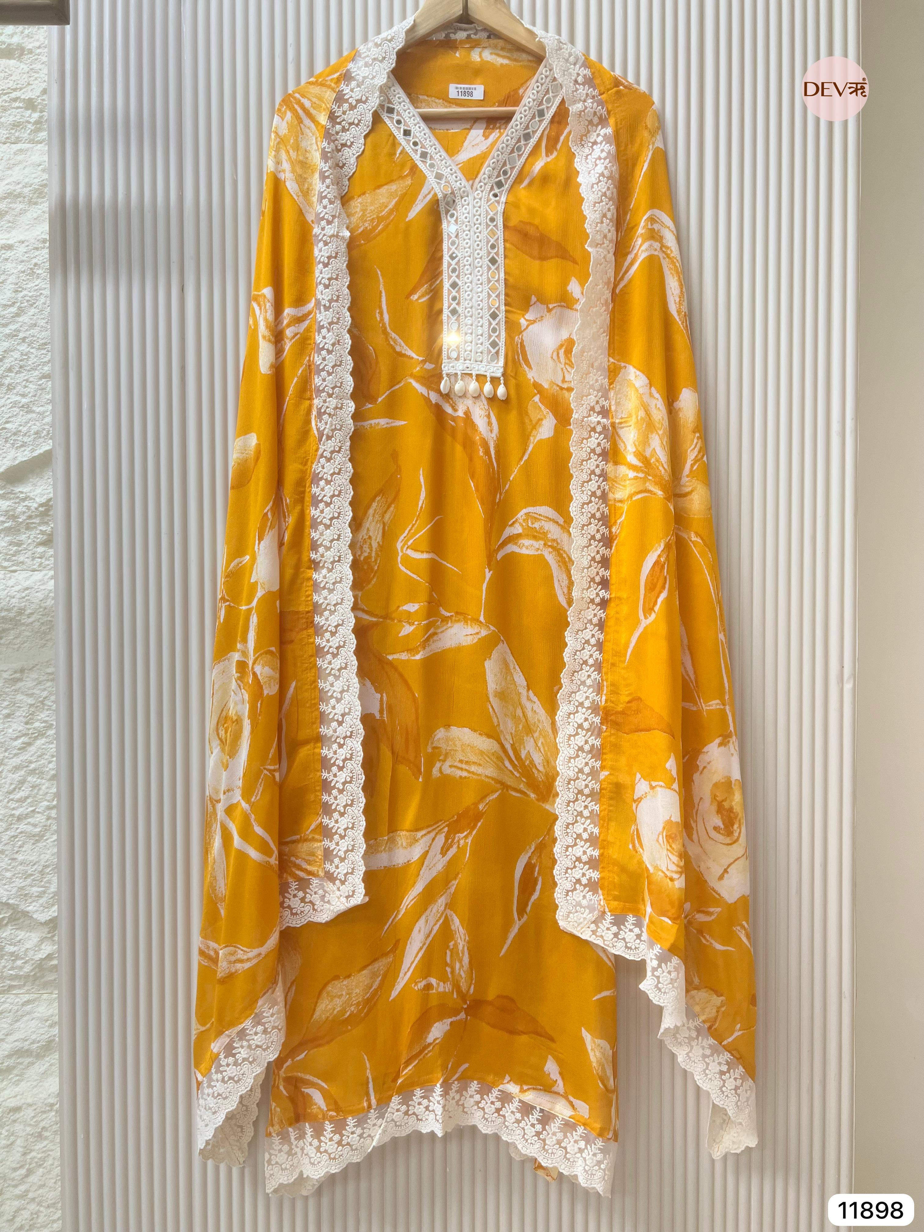 Yellow Silk Stiched Embroidered -Set Of 3 {1031}