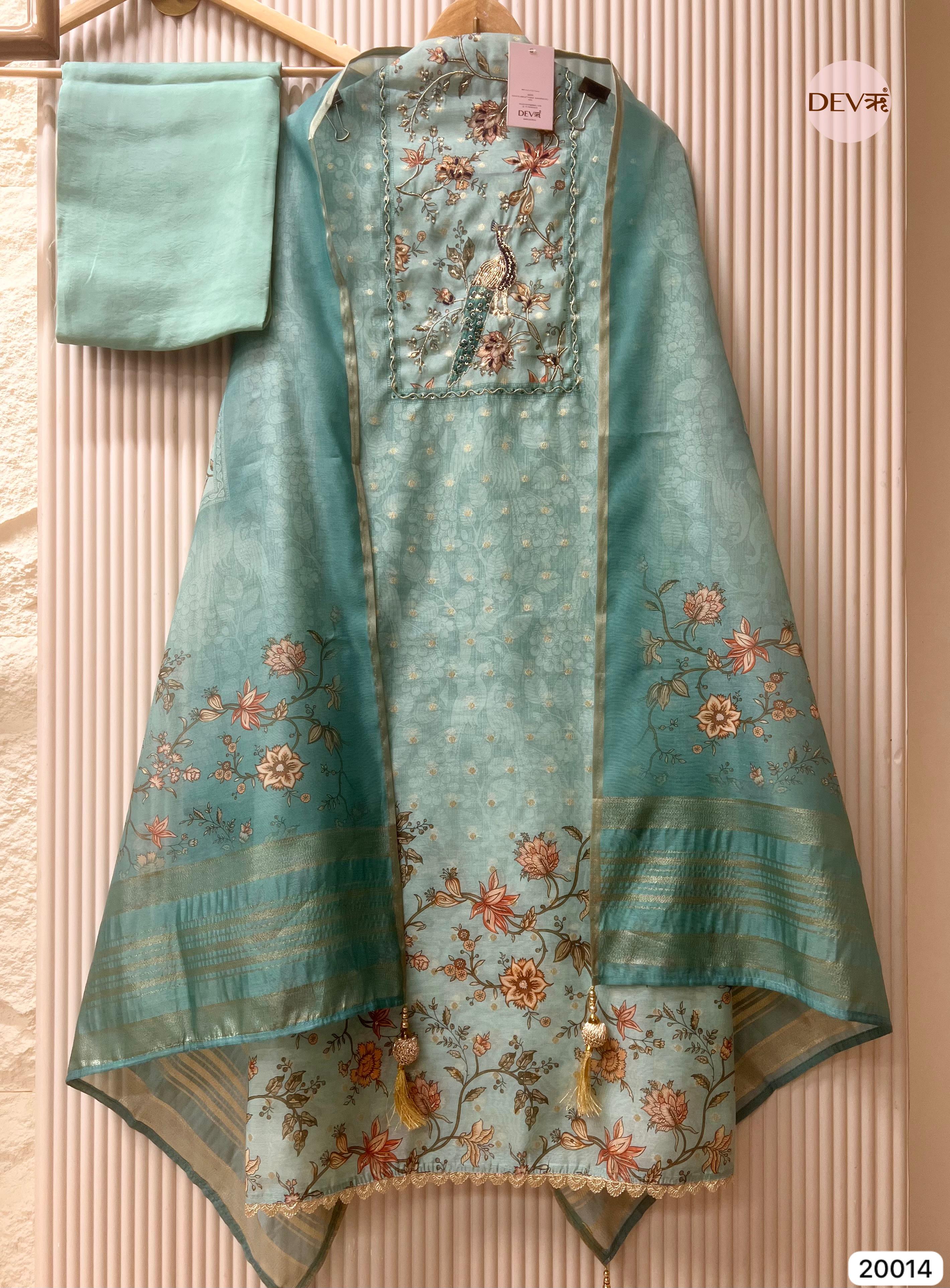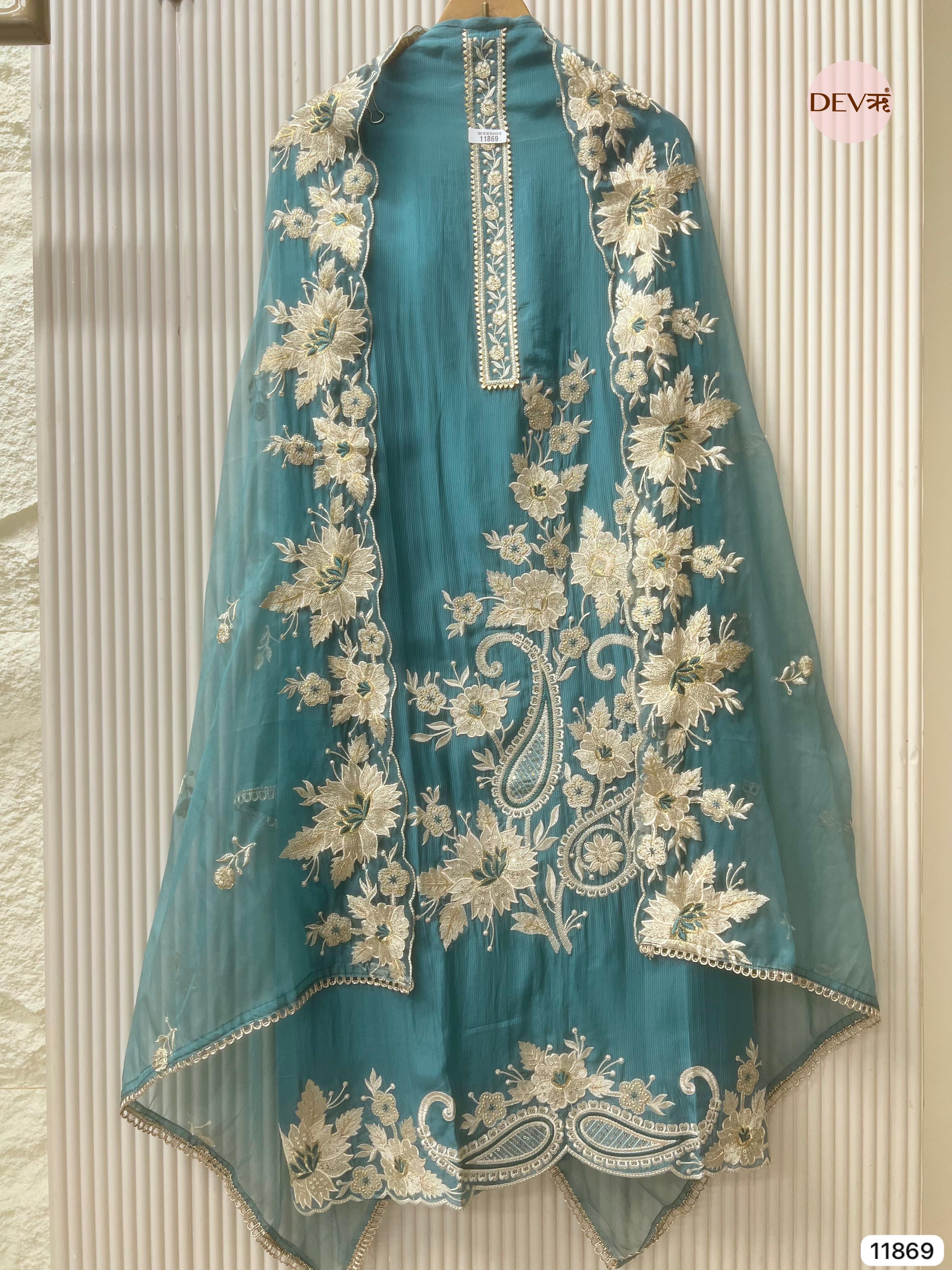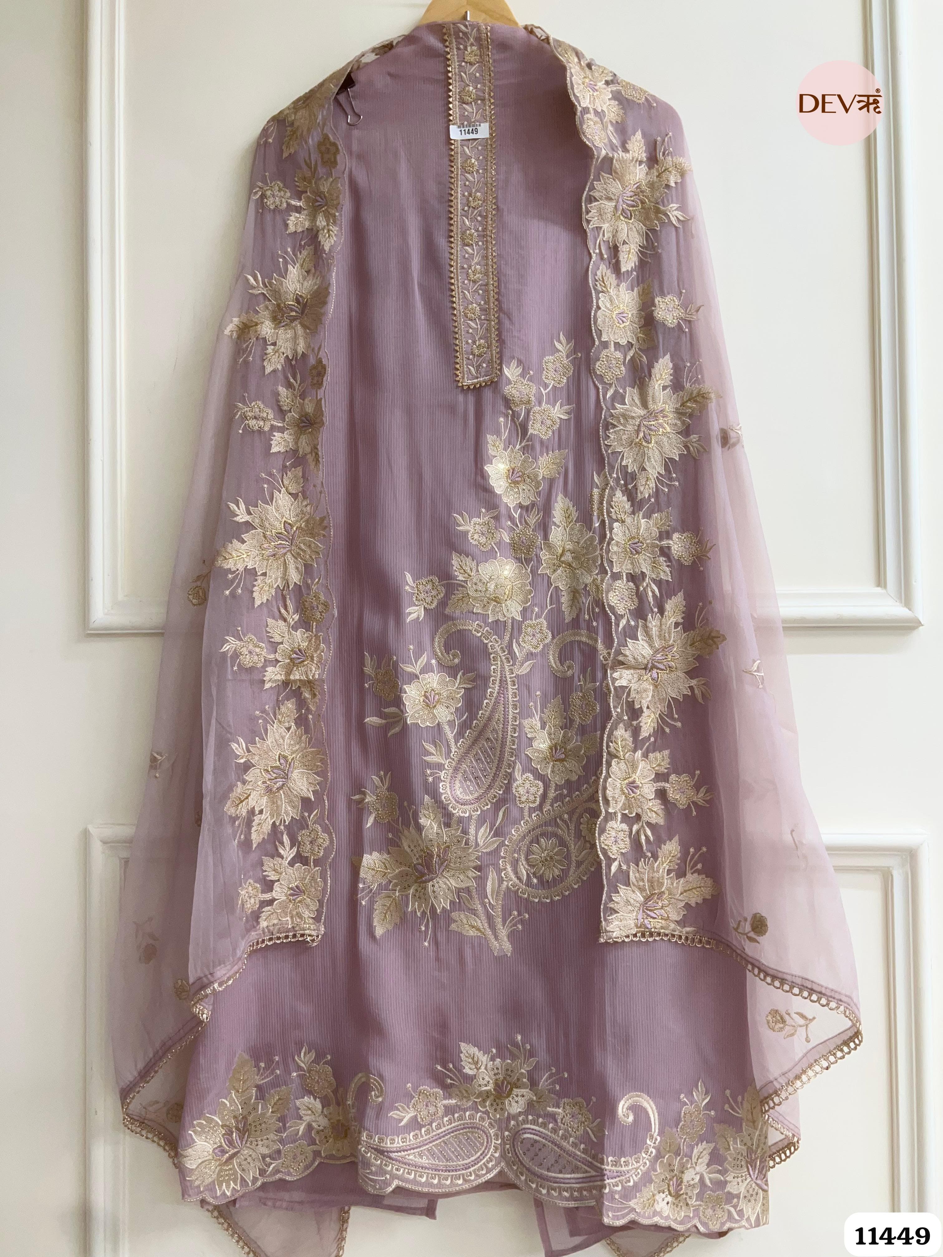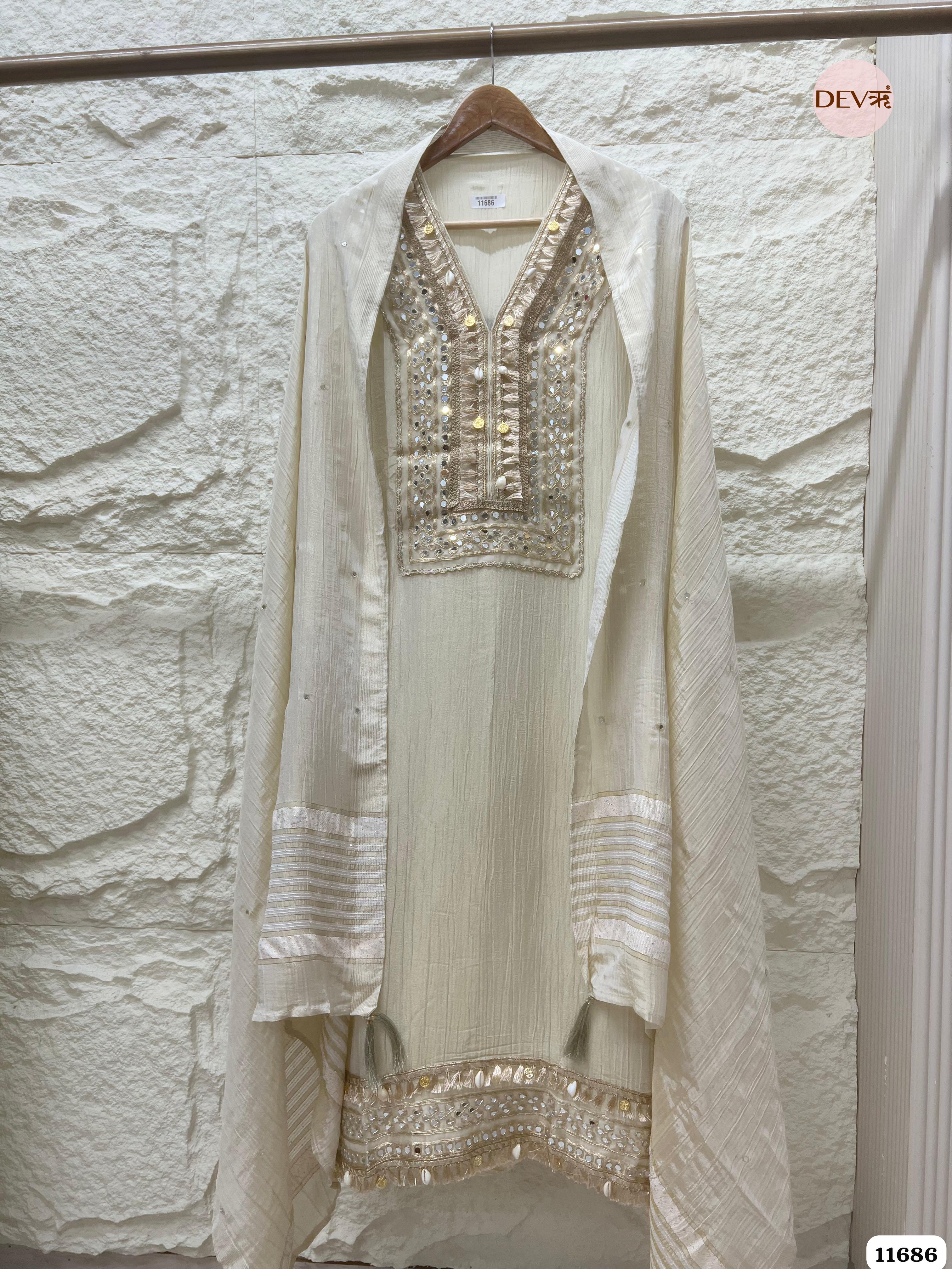 Yellow Silk Stiched Embroidered -Set Of 3 {1031}
