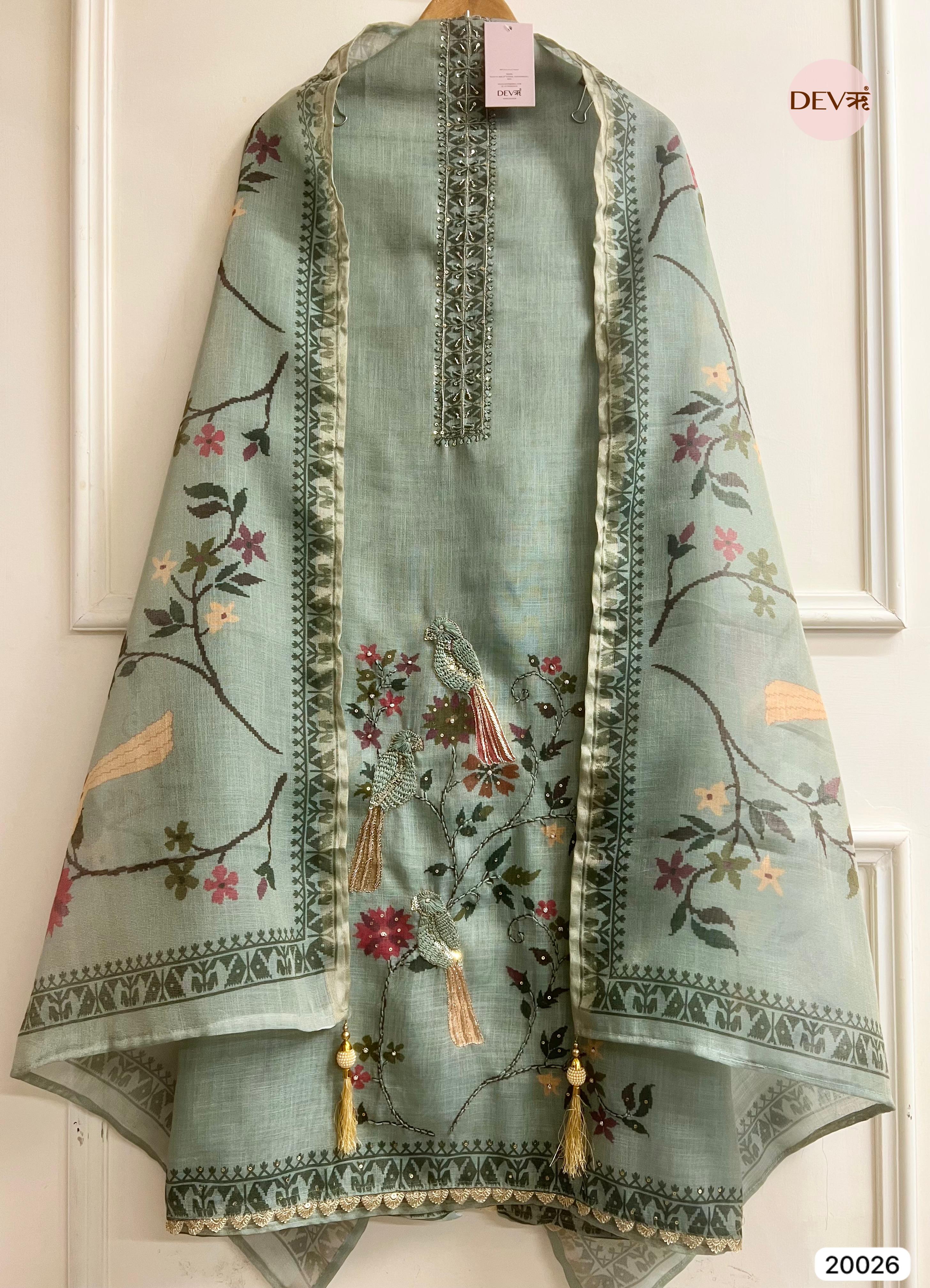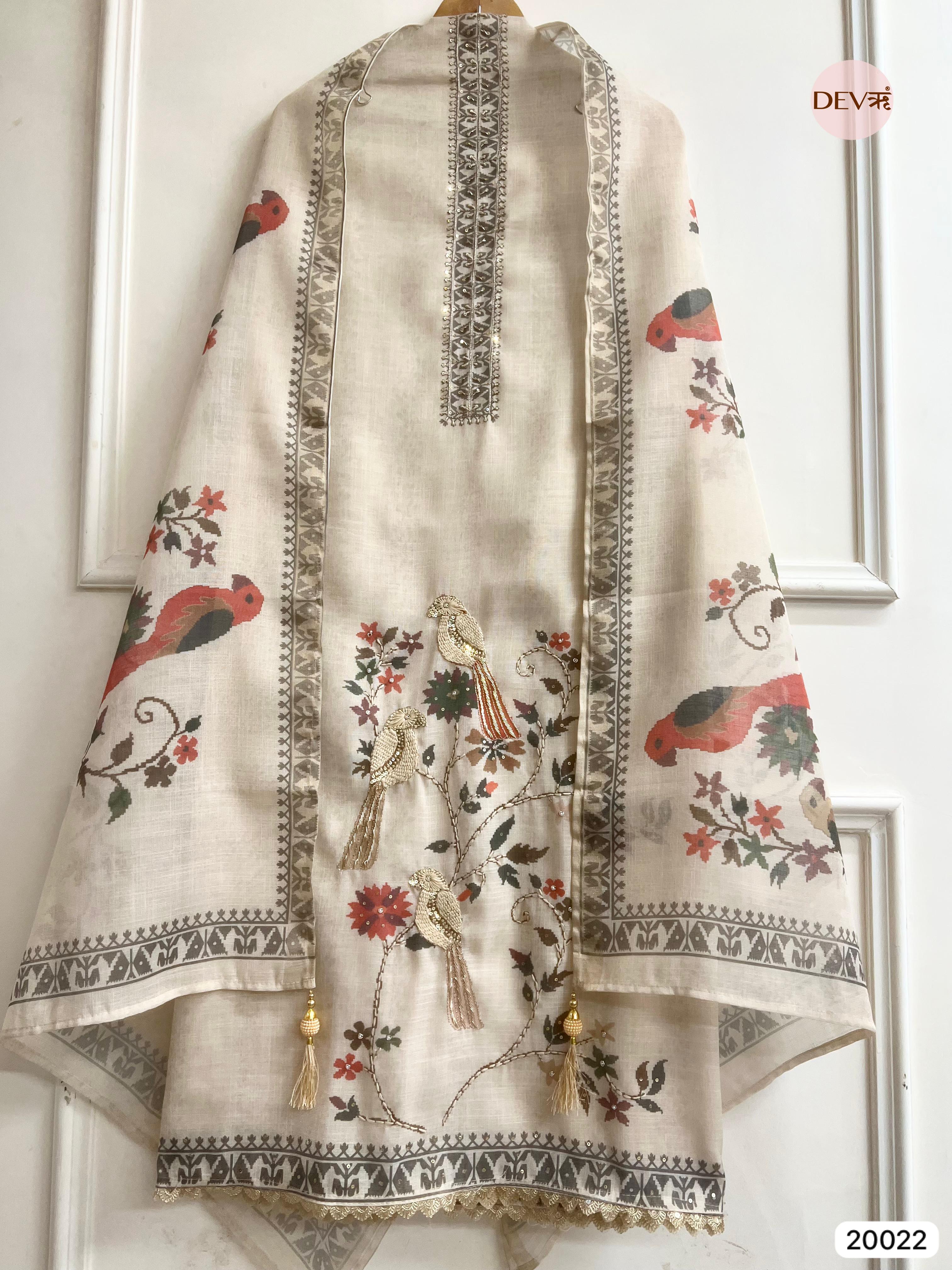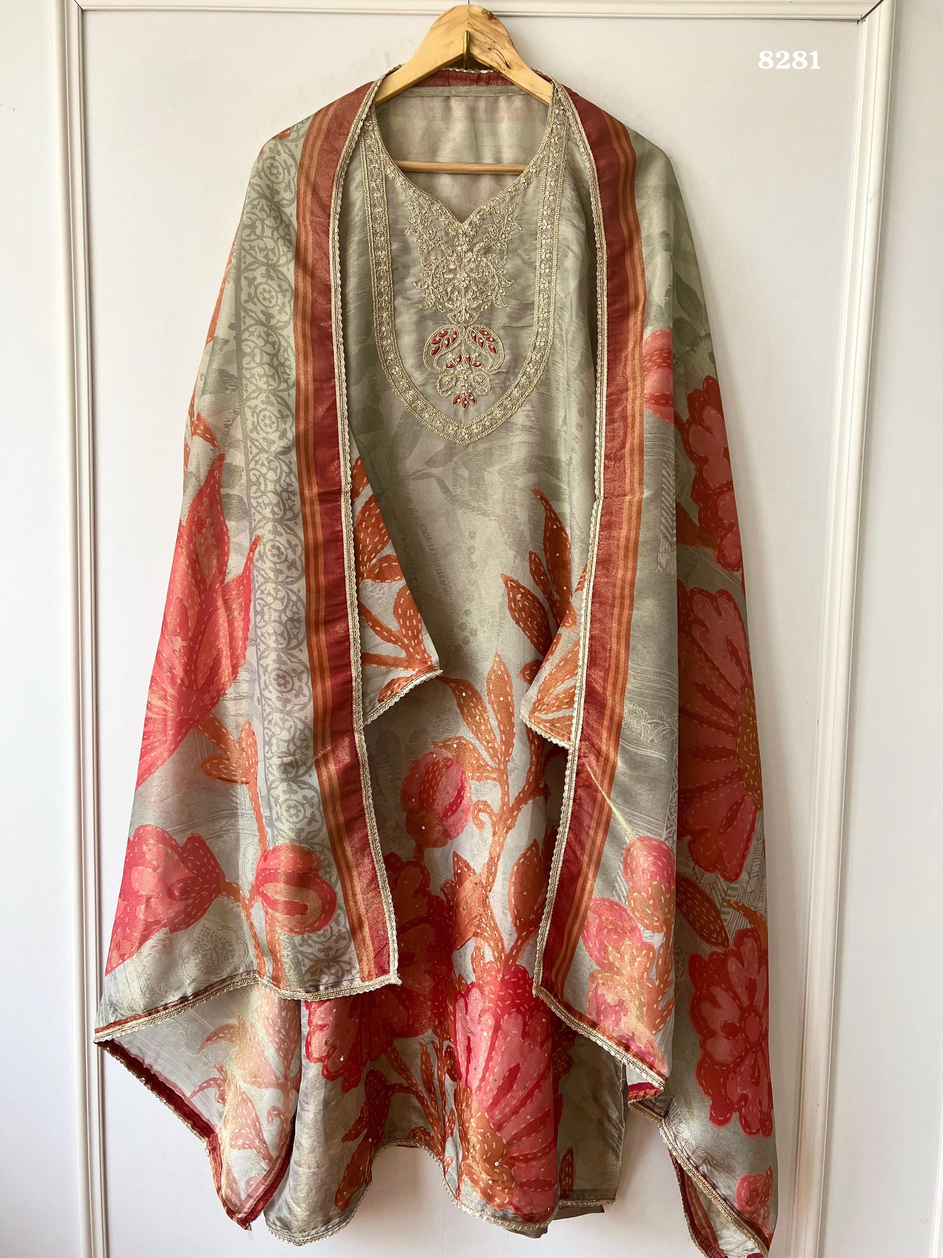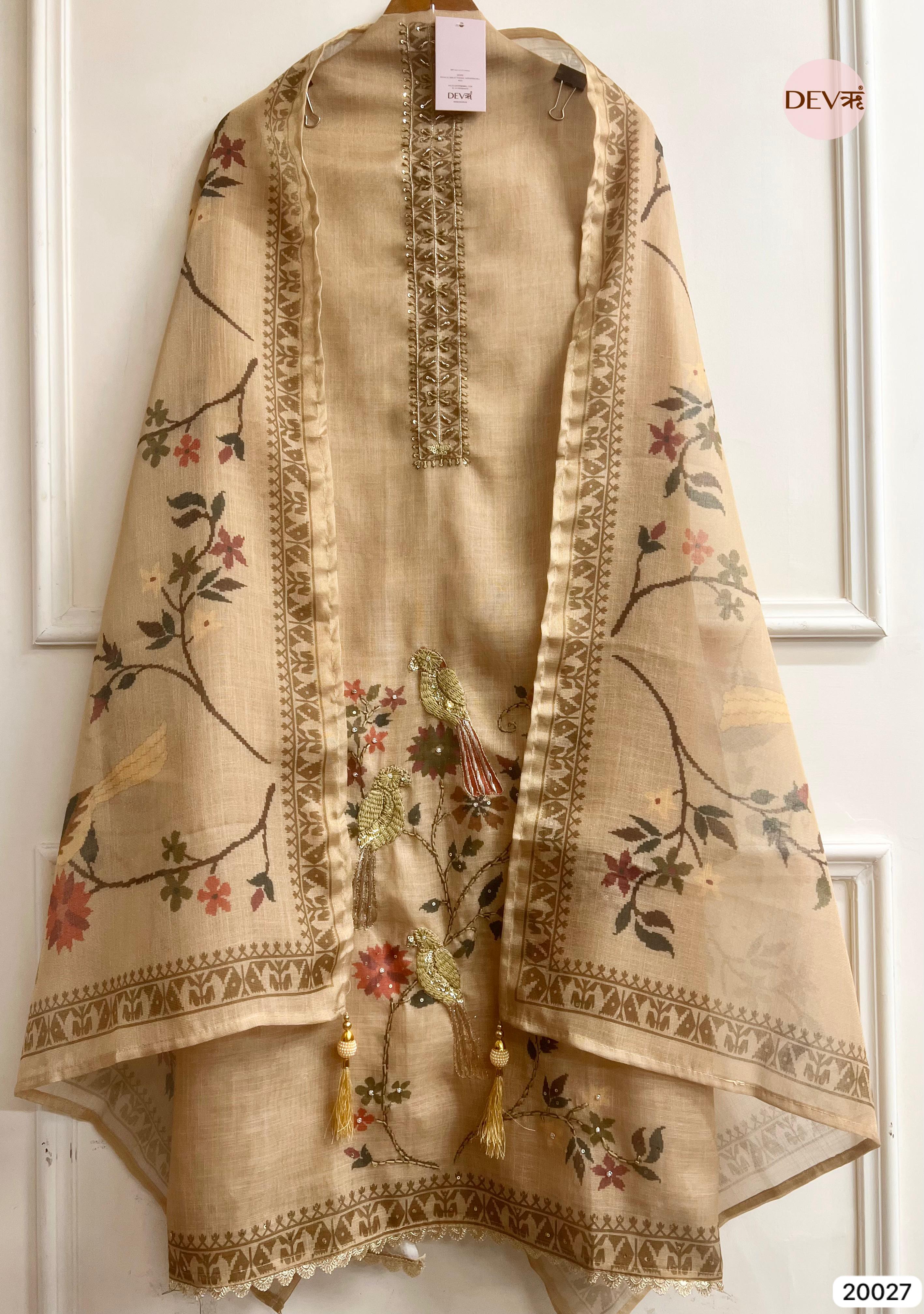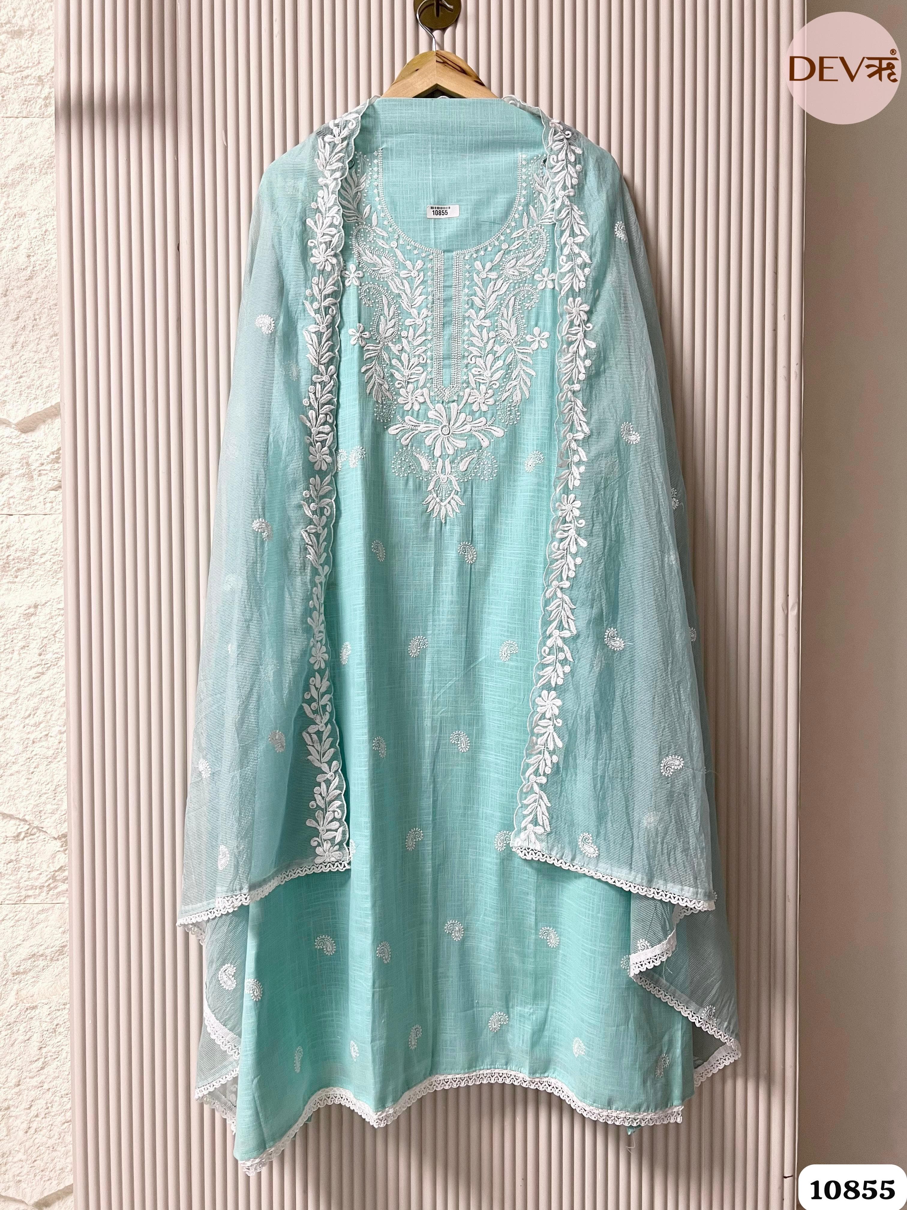 Yellow Silk Stiched Embroidered -Set Of 3 {1031}