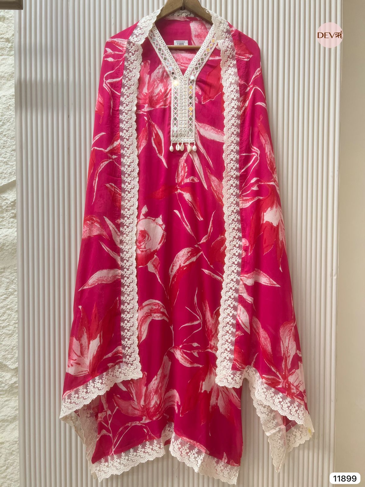 Fuchsia Glow Chanderi 3-Piece Set {1024}