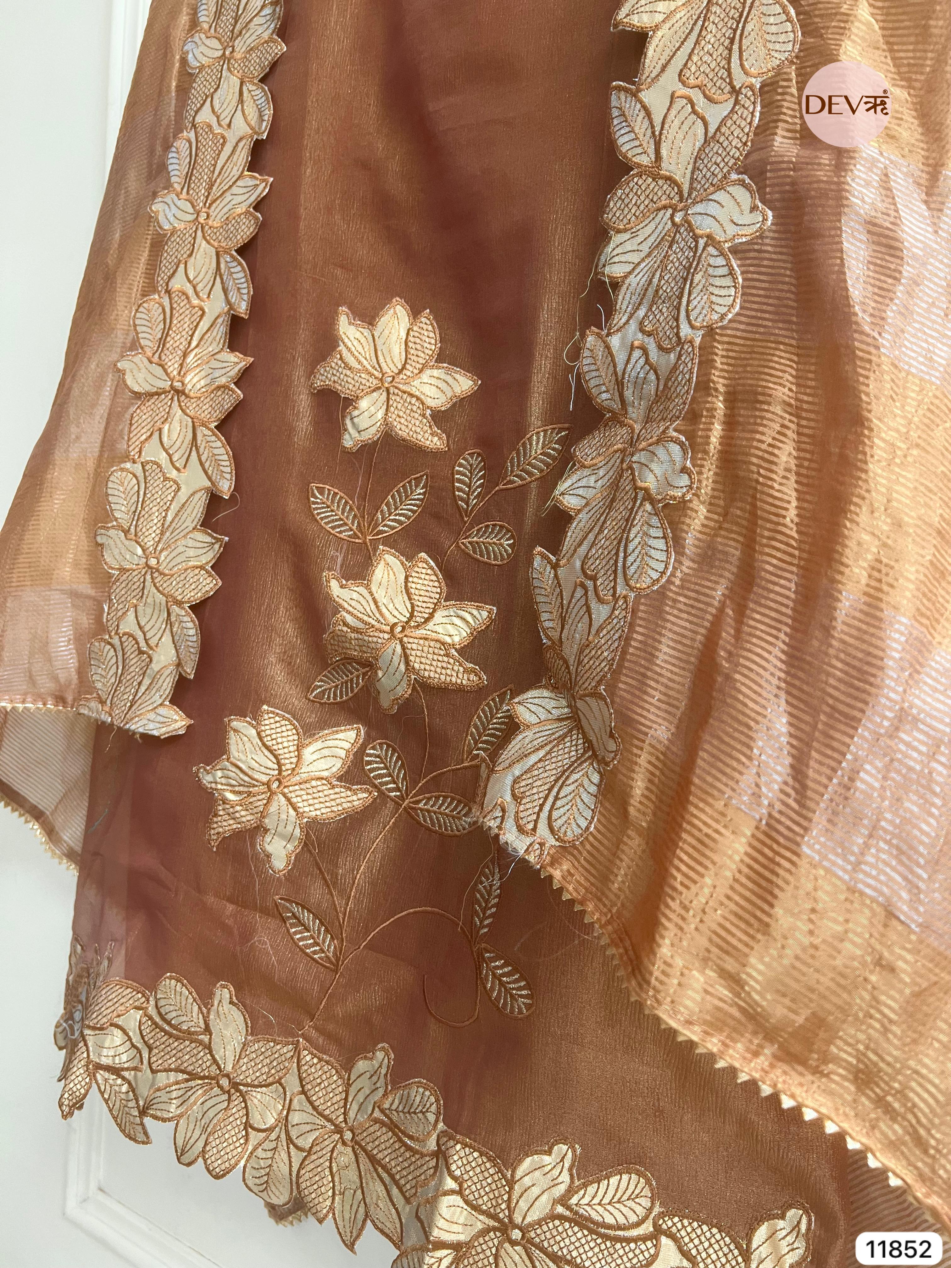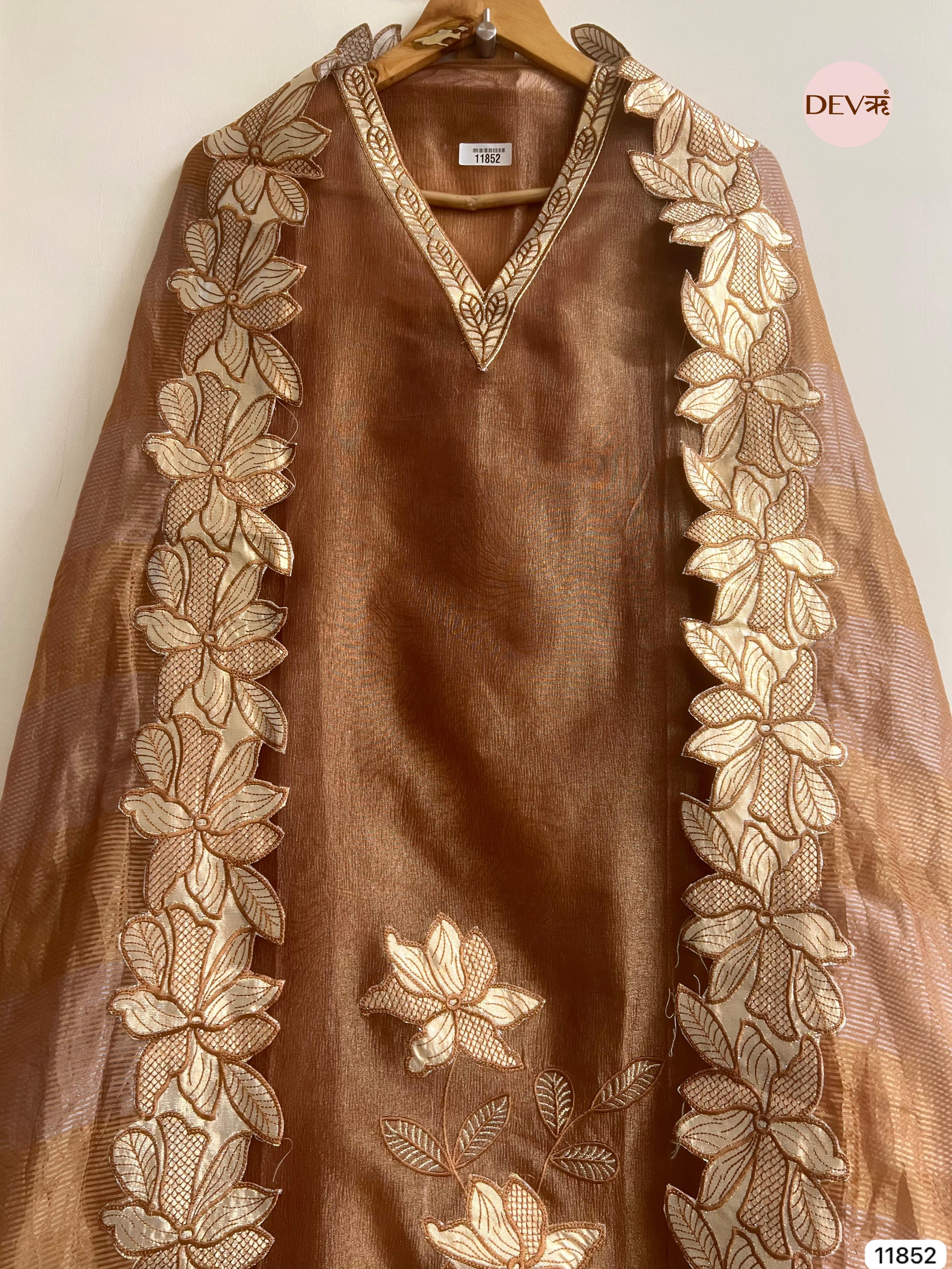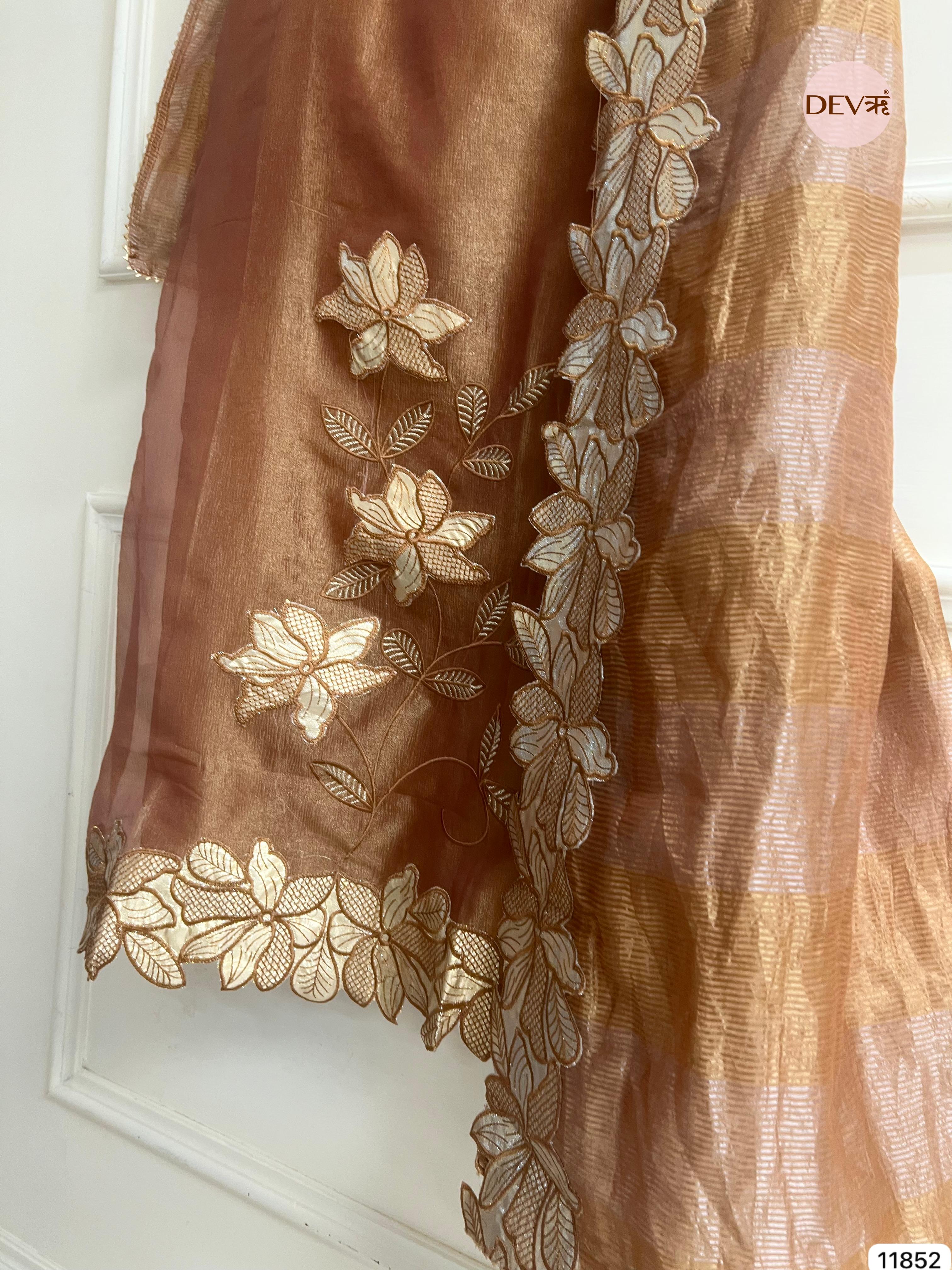 Brown Tissue Silk Unstitched Embroidered -Set Of 3