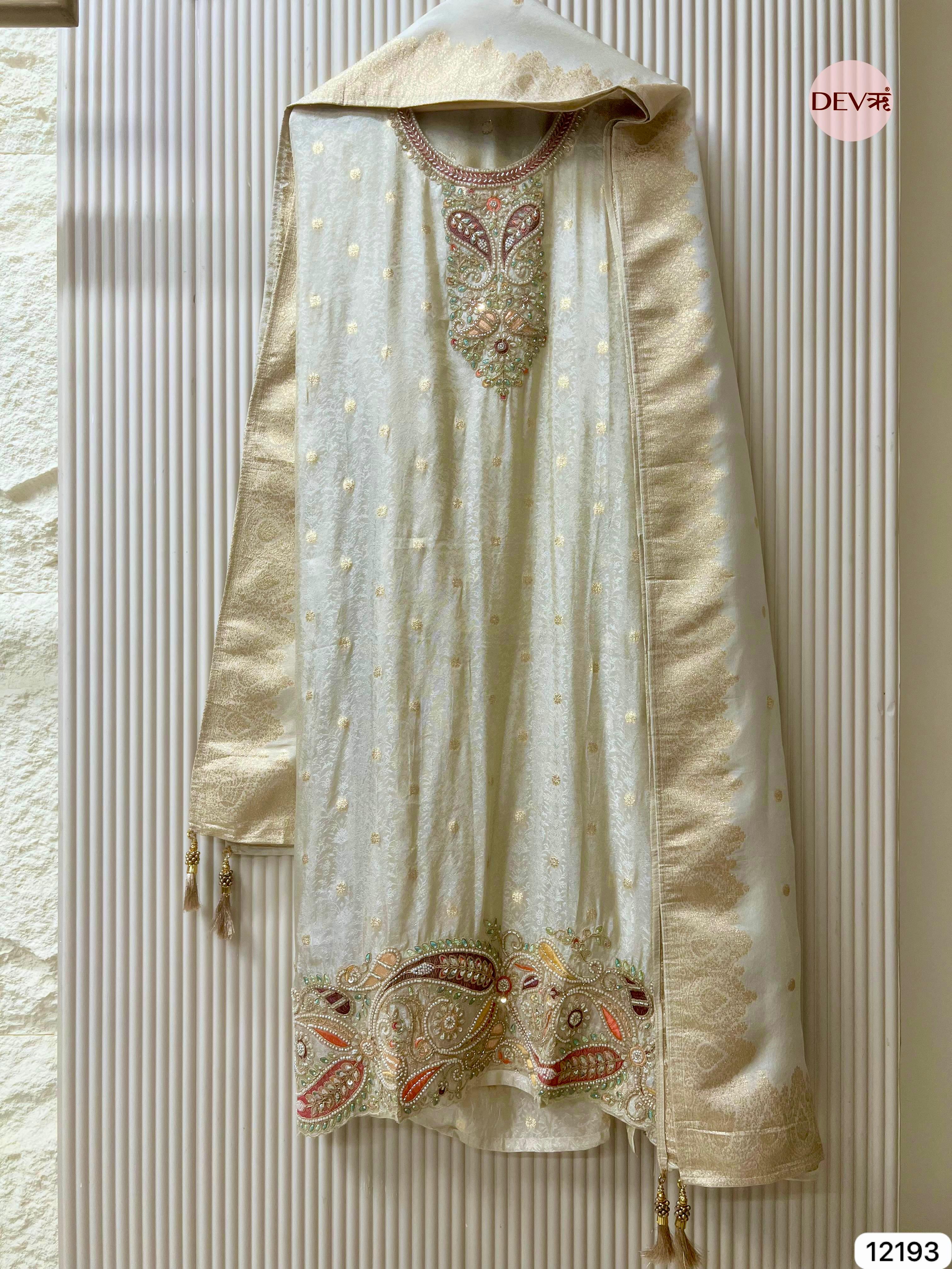 Shirt - Pure shimmer silk banarasi woven with handwork on neckline and ghera