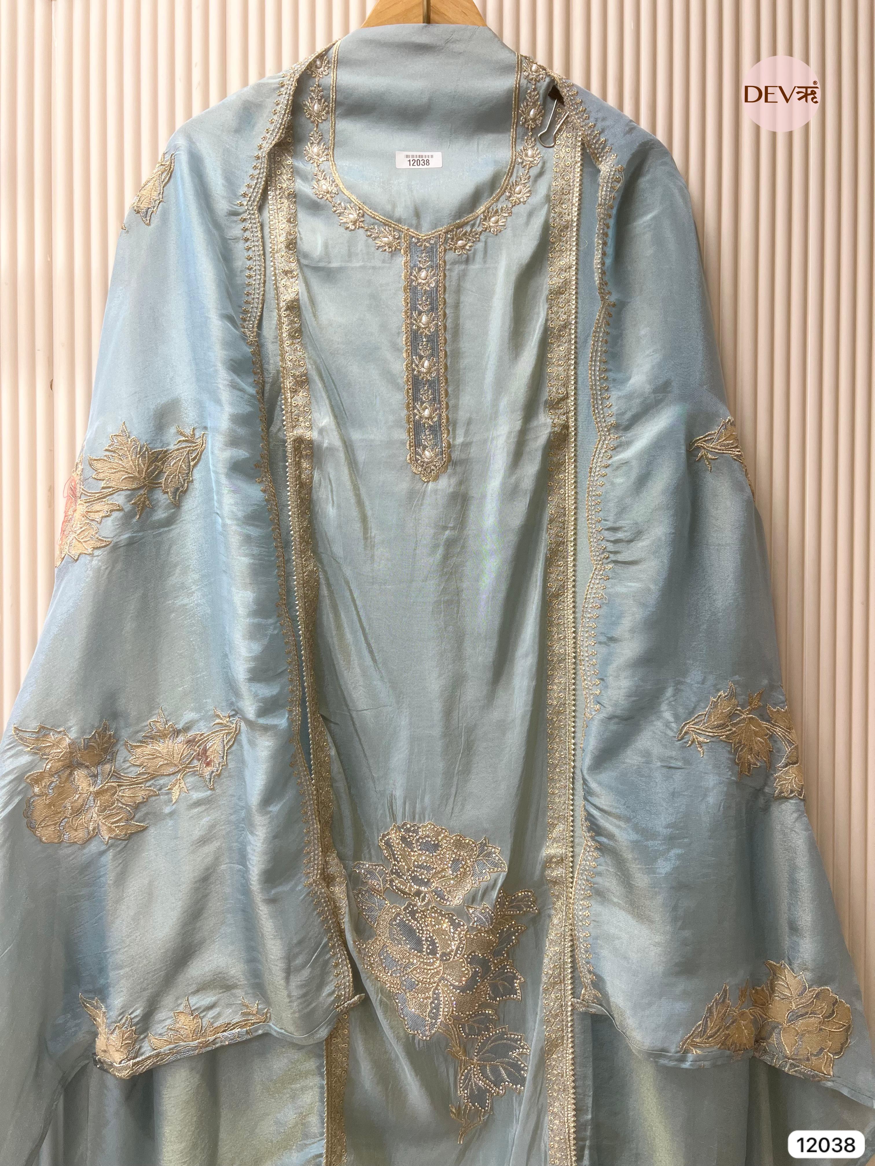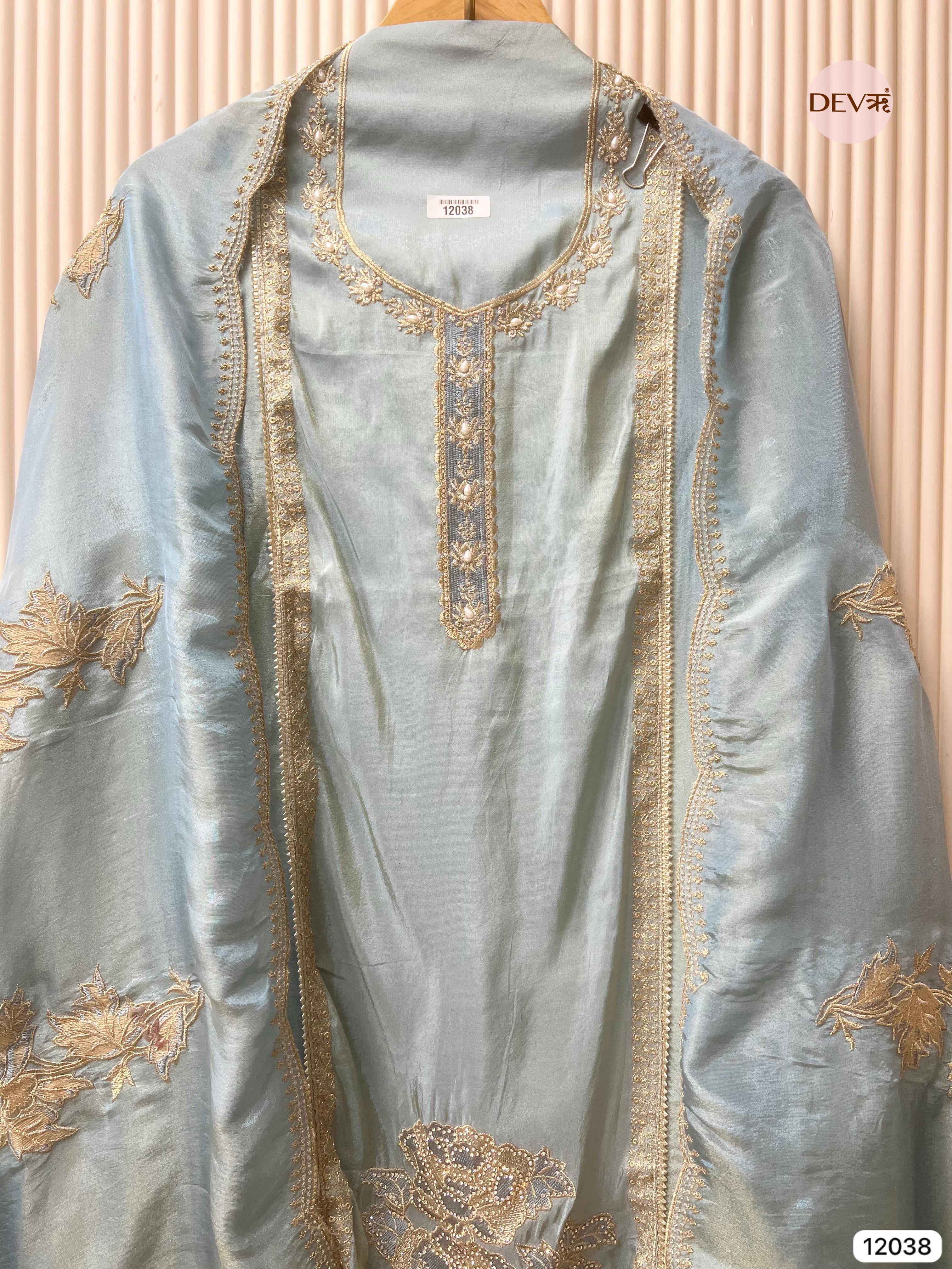 Shirt - Tissue shimmer silk unstitched hand embroidered