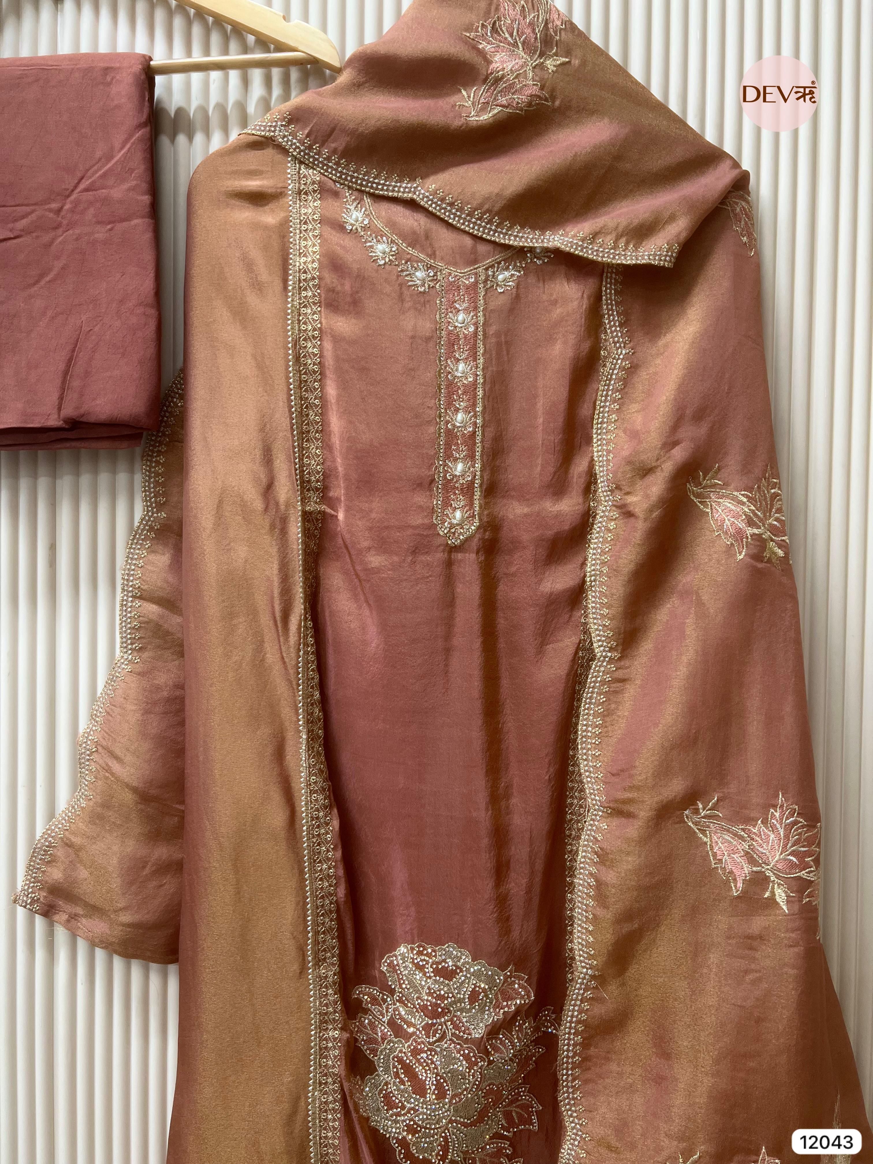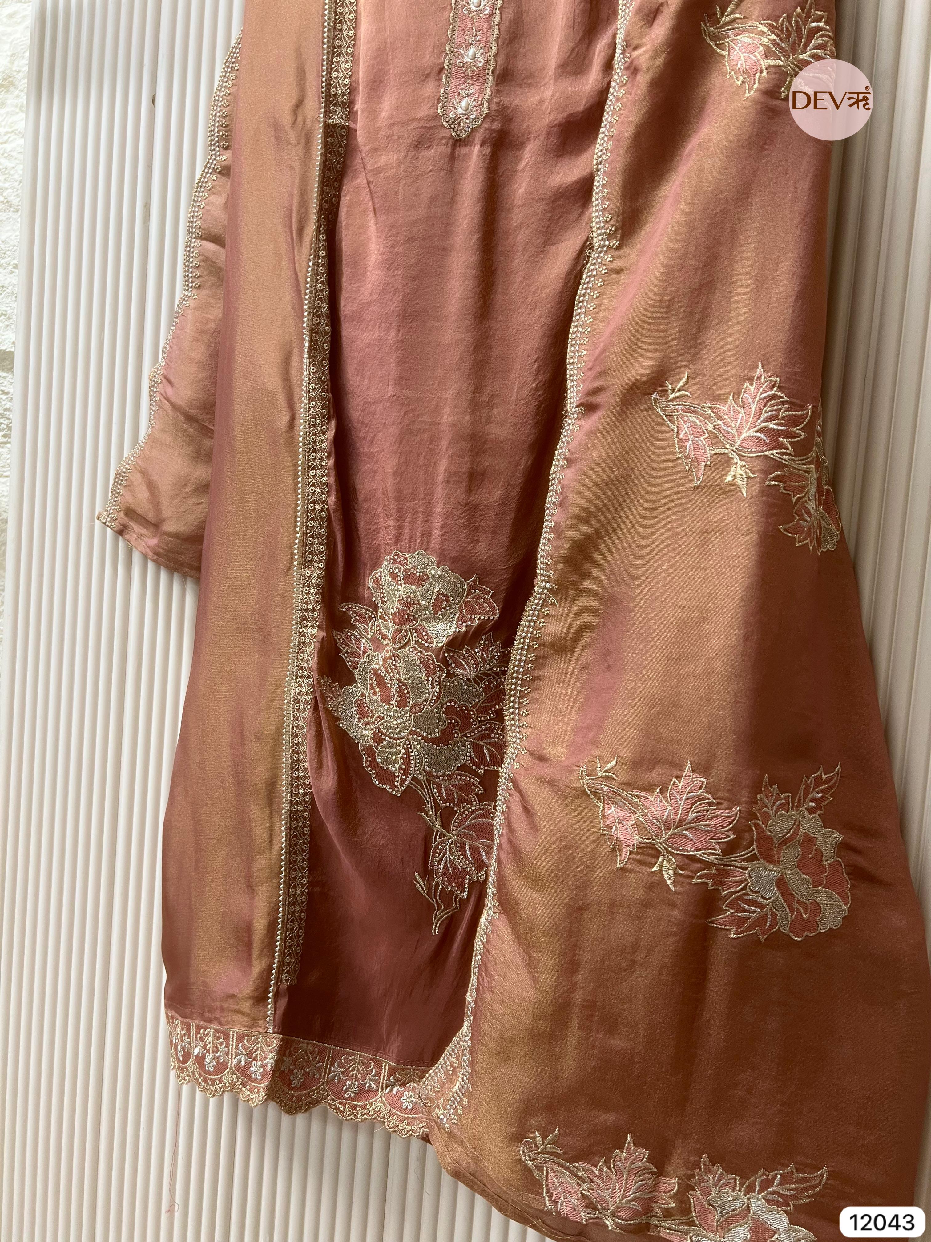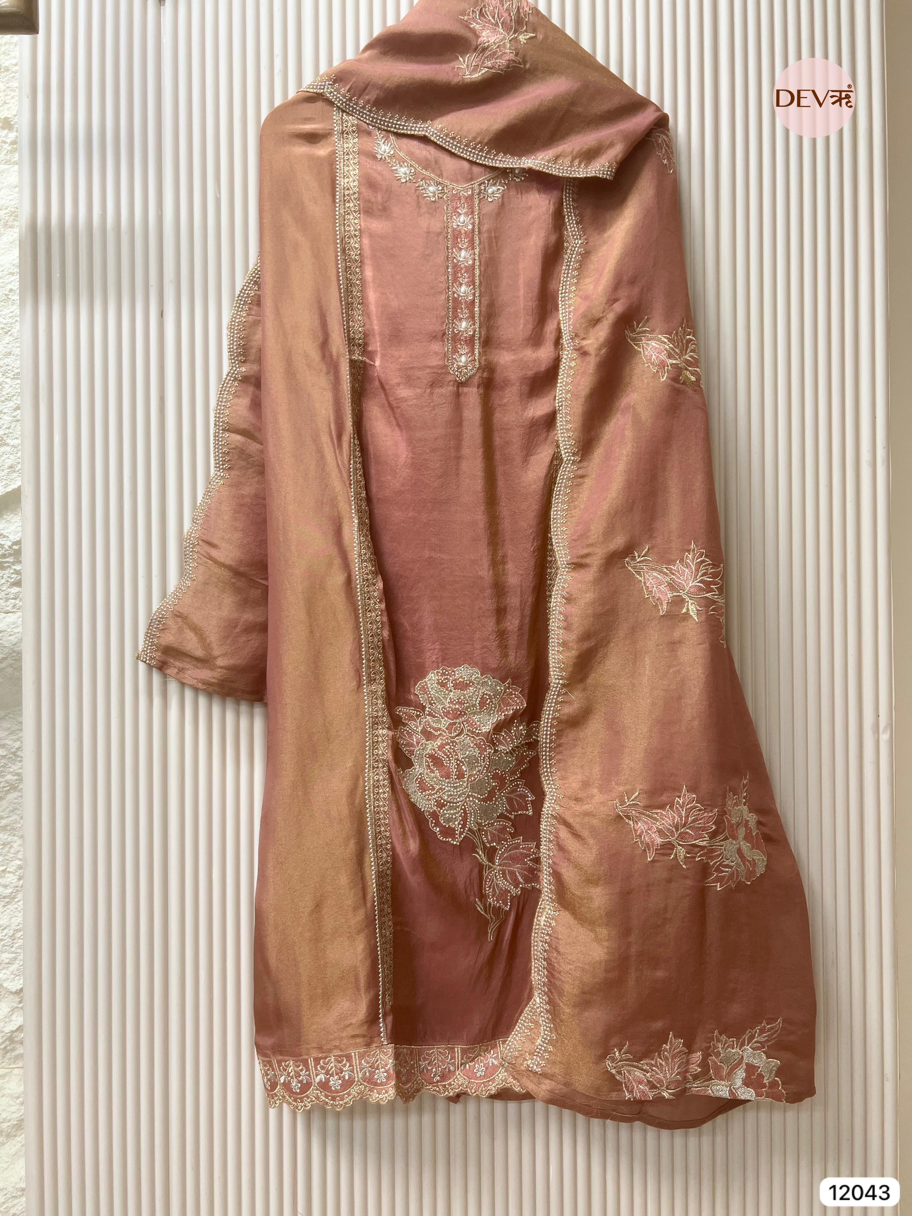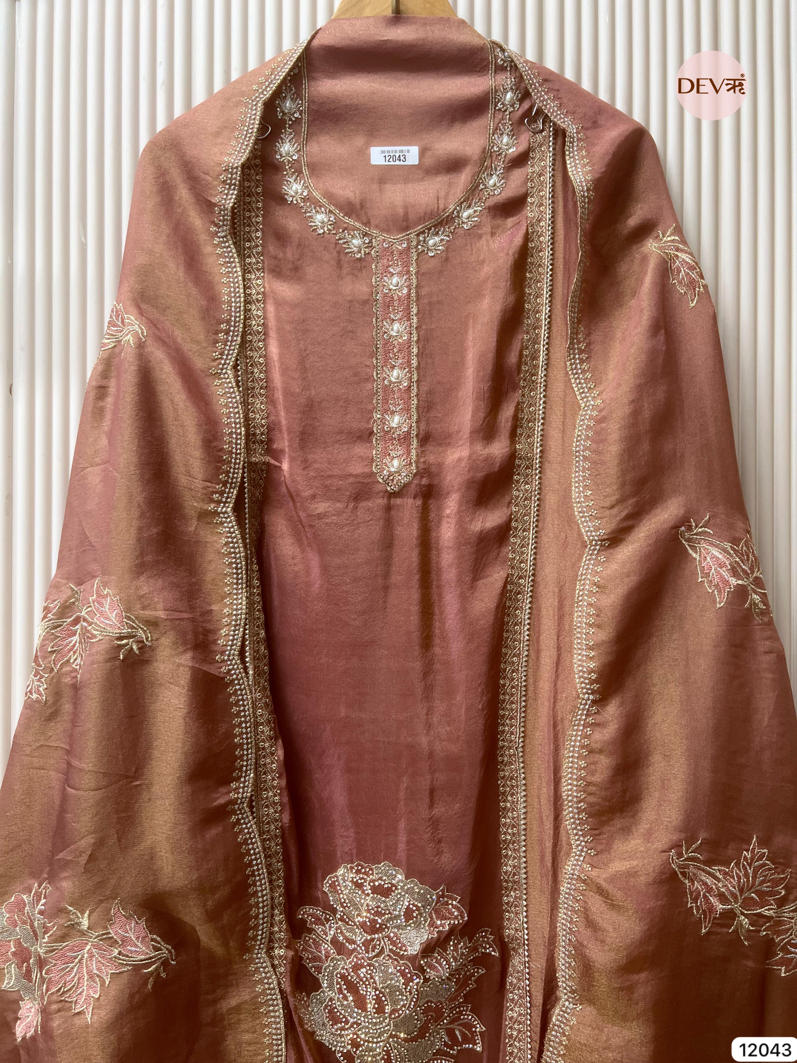 Shirt - Tissue shimmer silk unstitched hand embroidered