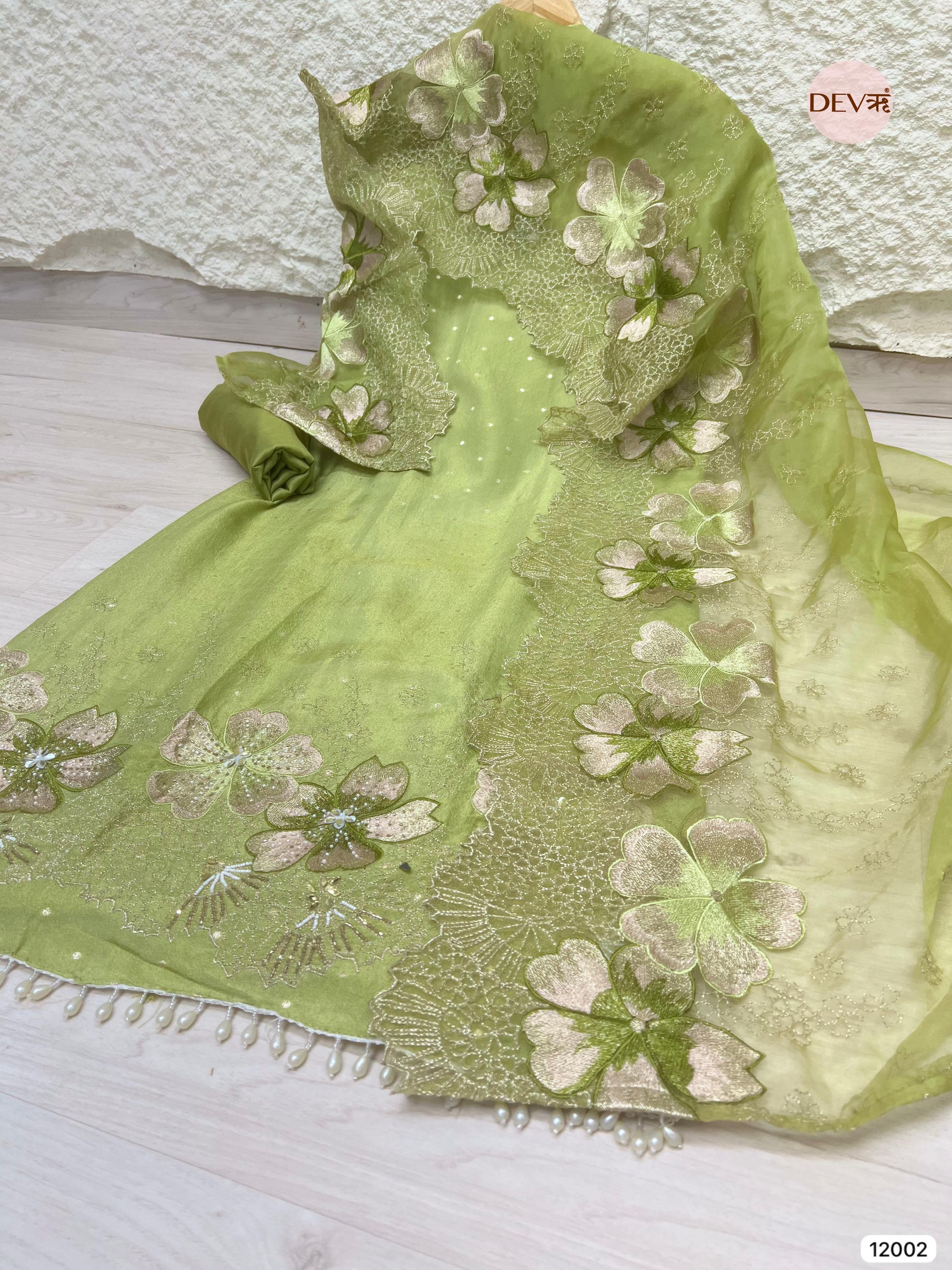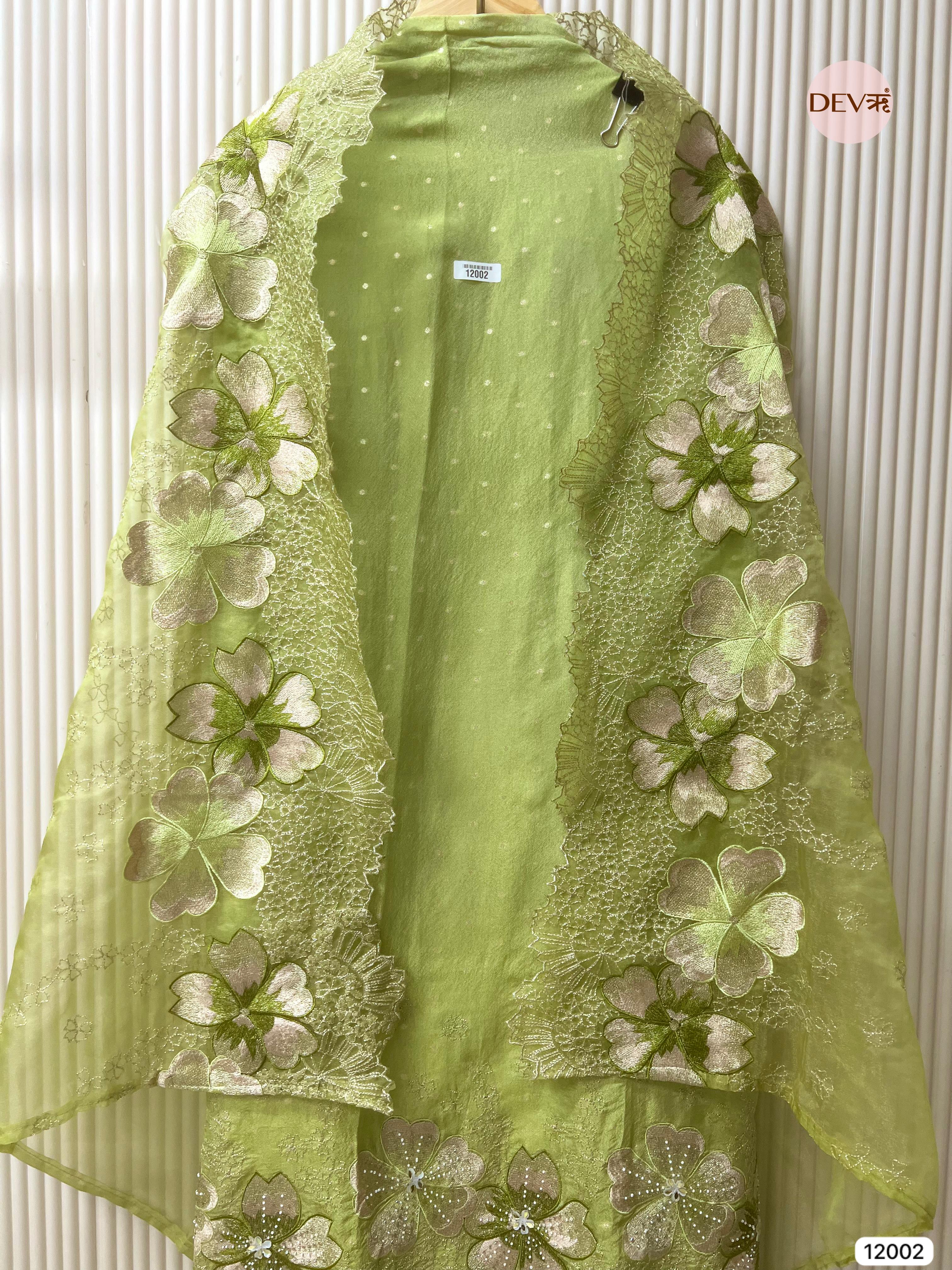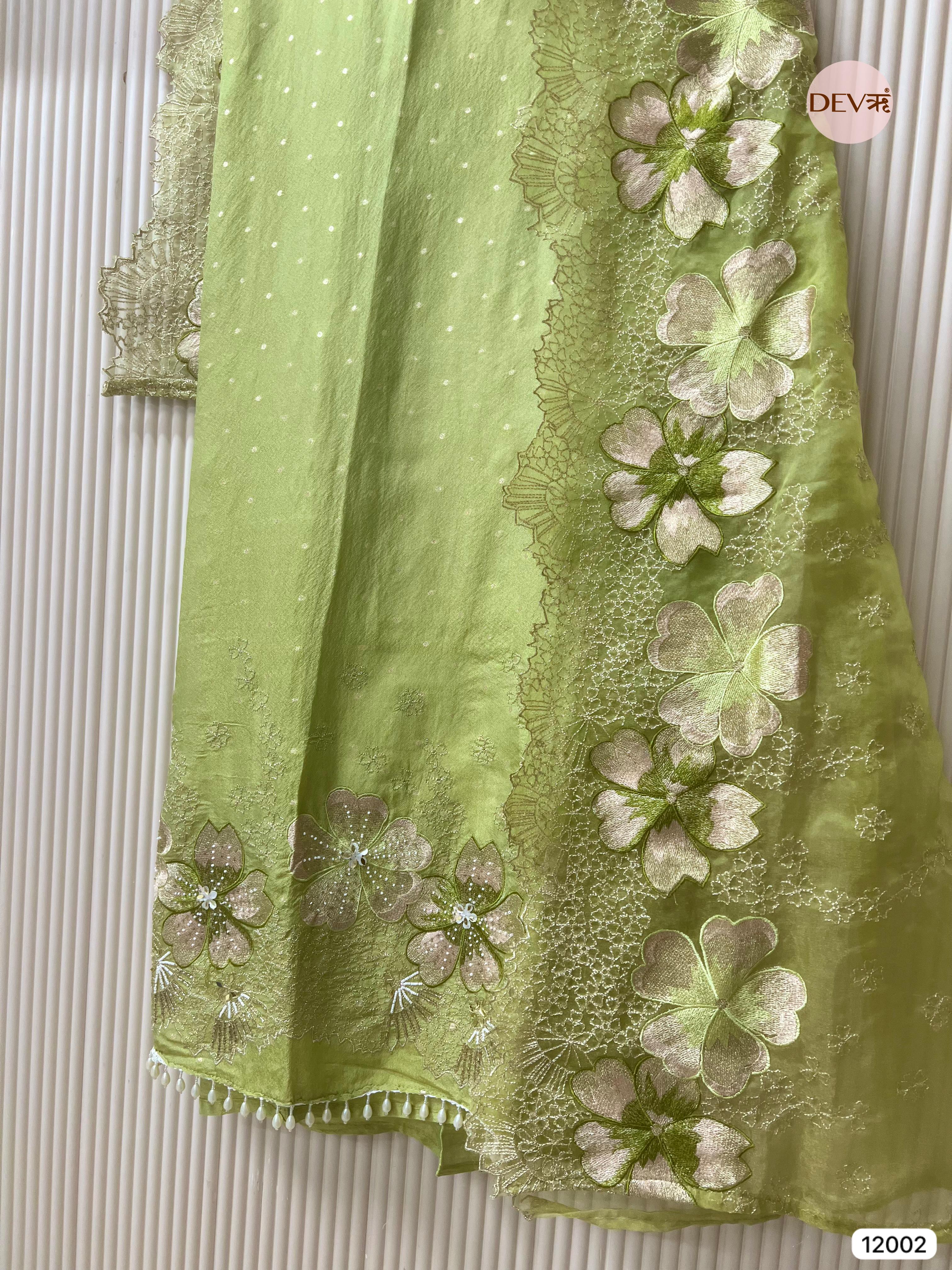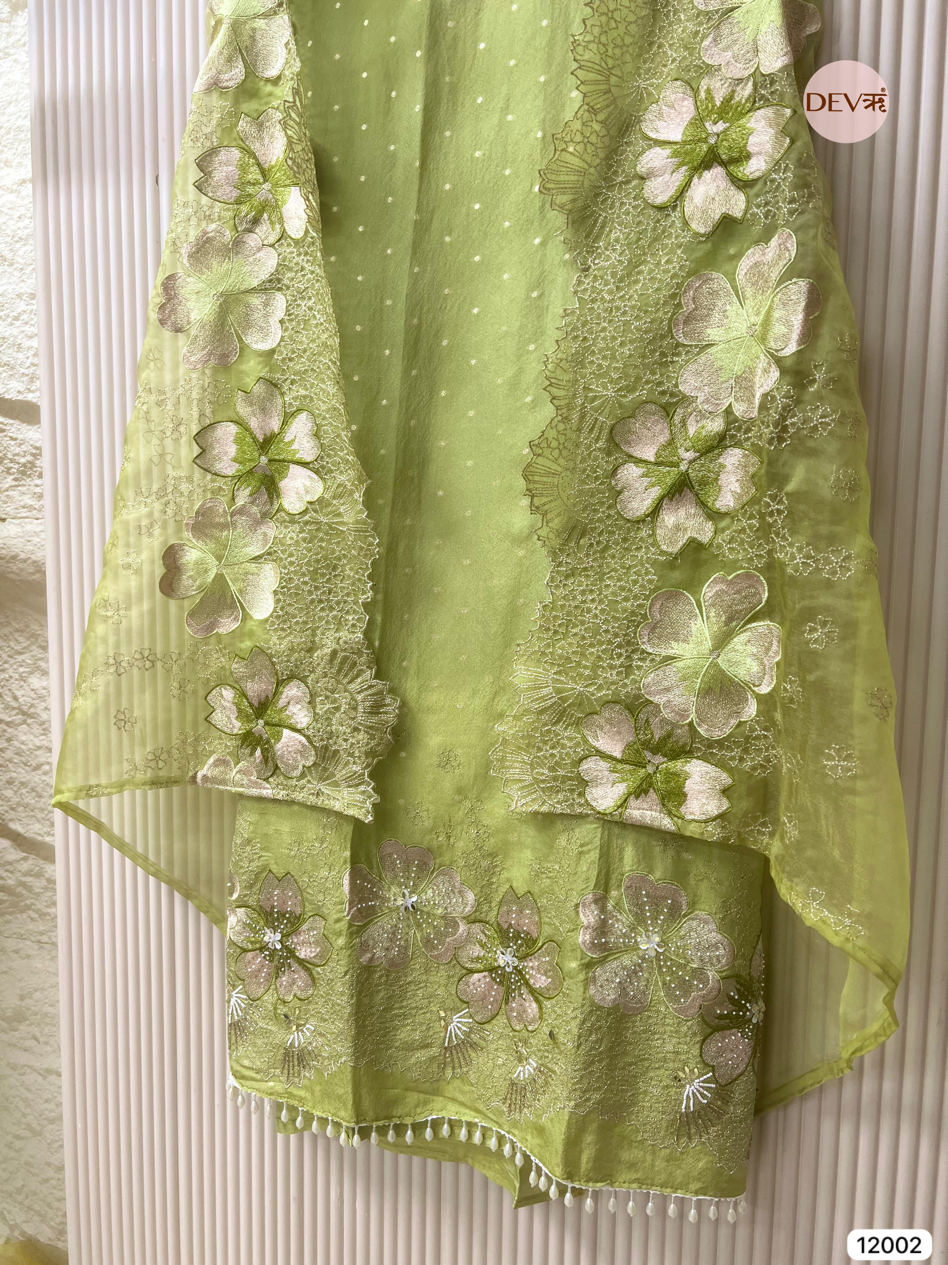 Green Tissue Shimmer Silk Unstitched Embroidered -Set Of 3
