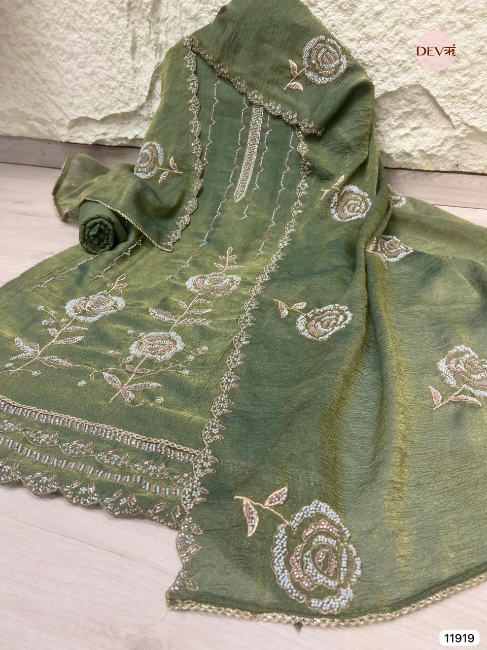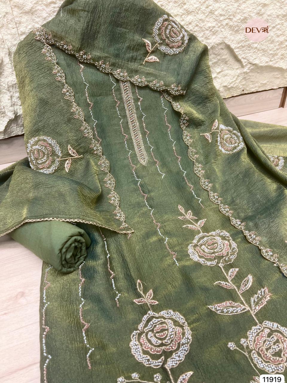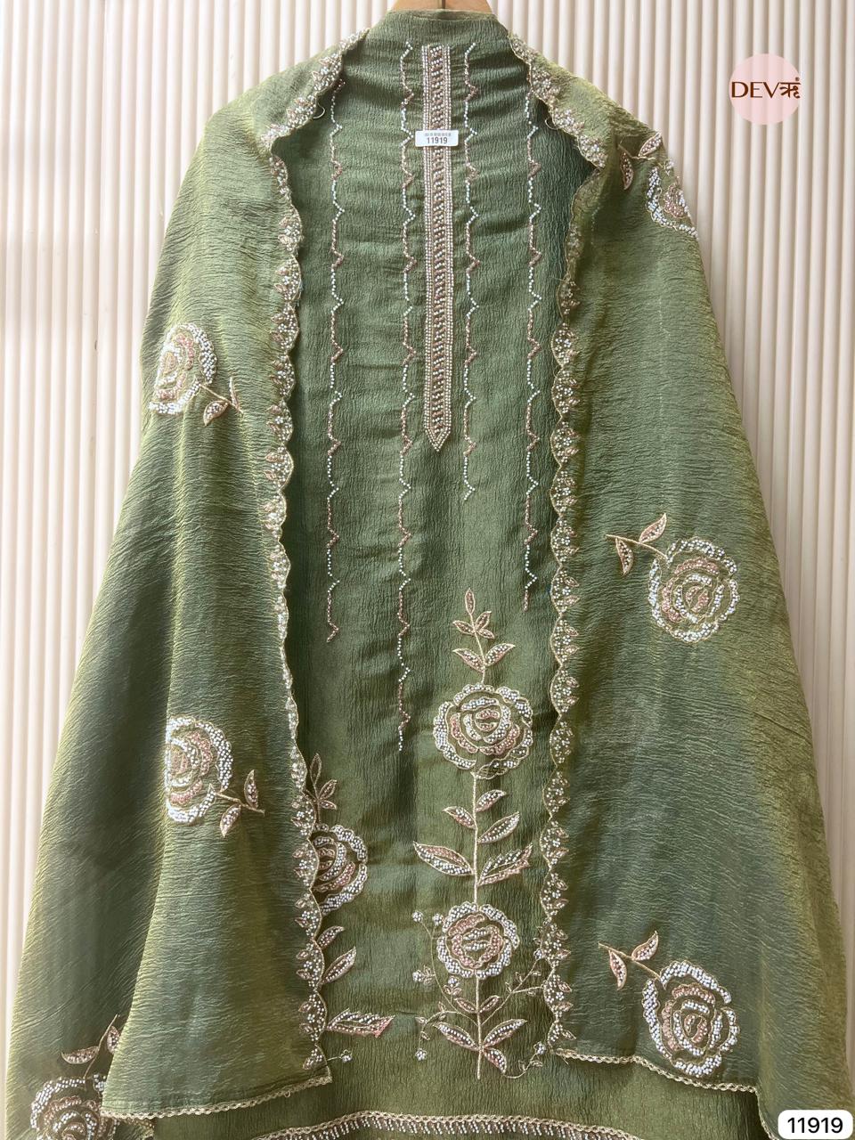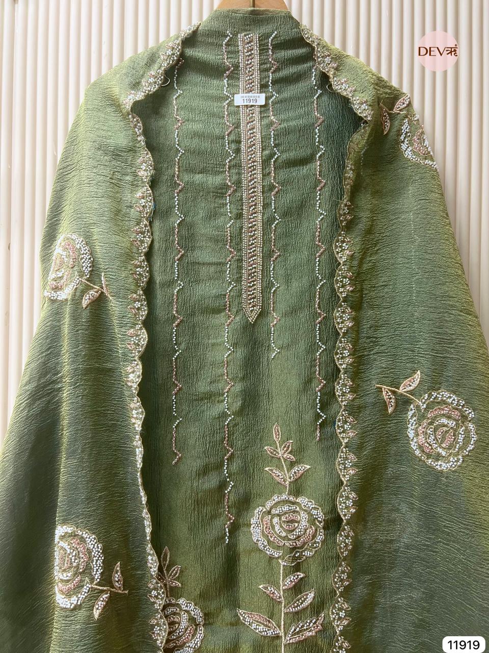 Dupatta - Pure tissue crush hand embroidered