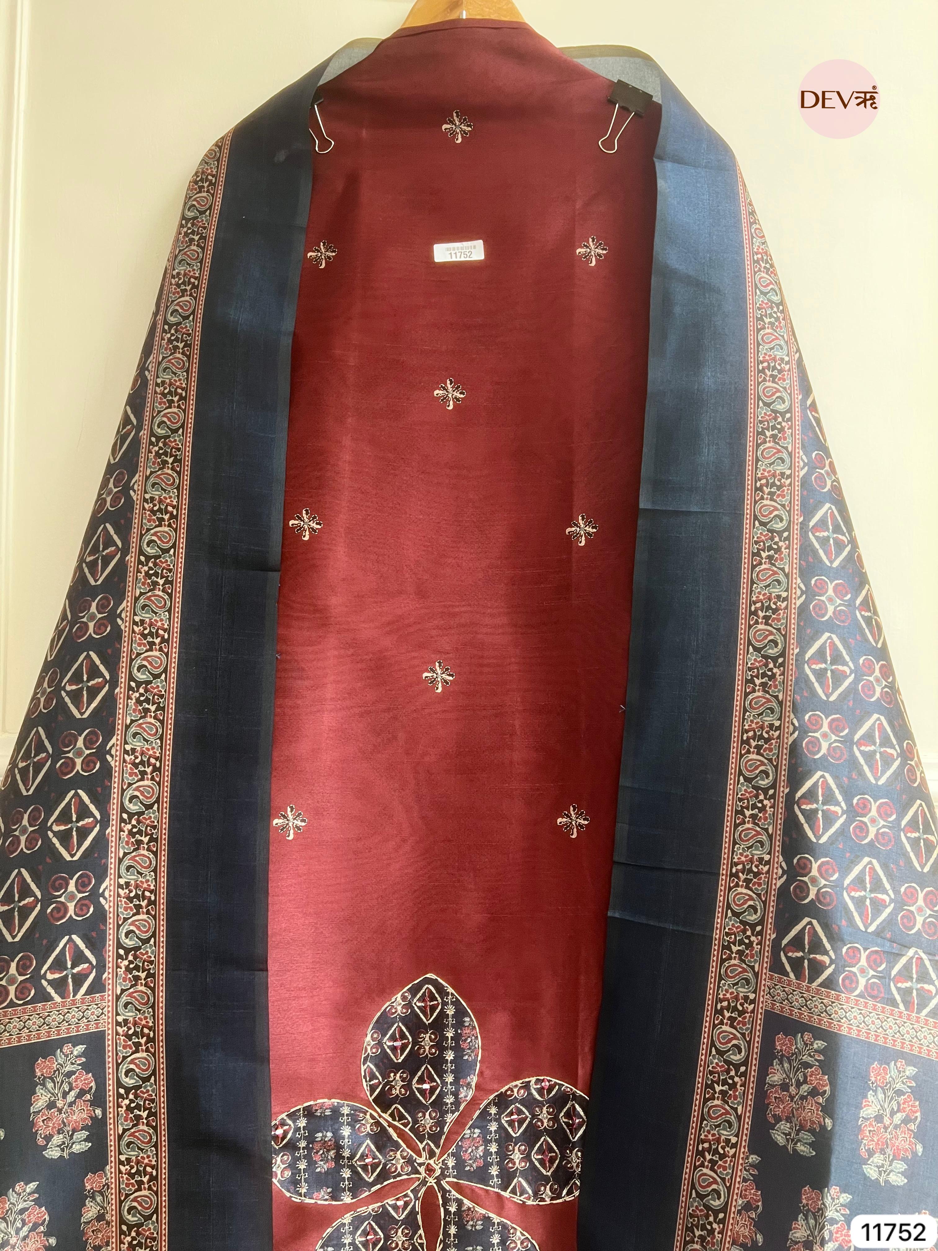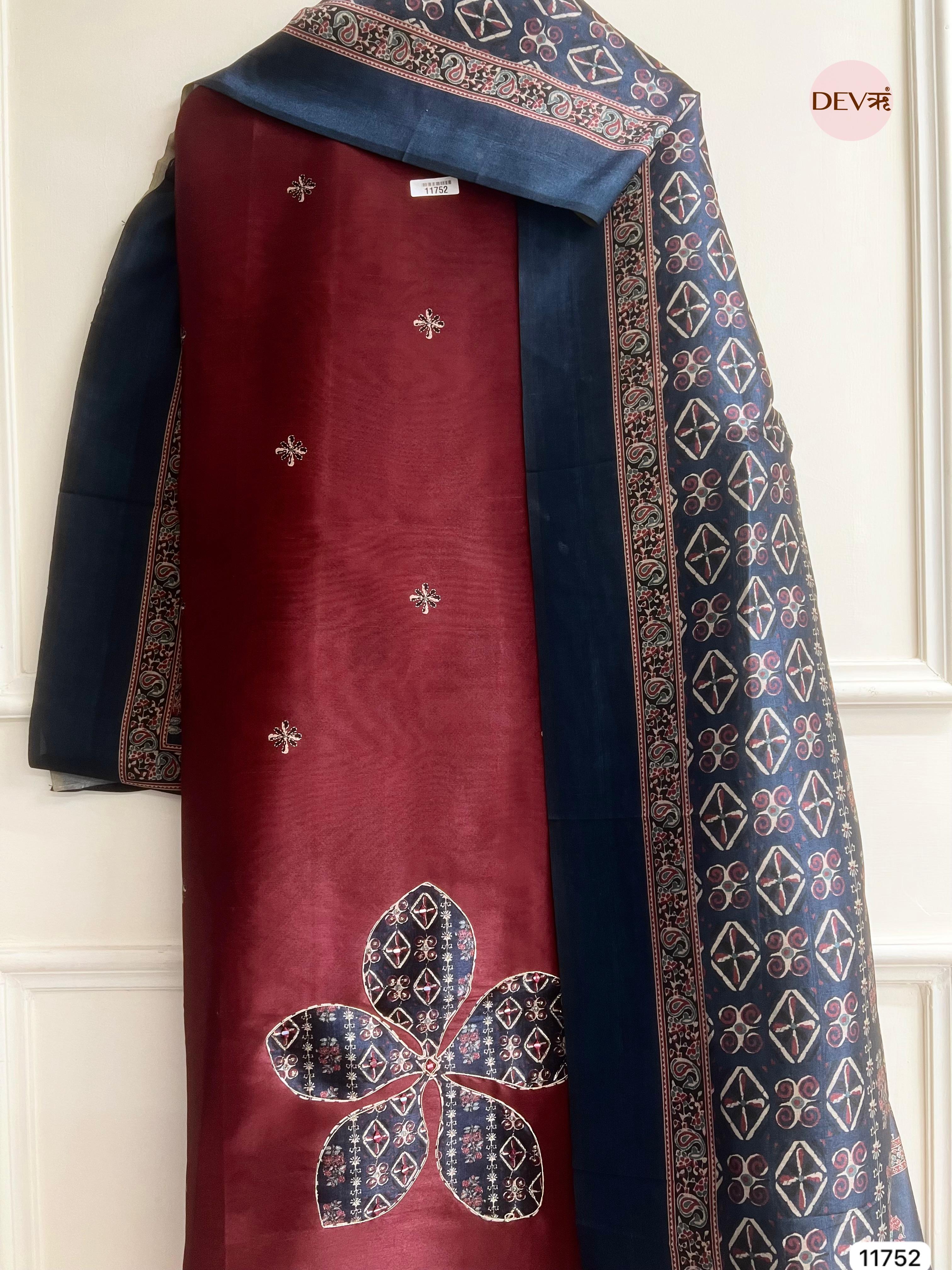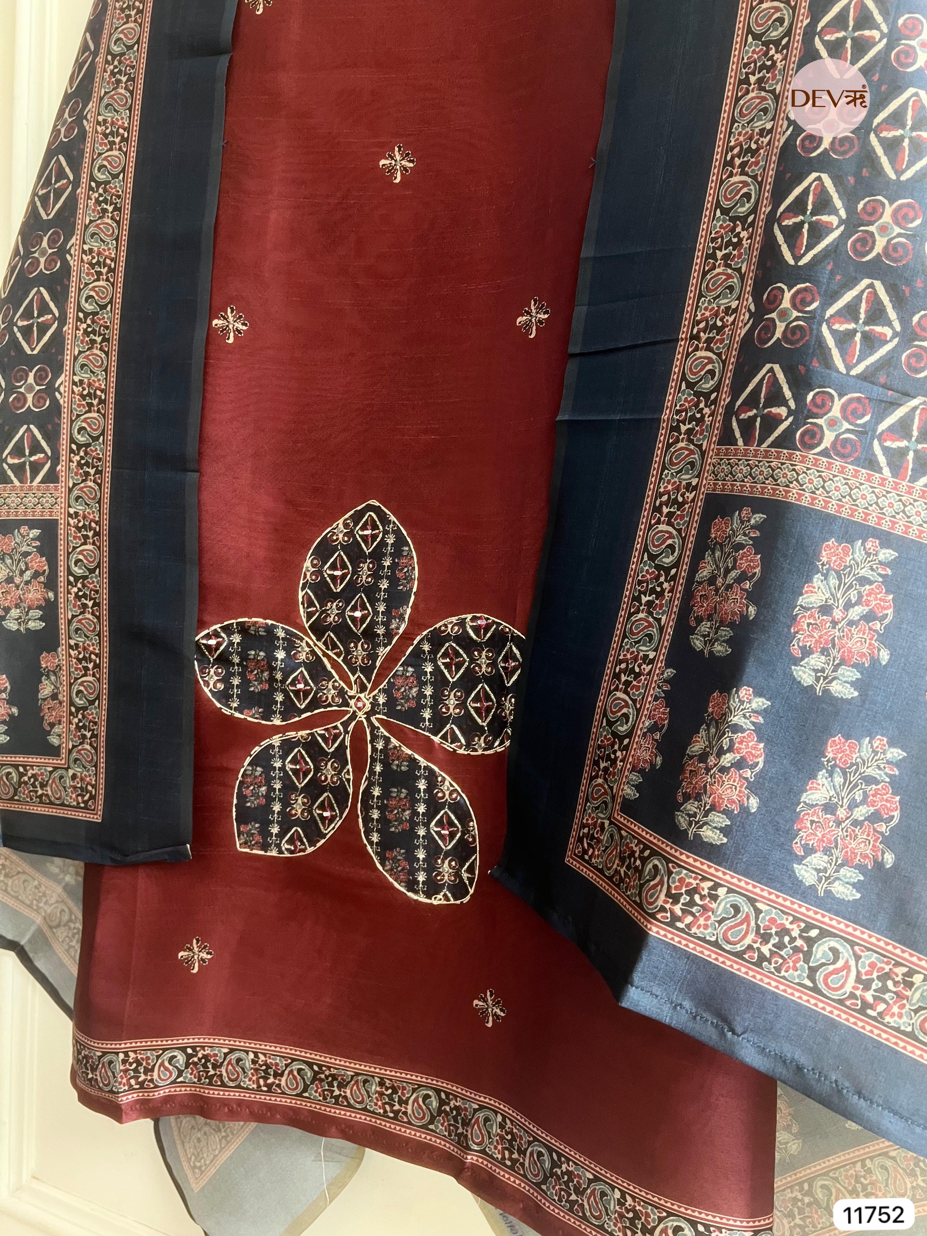 Shirt - Raw silk unstitched hand appliqué work embroidered