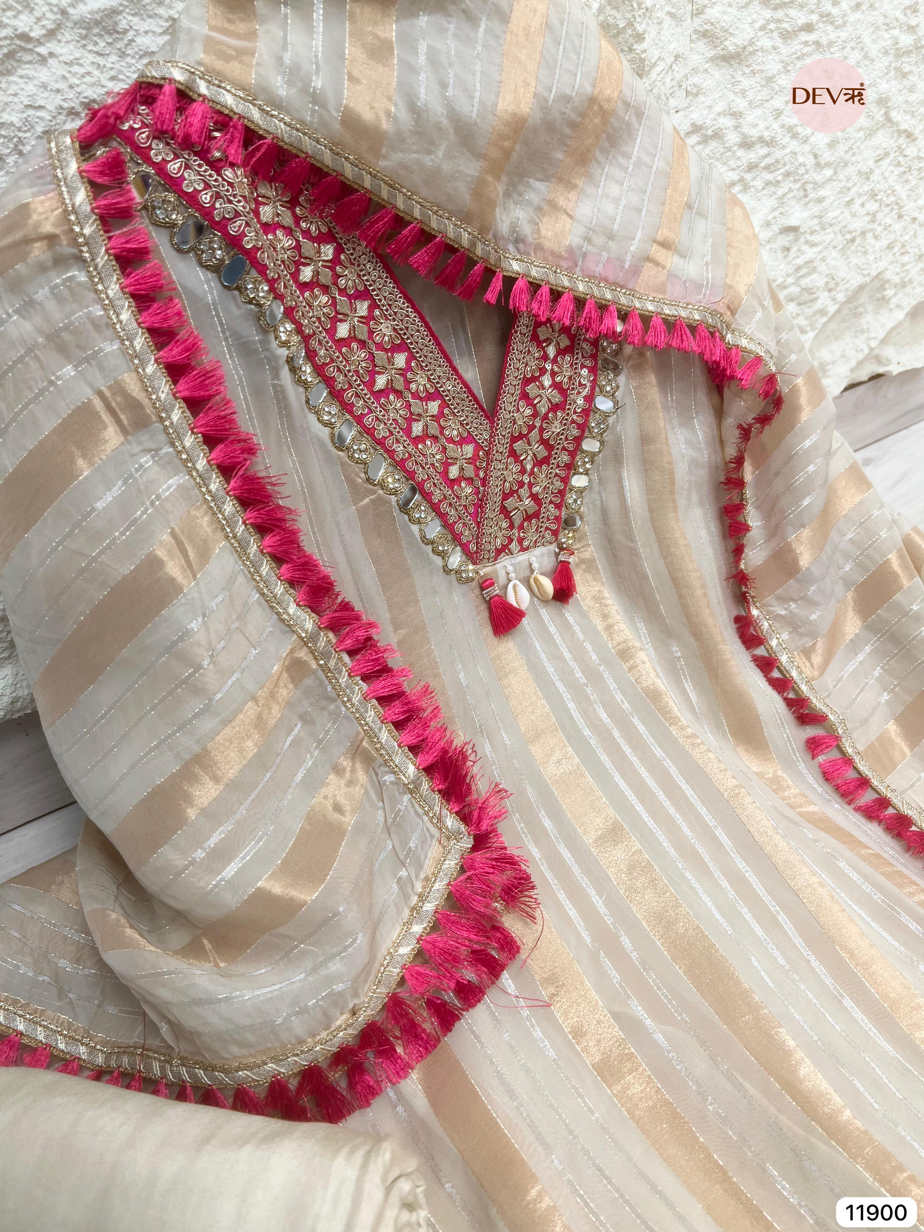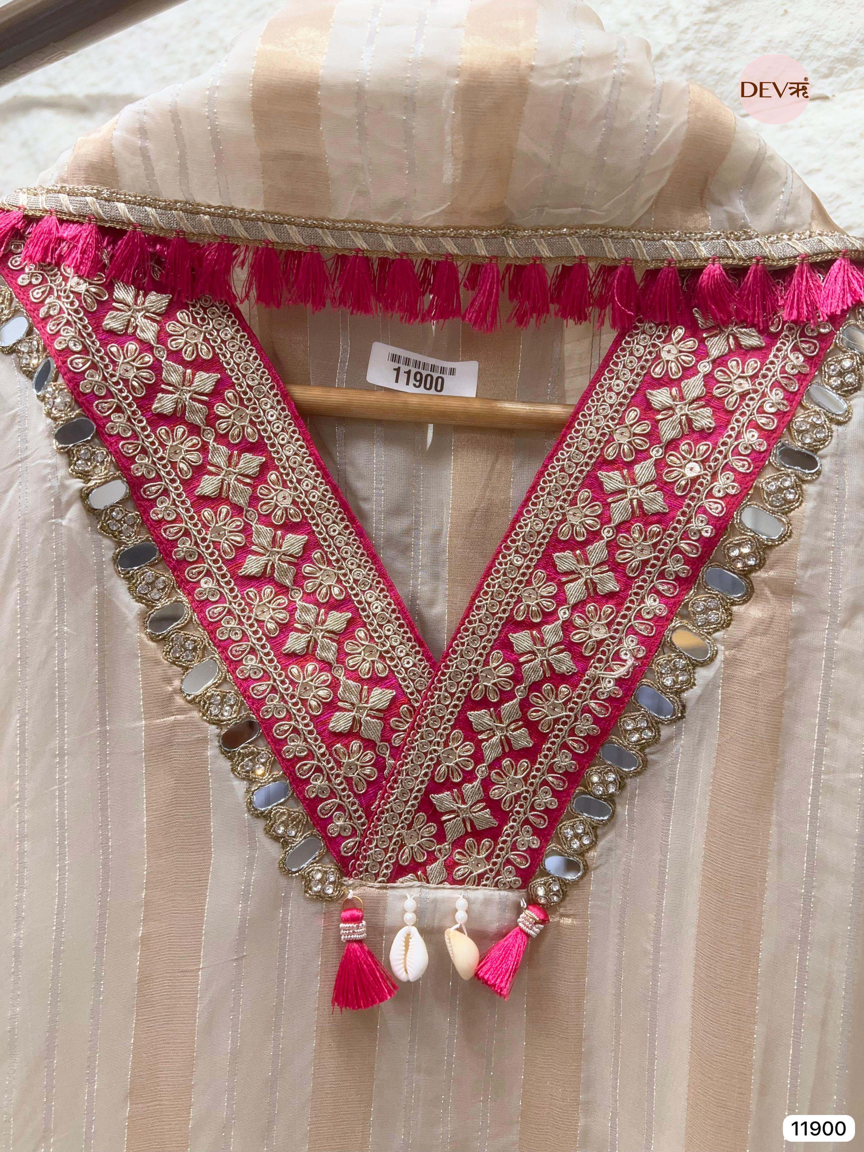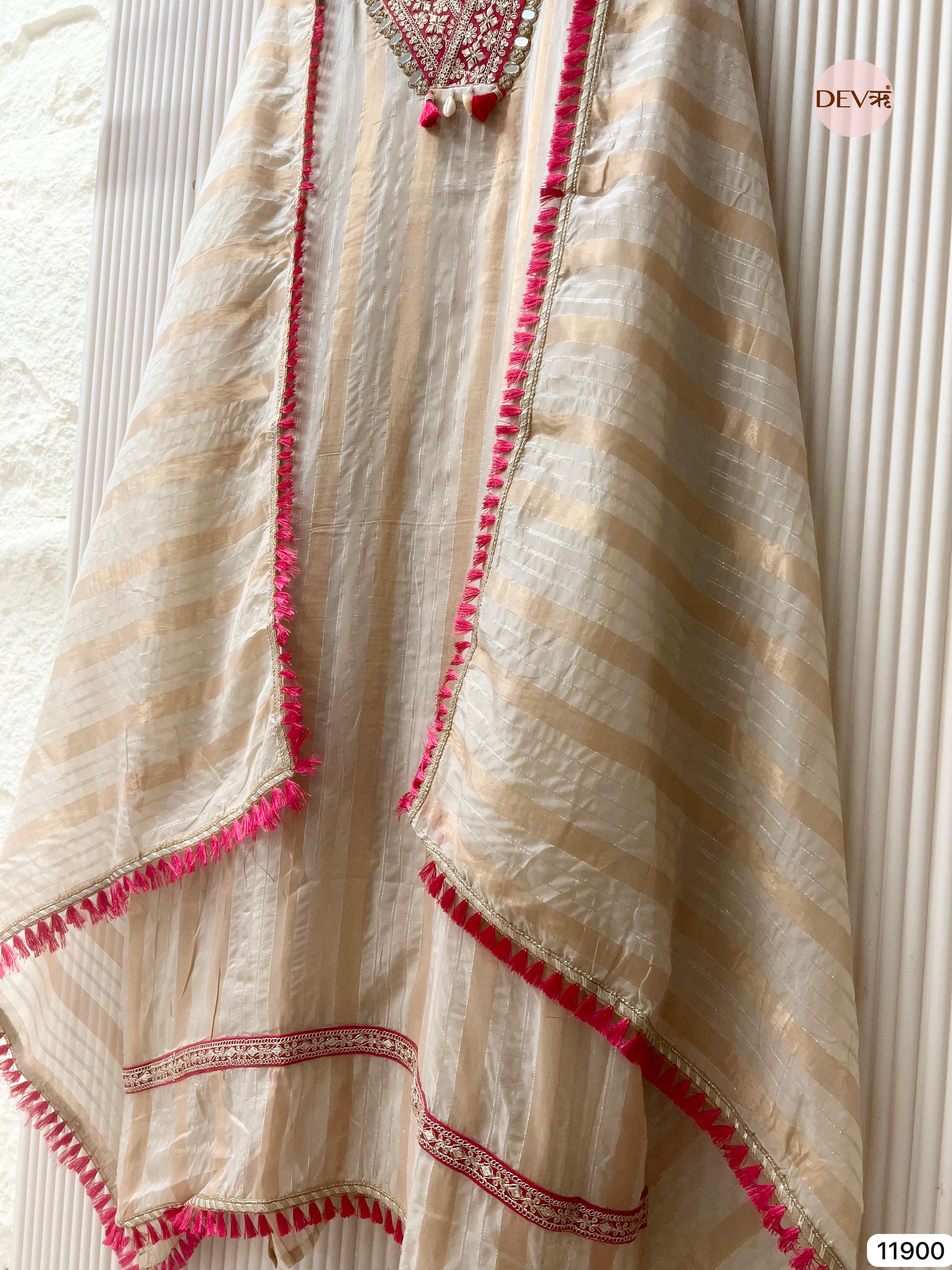 Off White Tissue Shimmer Silk Unstitched Hand Embroidered -Set Of 3
