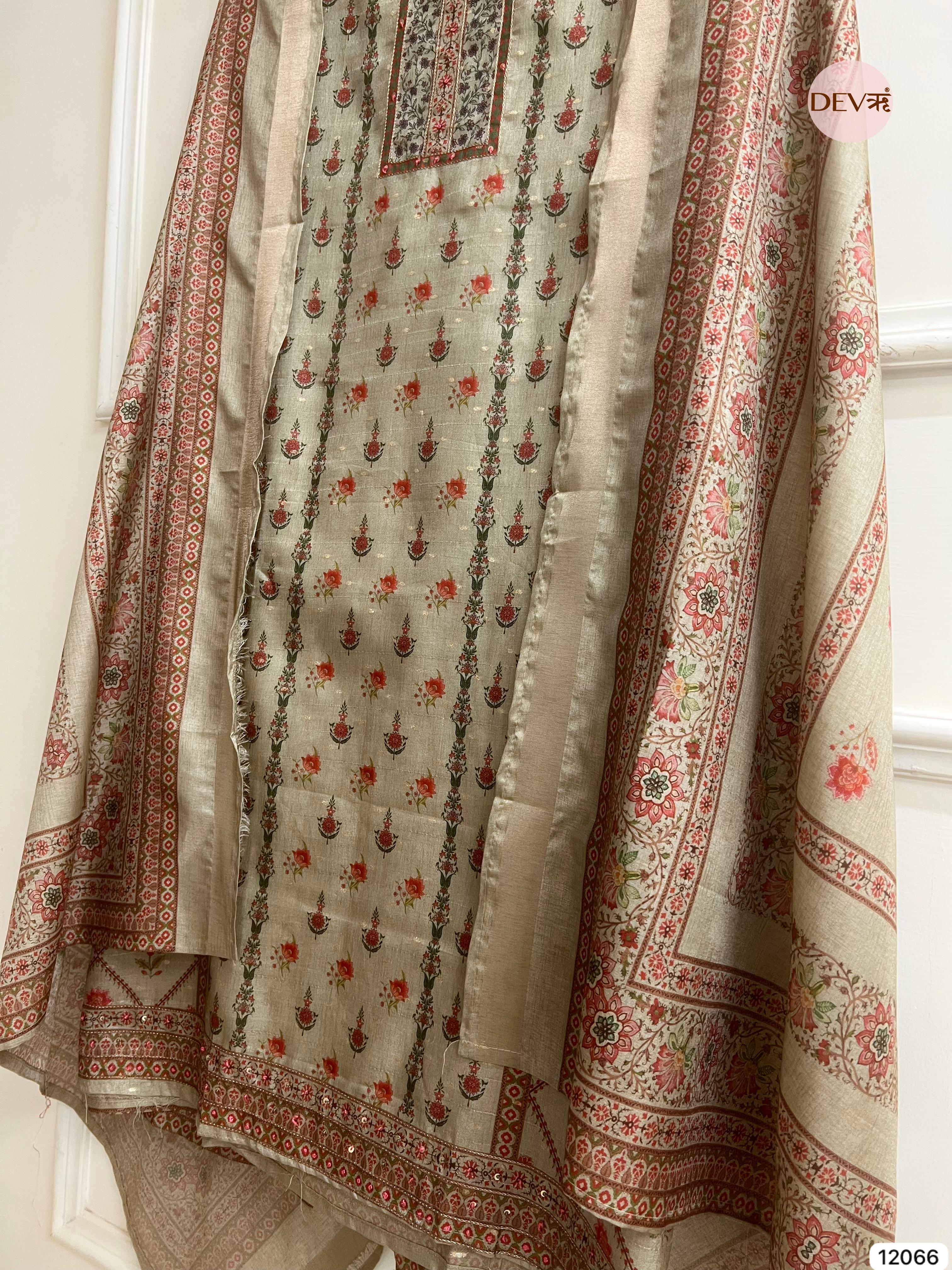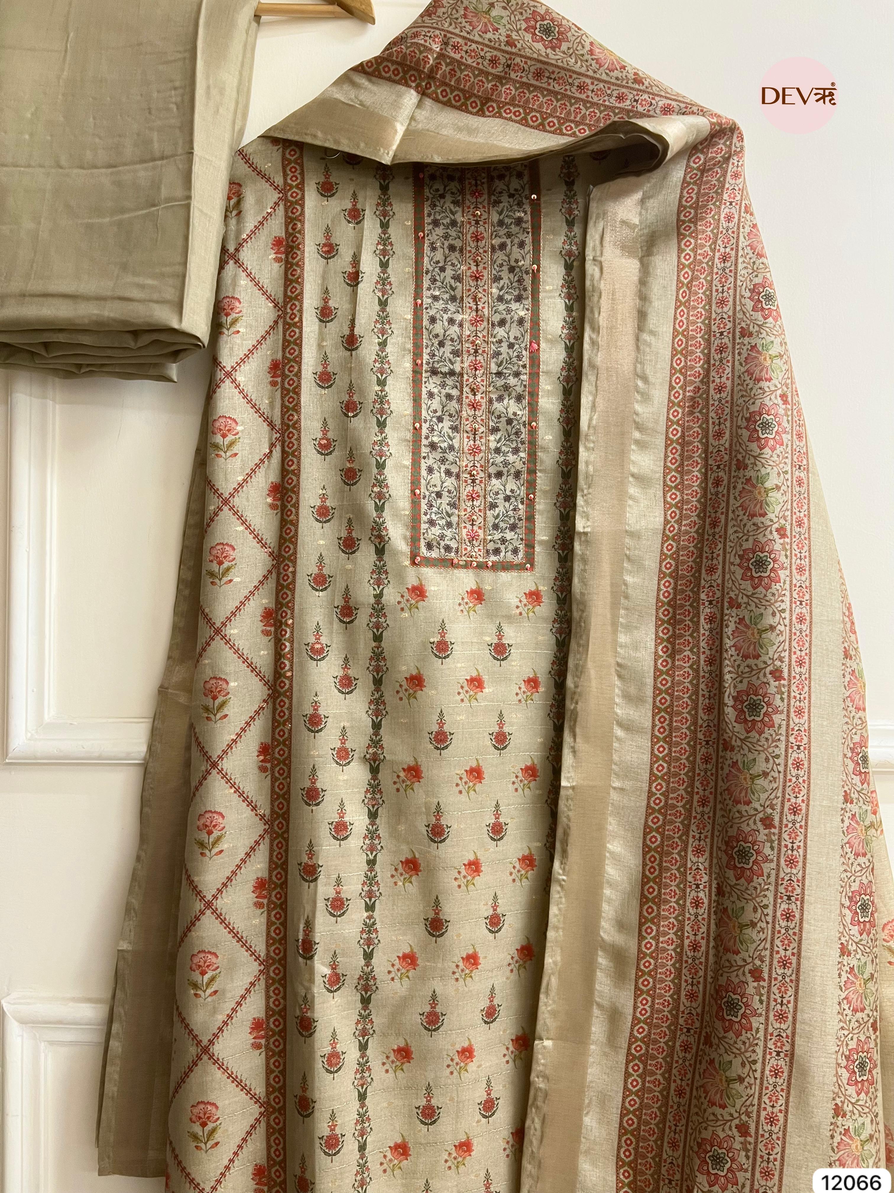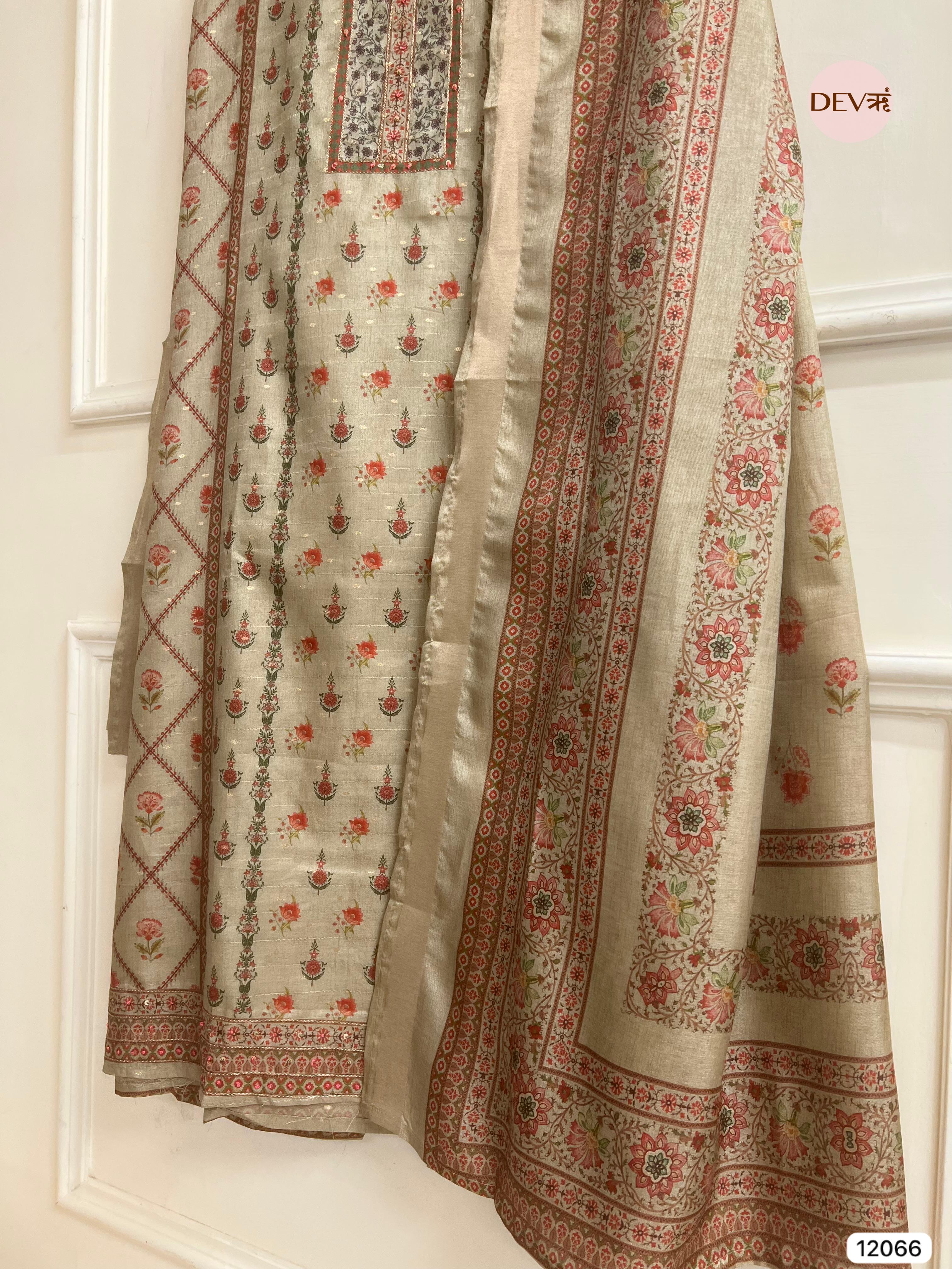 Shirt - Raw handloom silk unstitched designer printed with hand embroidery highlights