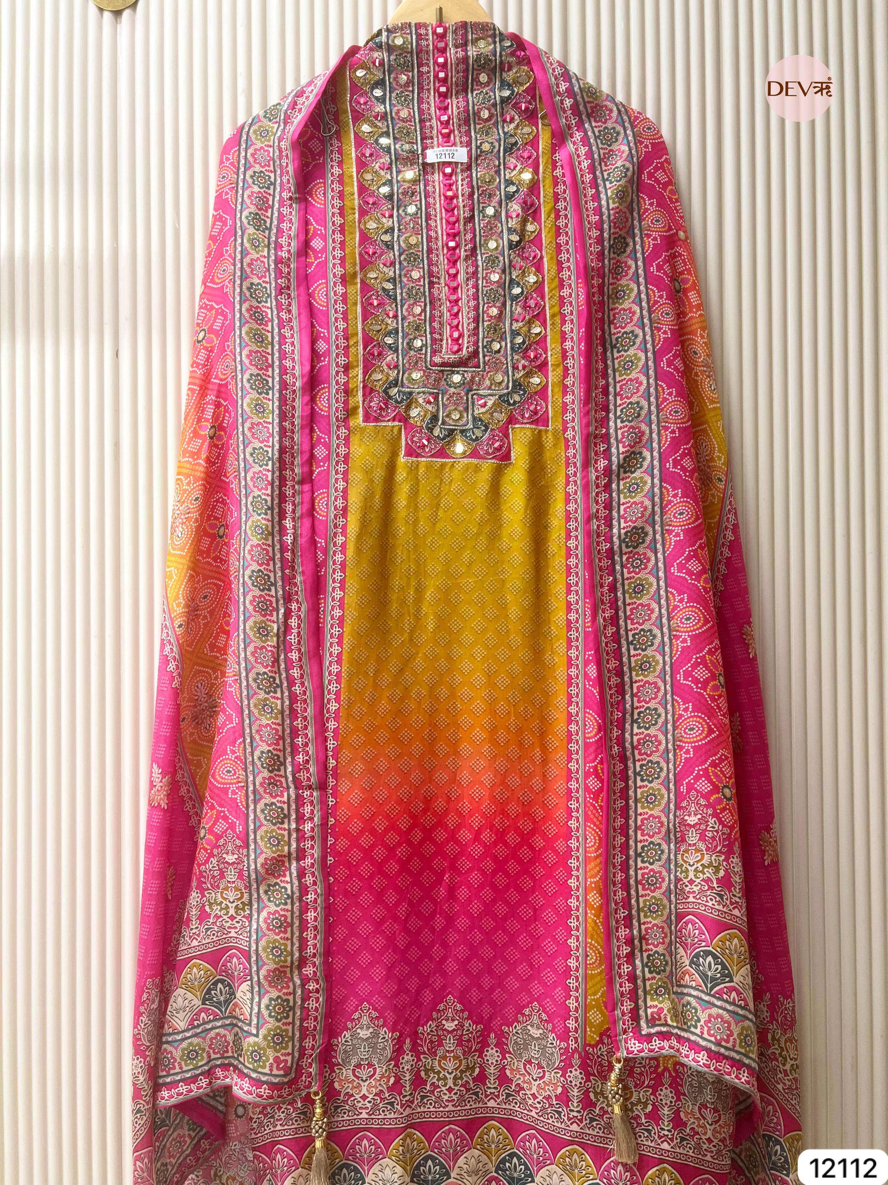 Shirt - Pure organza silk unstitched printed with hand work highlights